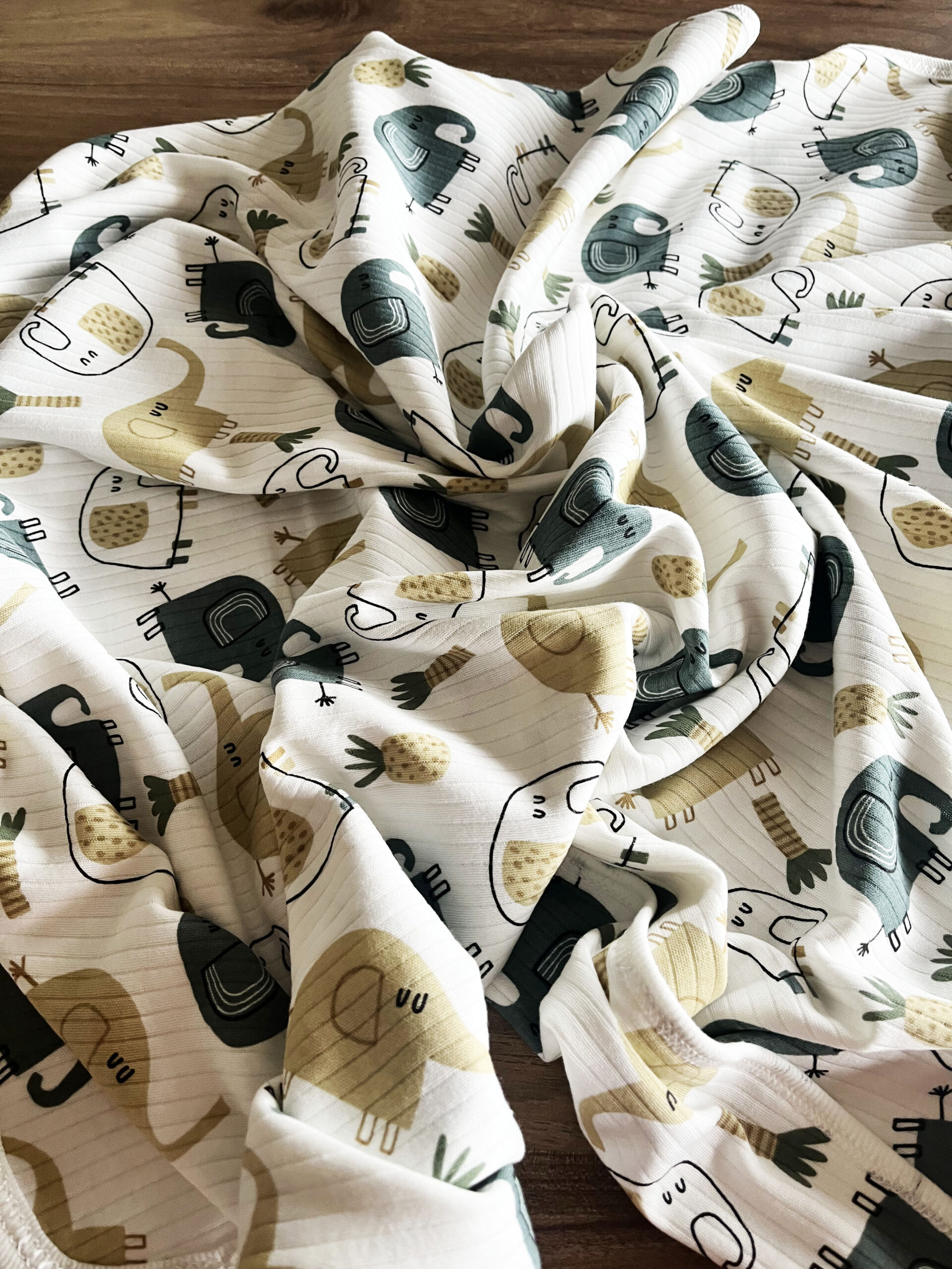 %100 Organik Pamuk Fil Desenli Organik Pamuk Penye Battaniye