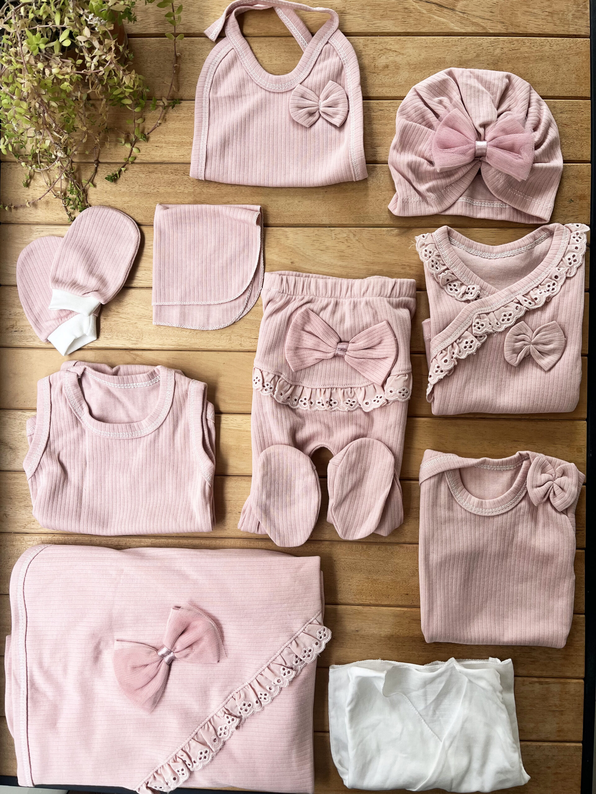 %100 Pamuk Kız Bebek Raporlu Fistolu 10’lu Yenidoğan Hastane Çıkışı Zıbın Seti Kutulu-Gül Kurusu