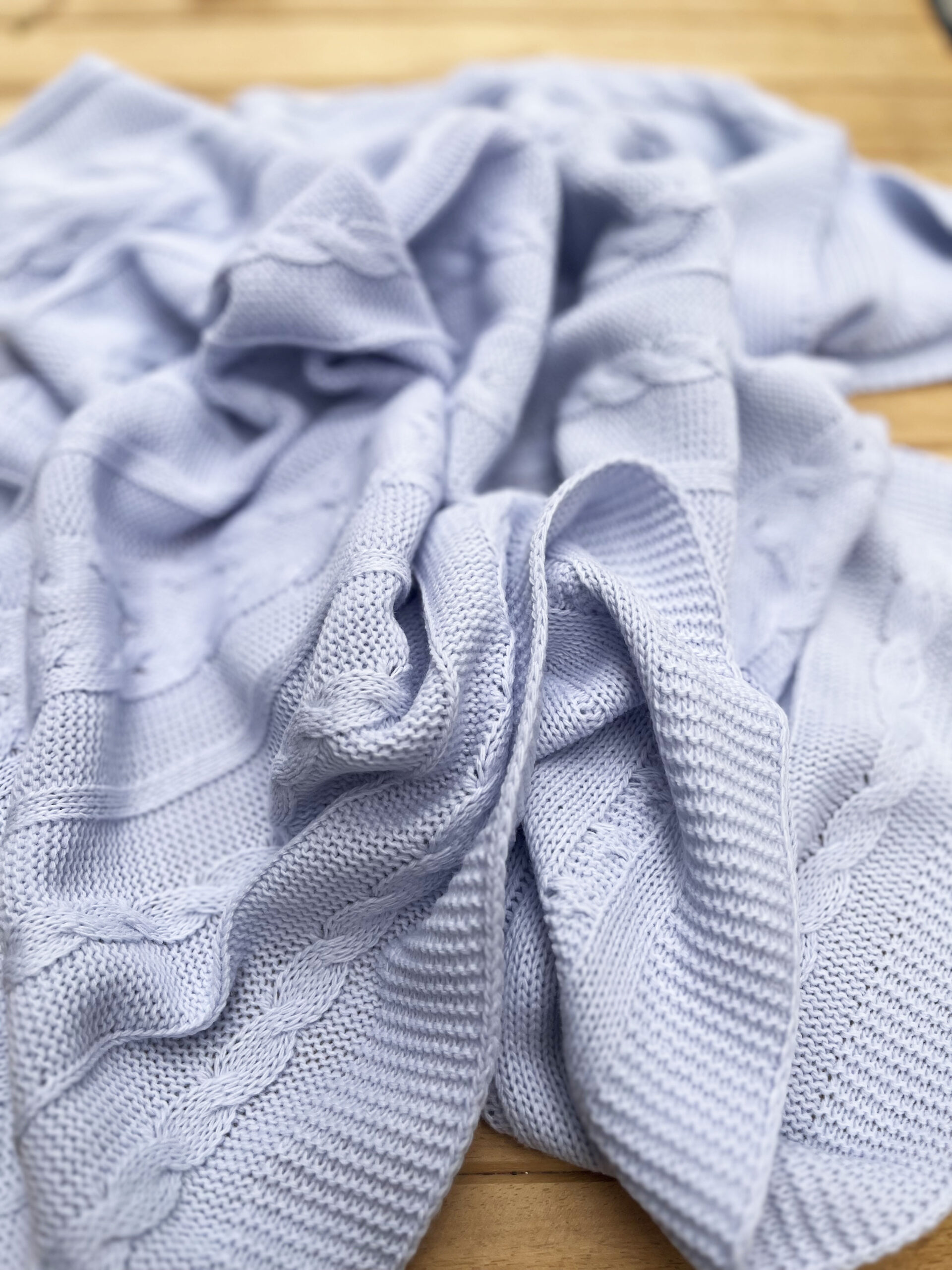 MAMMASO triko bebe mavi bebek battaniyesi, bebeklerin hassas cildine uygun yumuşak dokusuyla tüm mevsimlerde güvenle kullanılabilir.
