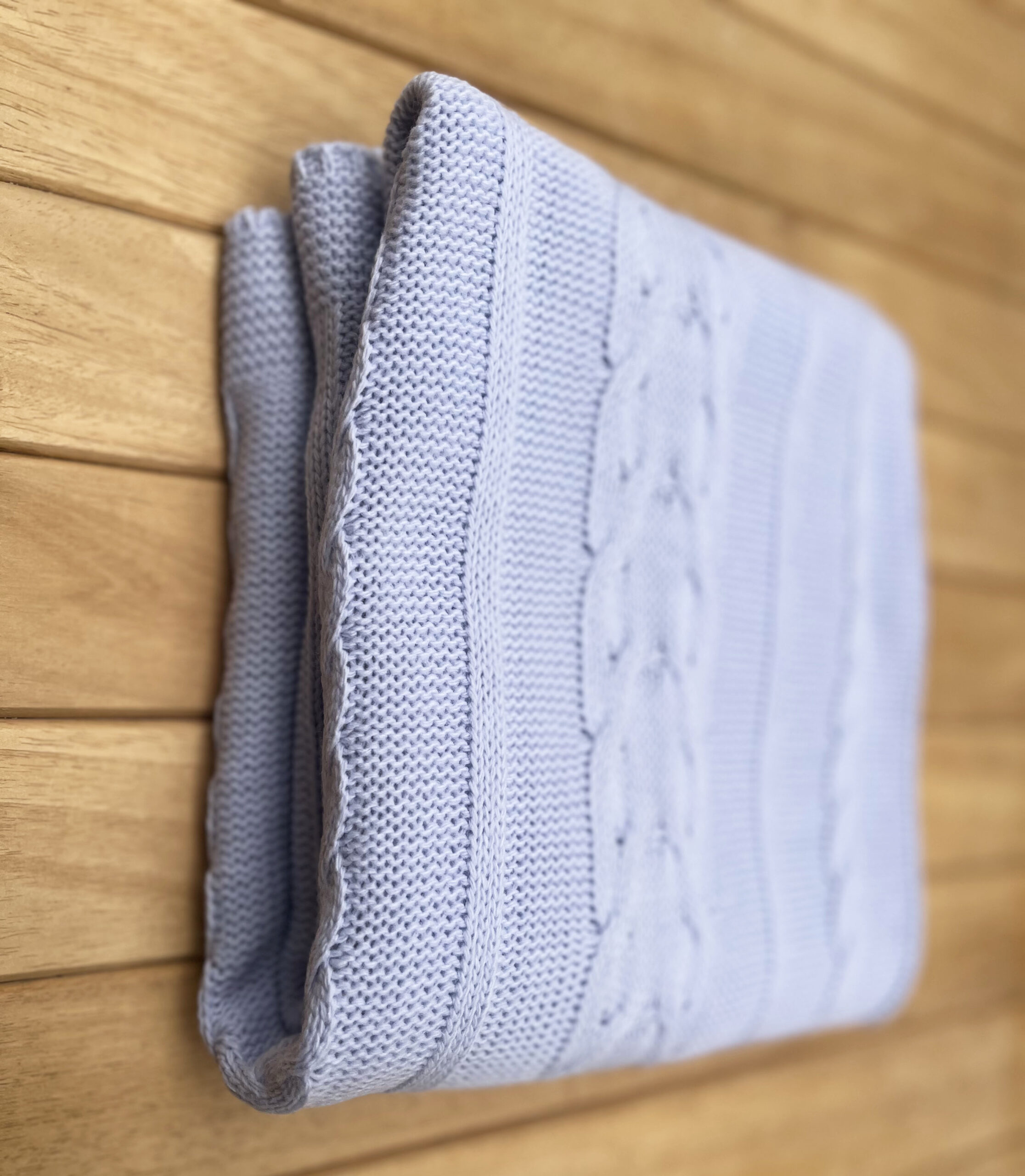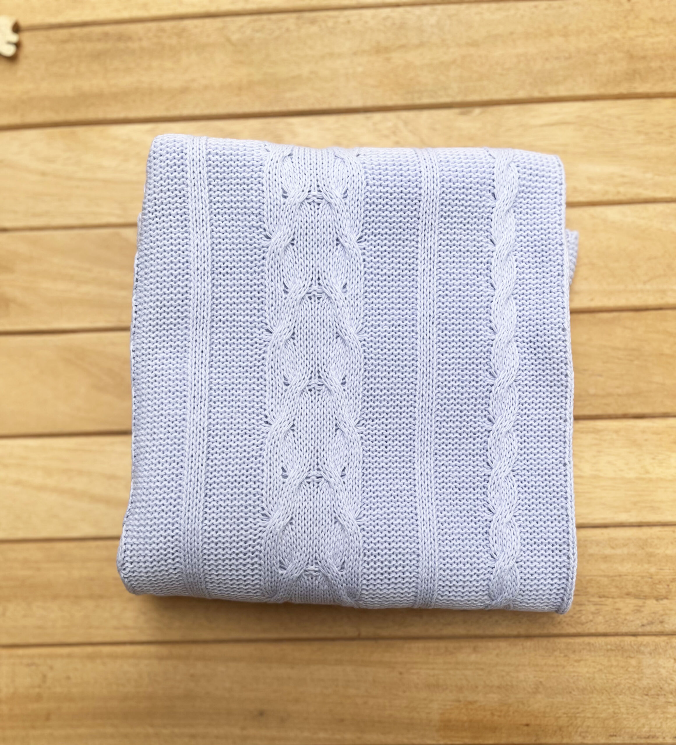 Triko Tek Kat Bebek Battaniye Bebe Mavi 80×100 Cm-Zincir Desenli