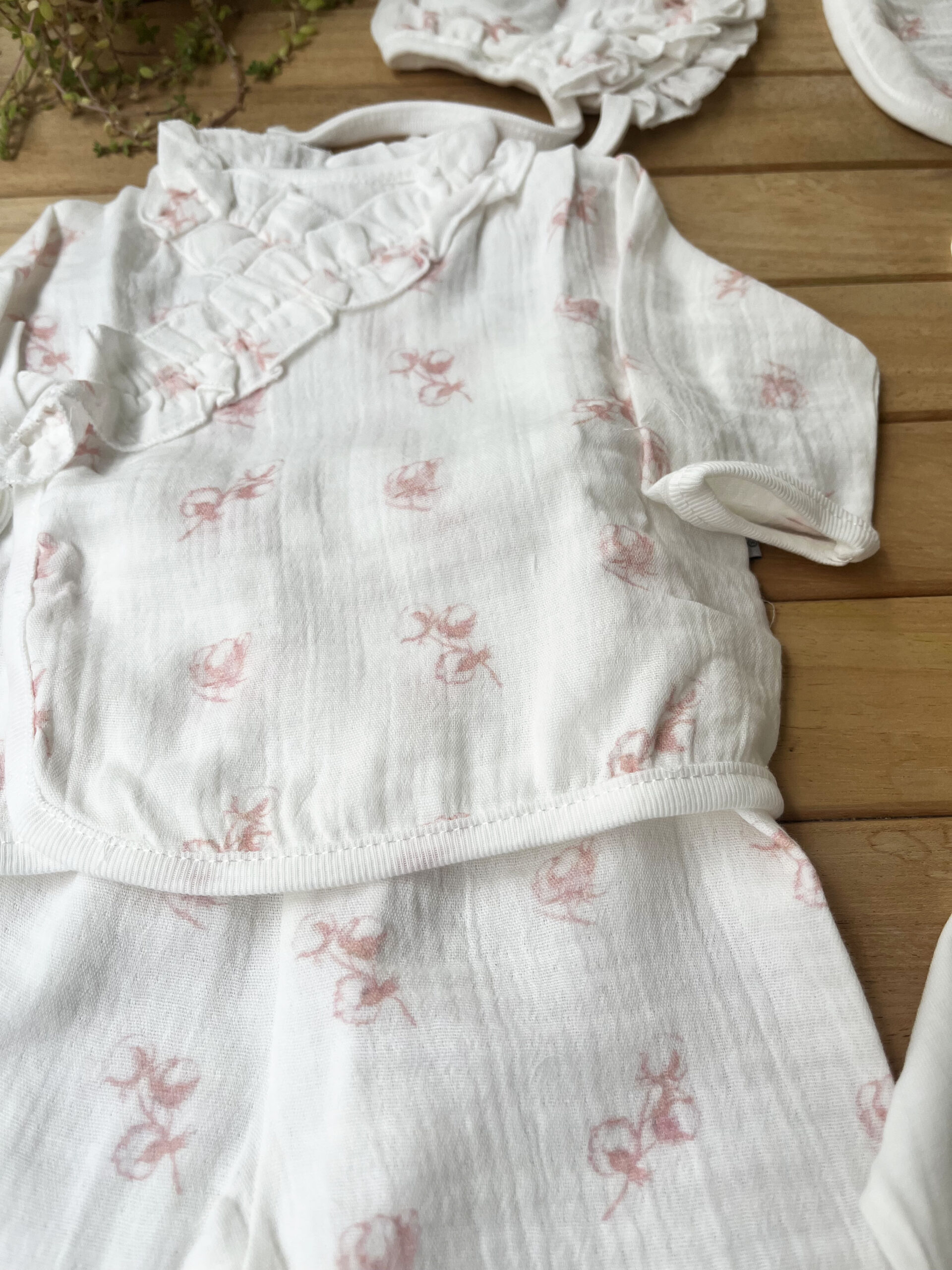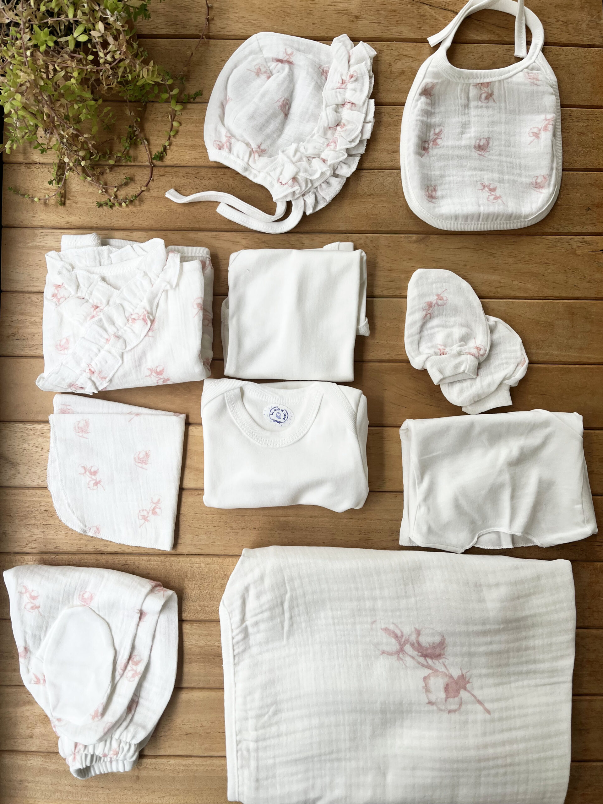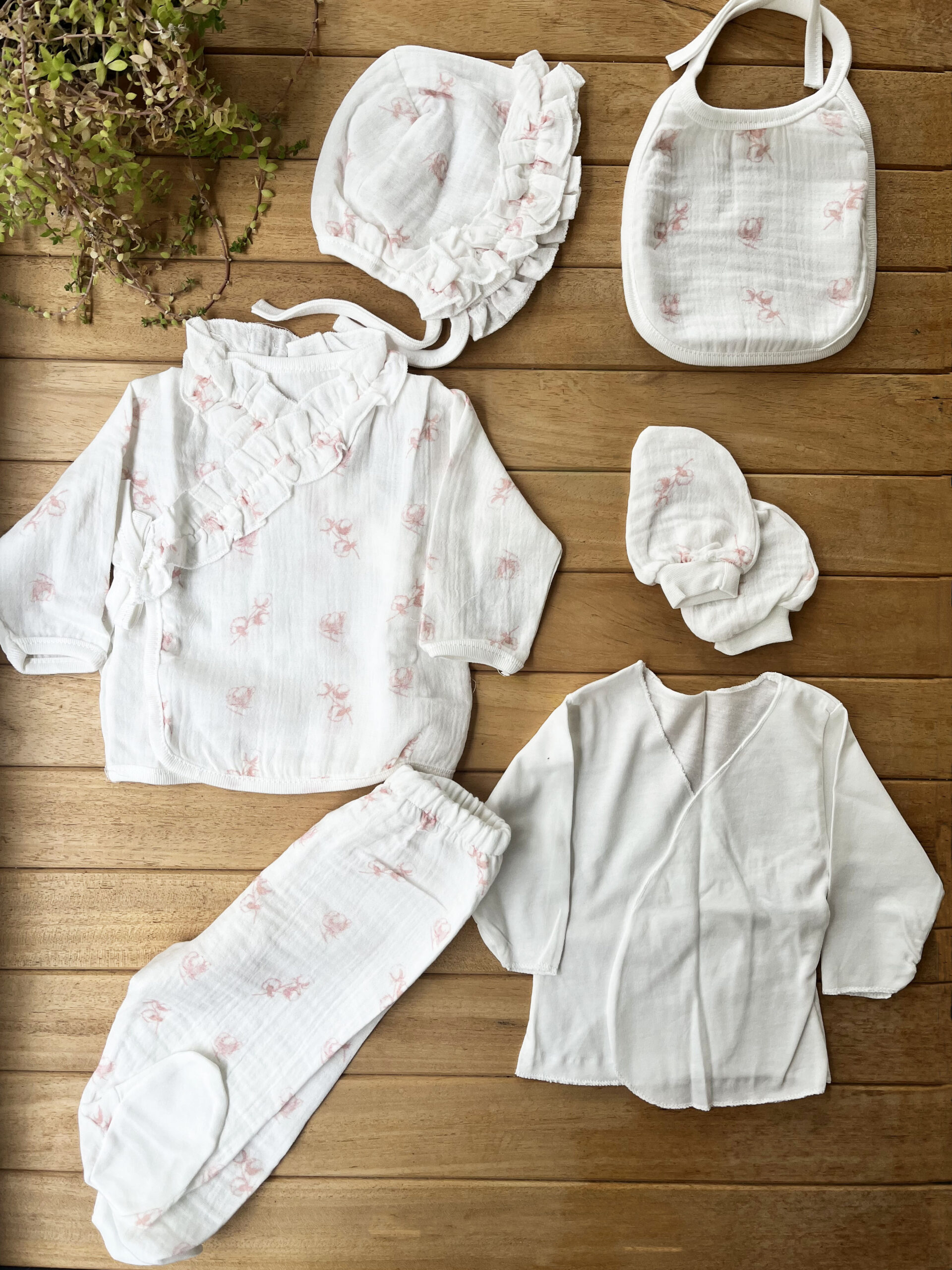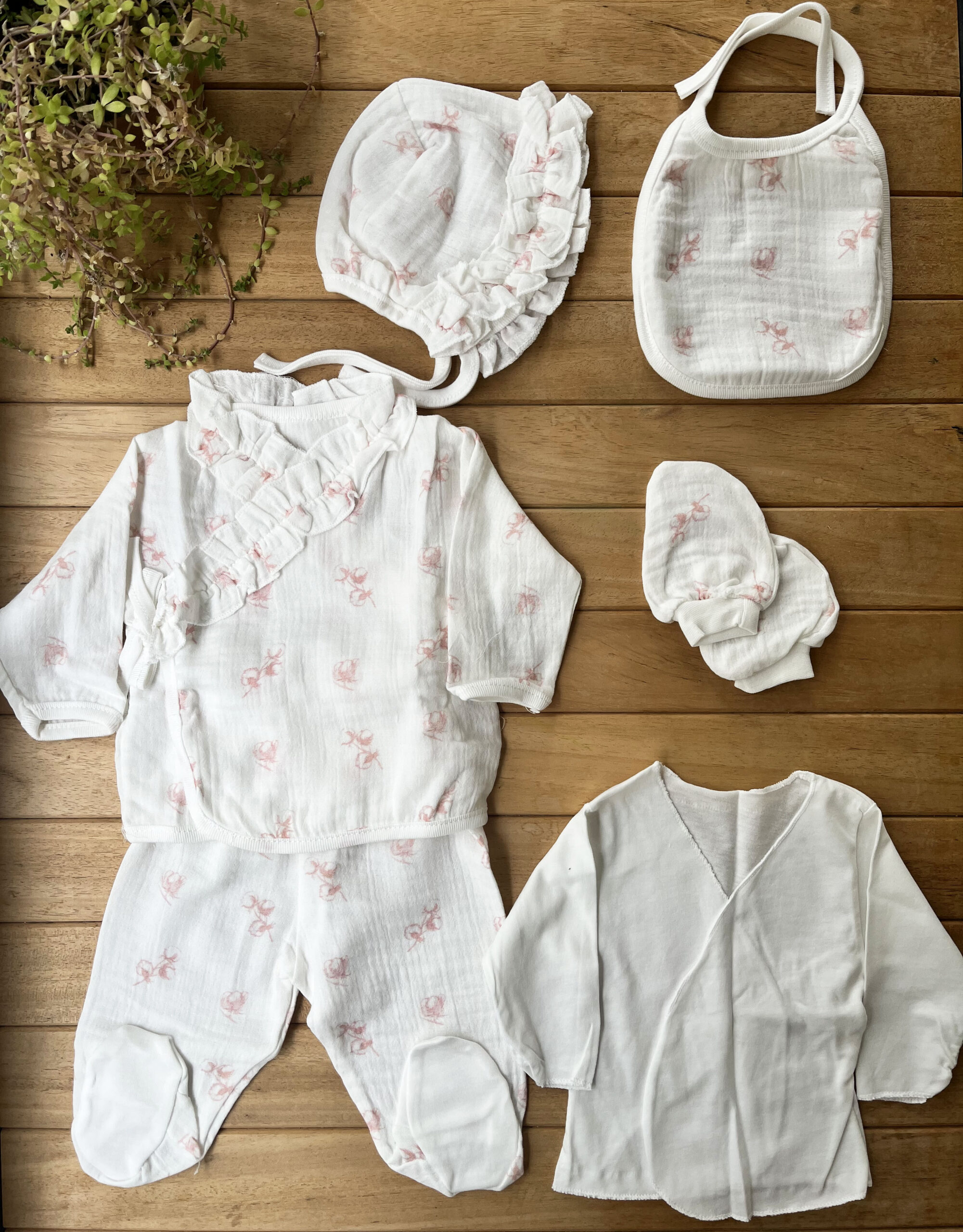 %100 Pamuk Yenidoğan Kız Bebek Hastane Çıkış Seti 10 Parça – Müslin Pembe