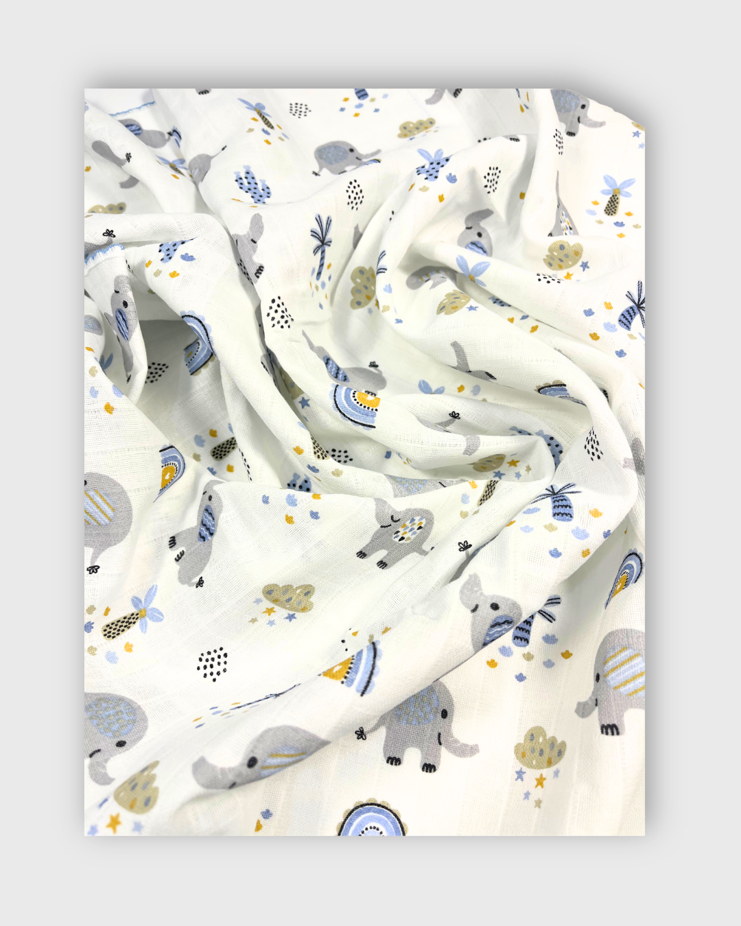 100% pamuk muslin bebek battaniye arayanlar için hem konforu hem de şık otantik fil teması ile tamamlayıcı bir seçenektir.
