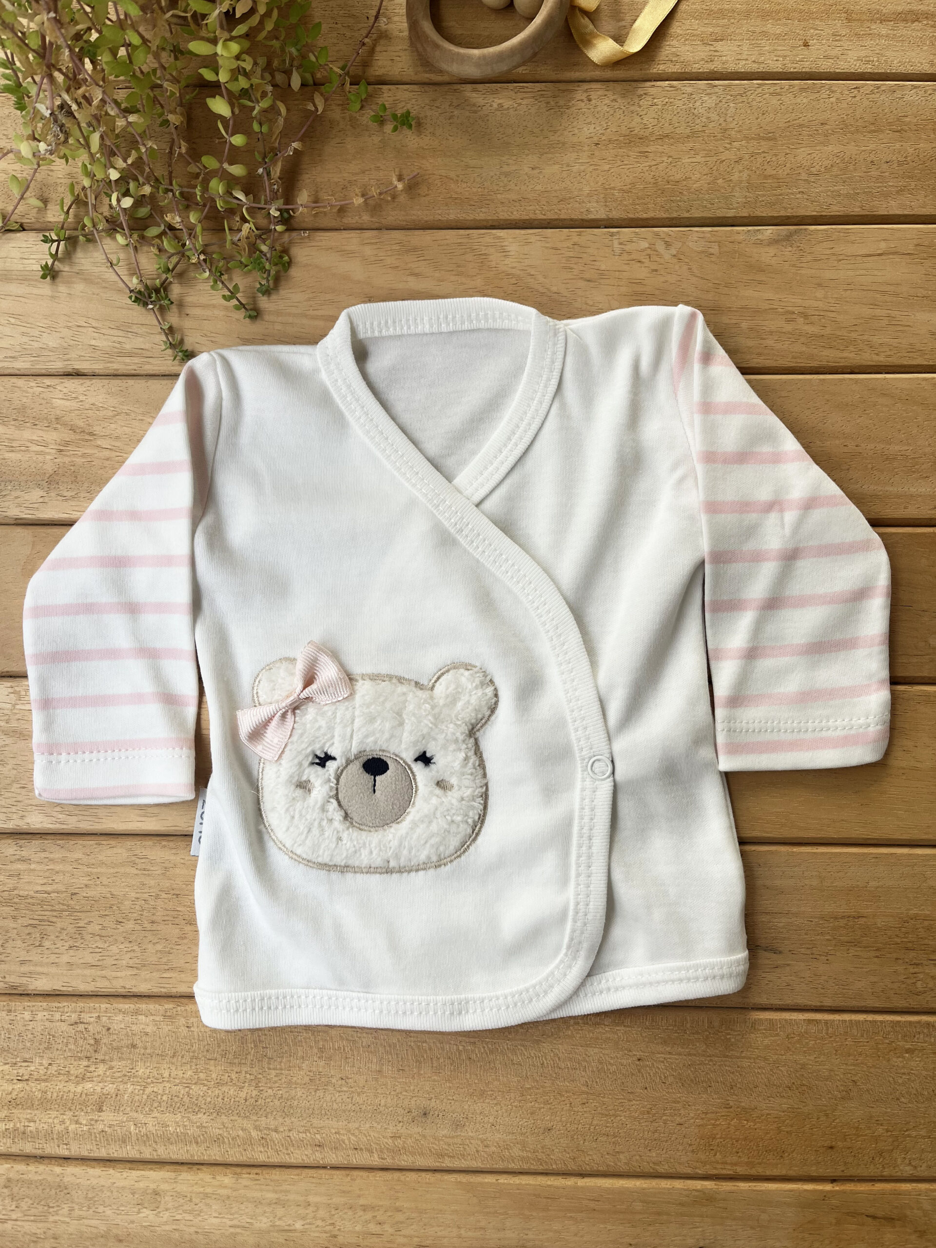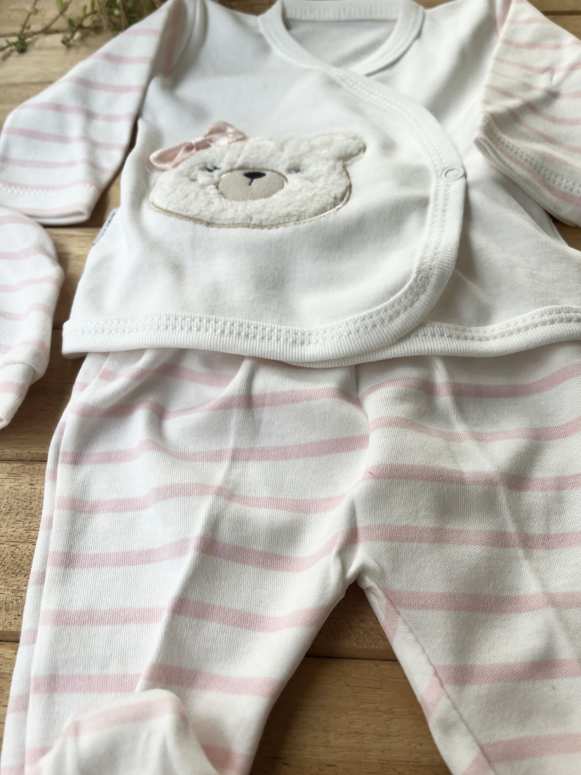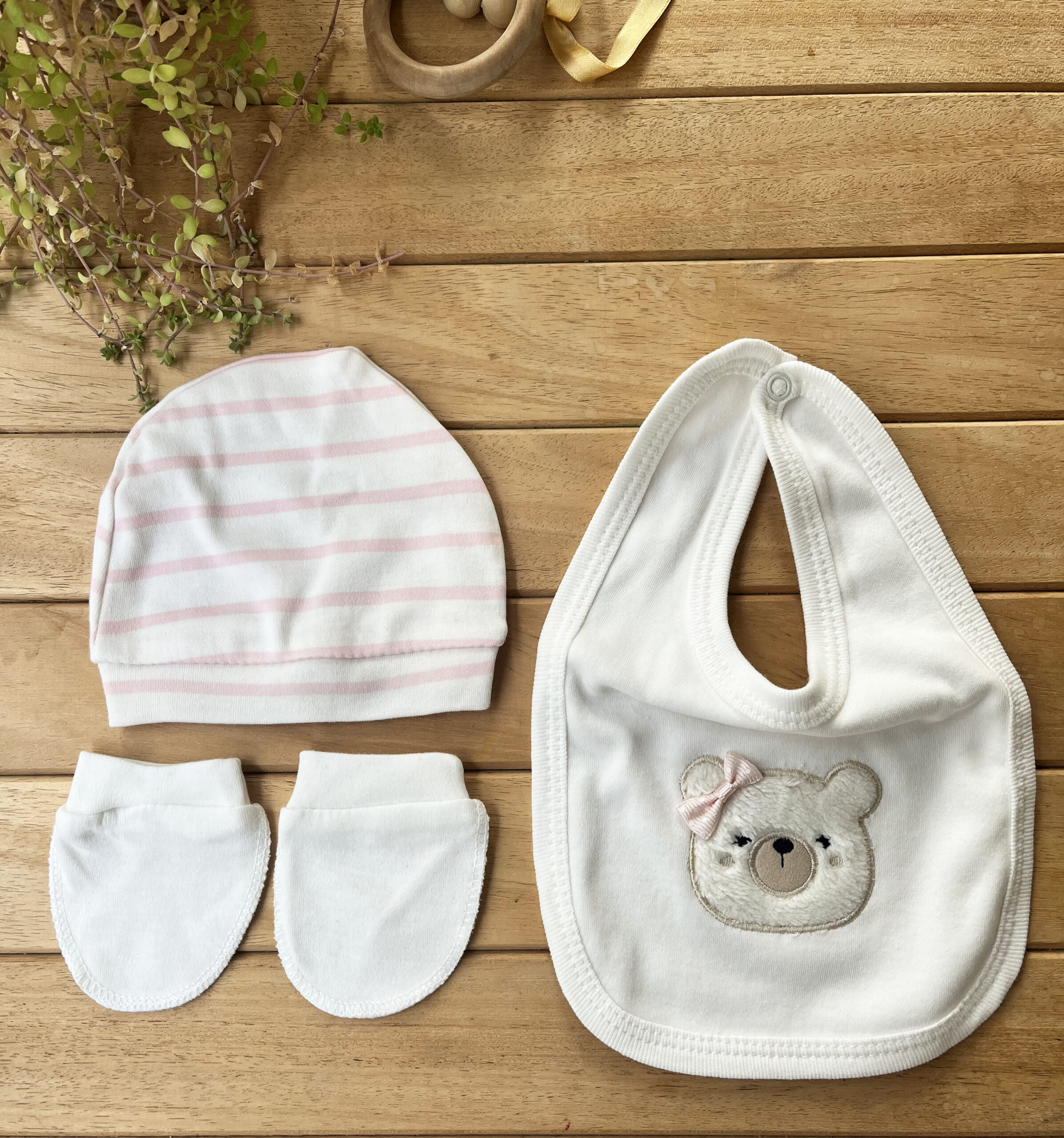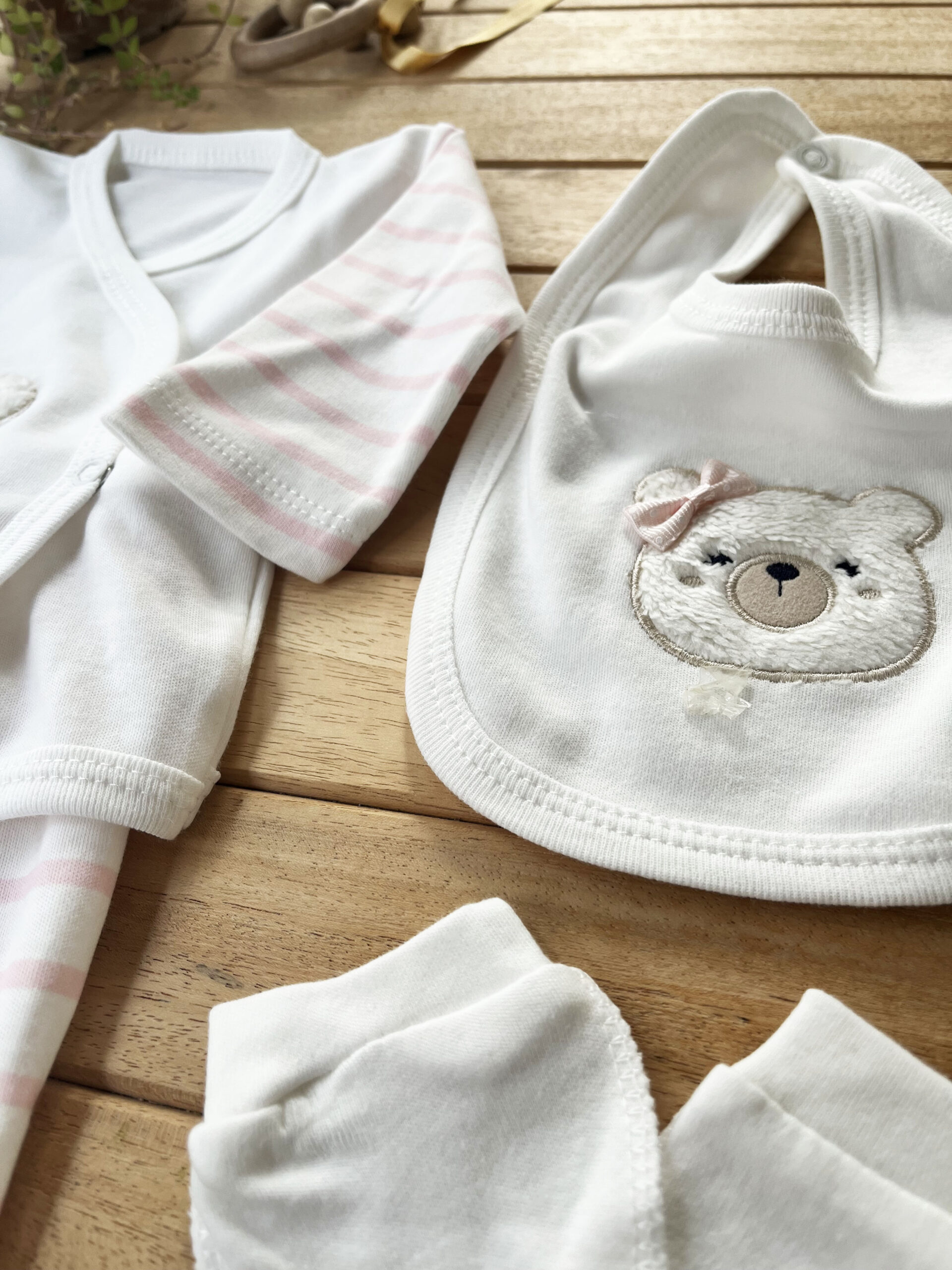% 100 Pamuk Yenidoğan Bebek Hastane Çıkış Seti 5 Parça – Ayıcık Desenli Pembe