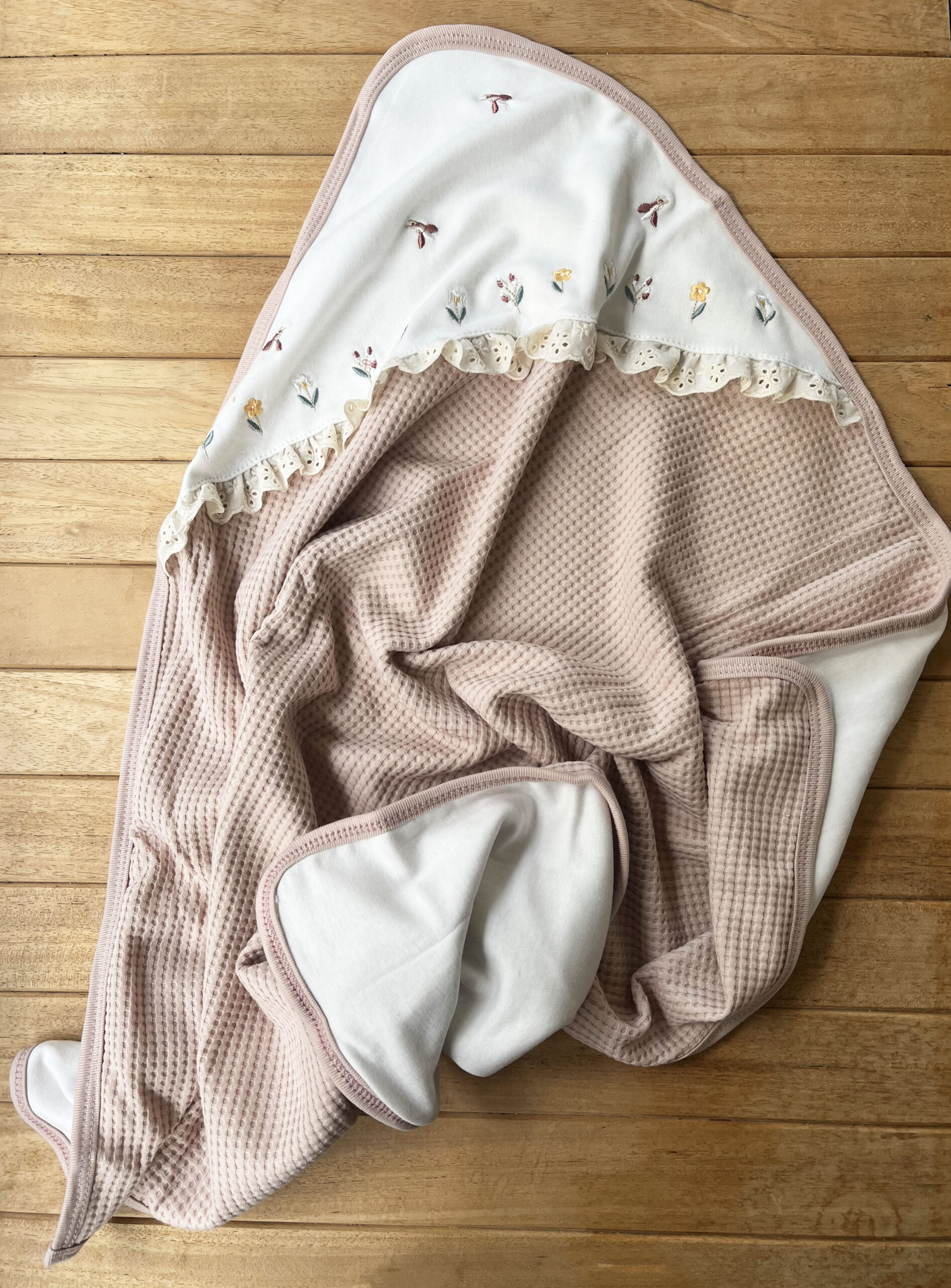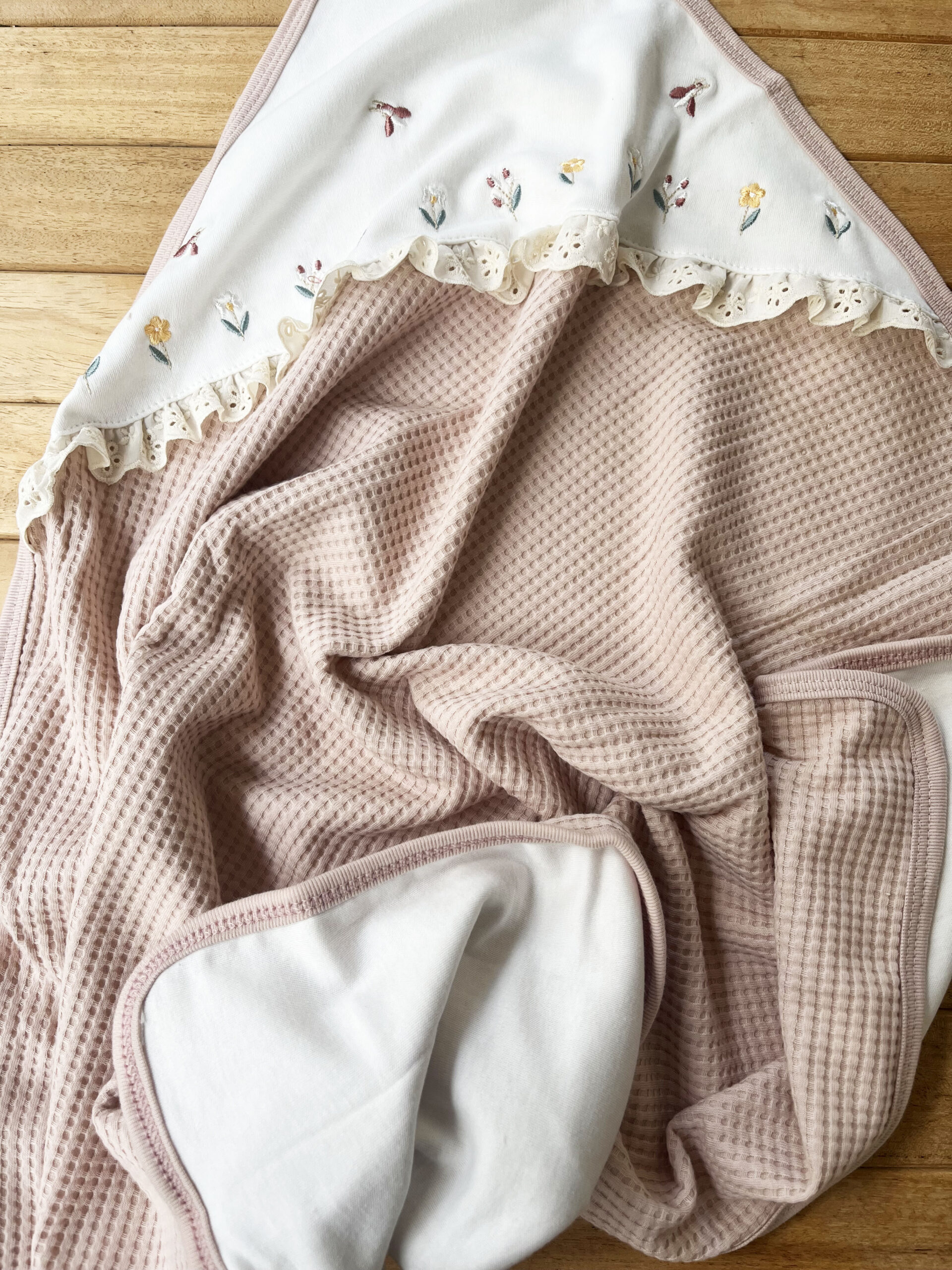 Yumuşacık dokulu waffle kumaş ve pamuklu parçaların birleşimi, yenidoğan cildi için ideal bir kullanım sunar.