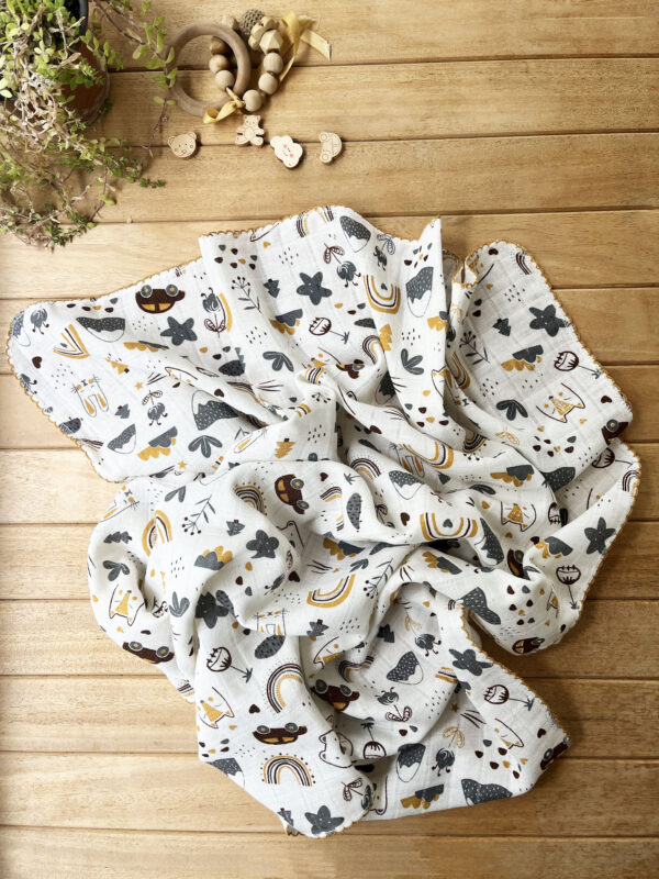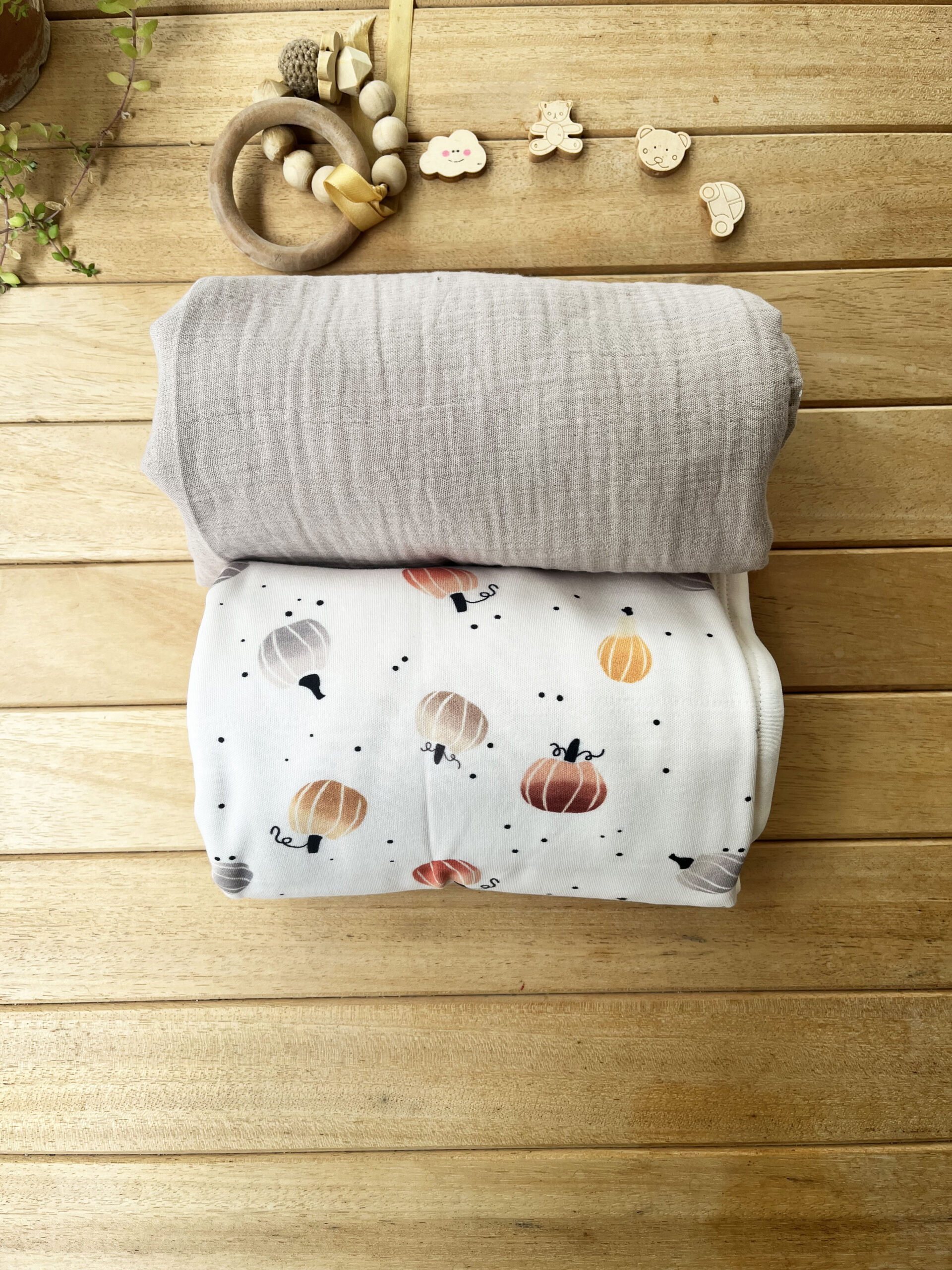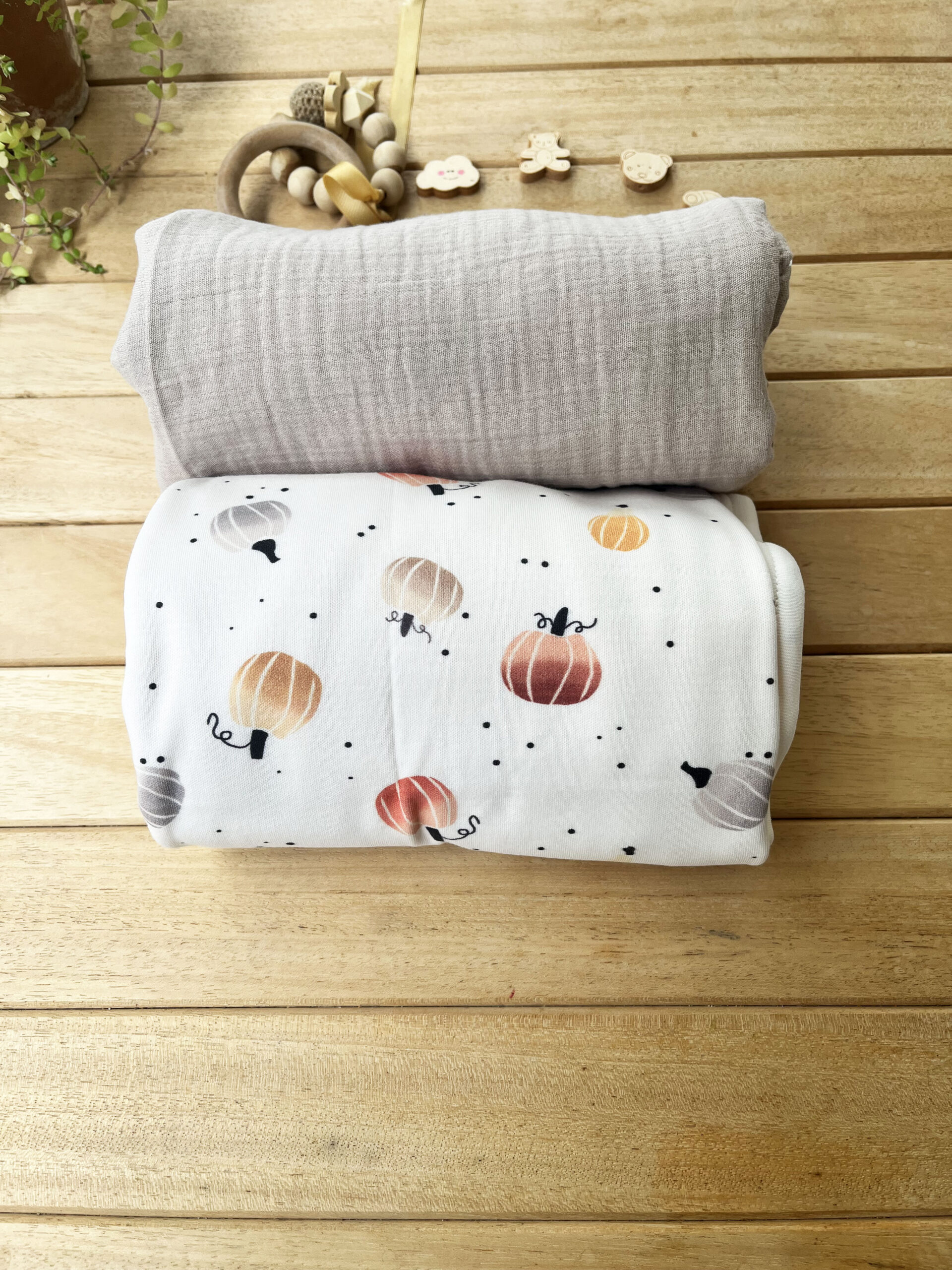 2’li Balkabağı Battaniye Set Bej(Tek Katlı Balkabağı Penye Battaniye &Çift Katlı Bej Müslin)