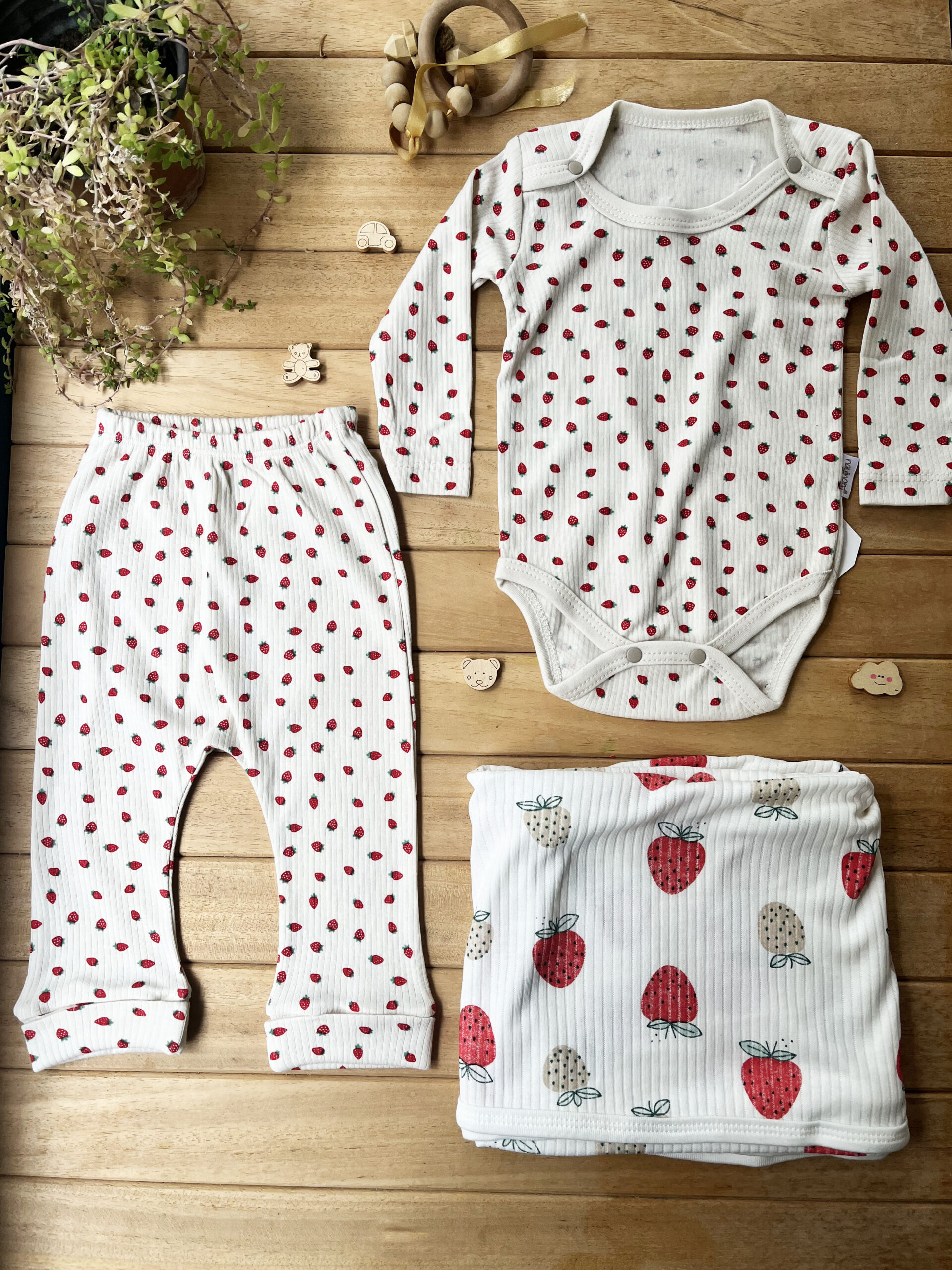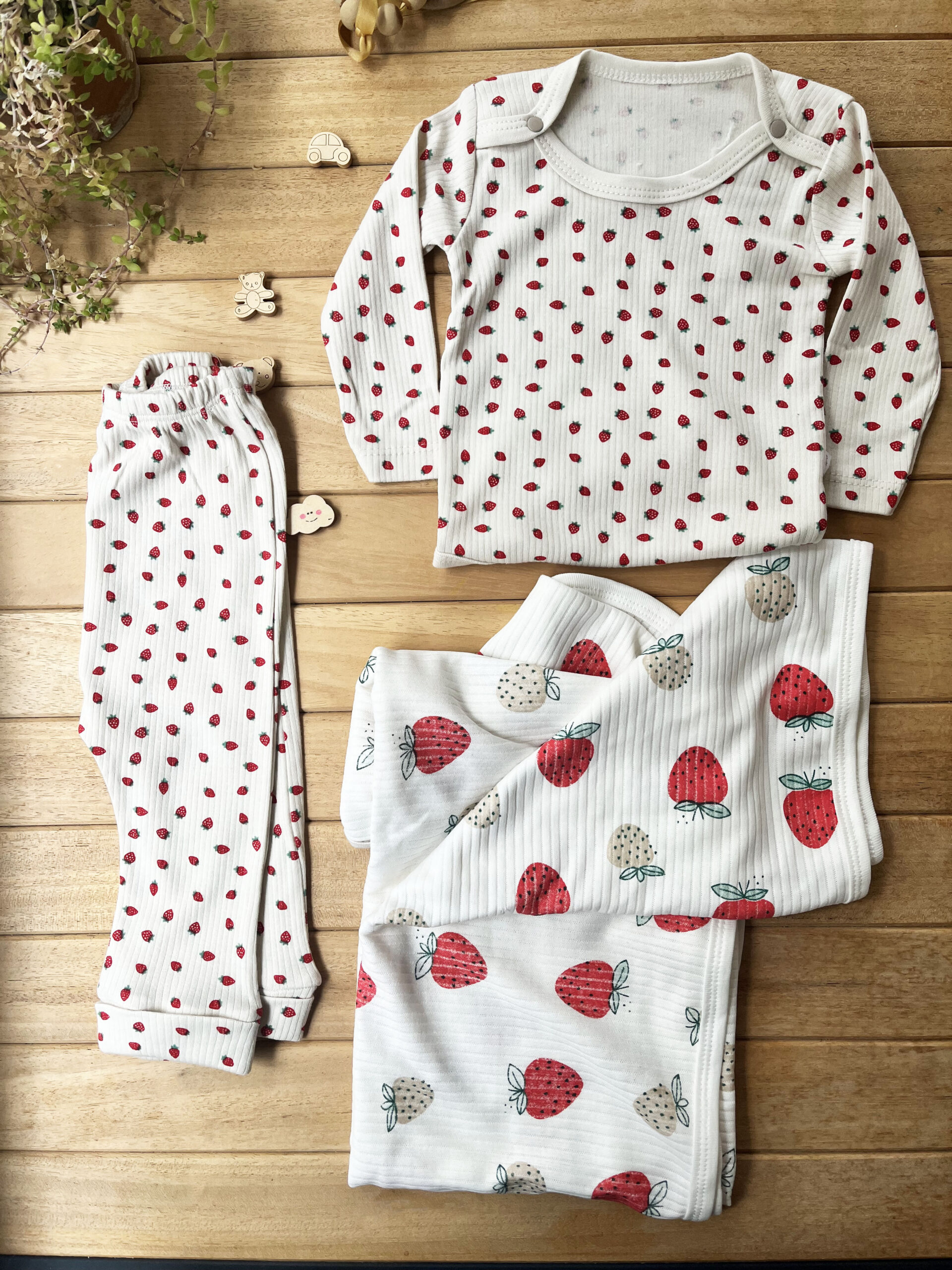2’li Çilek set (1 Adet Alt Üst Takım & 1 Adet Penye Battaniye)