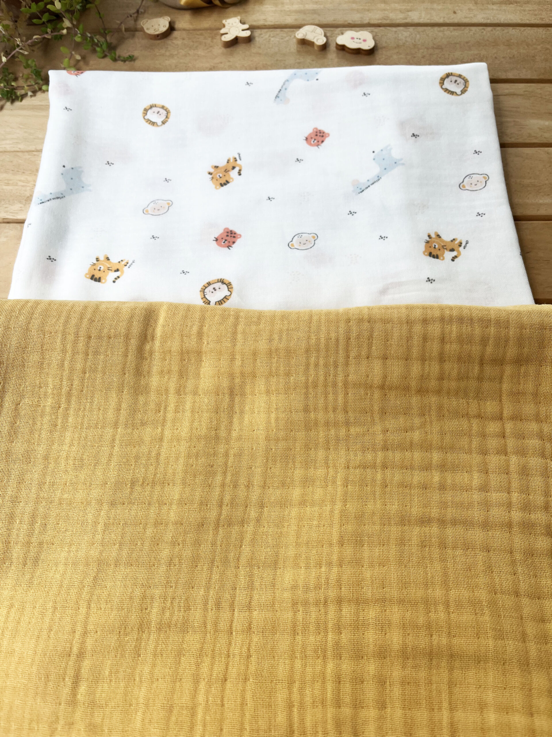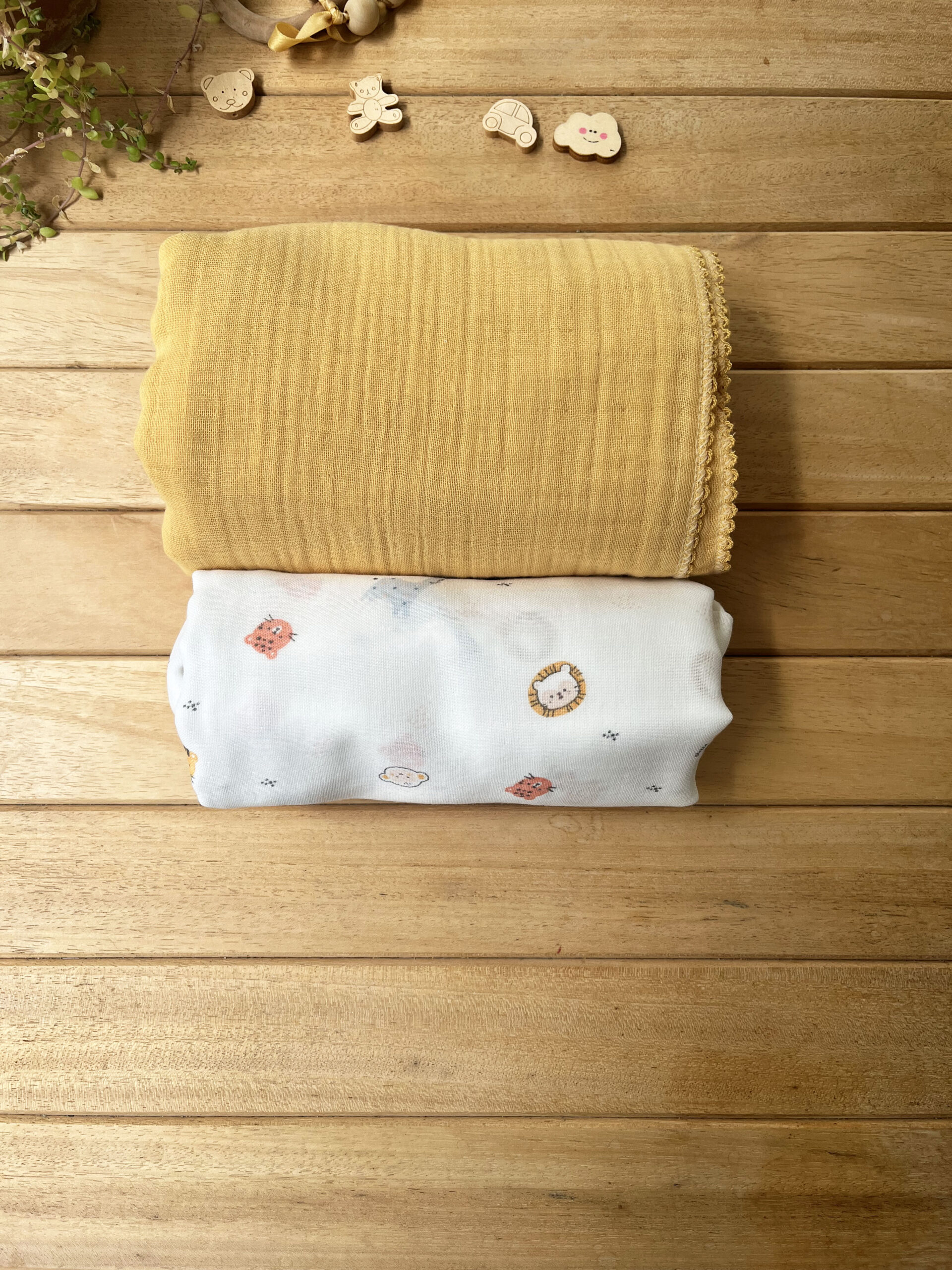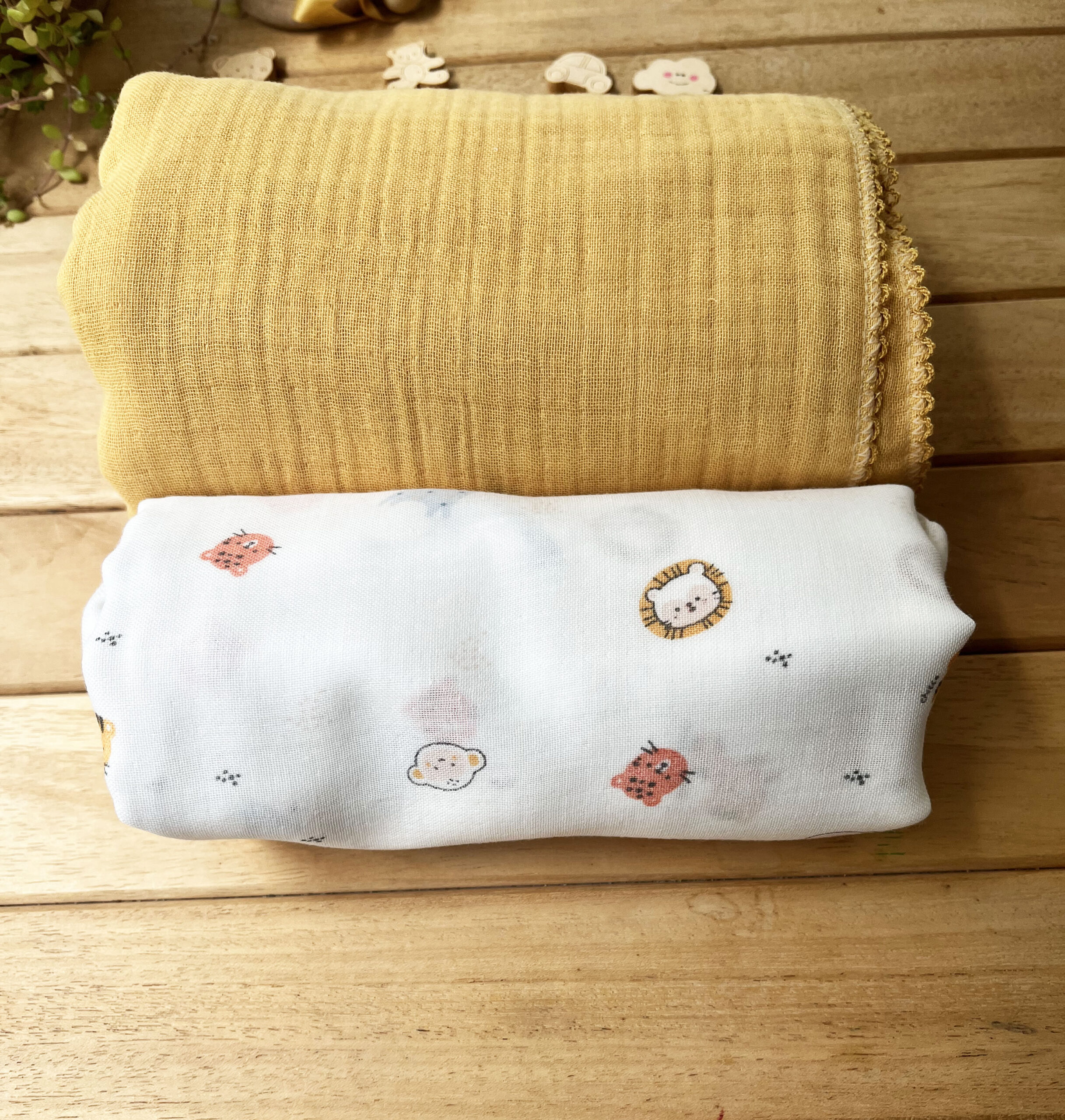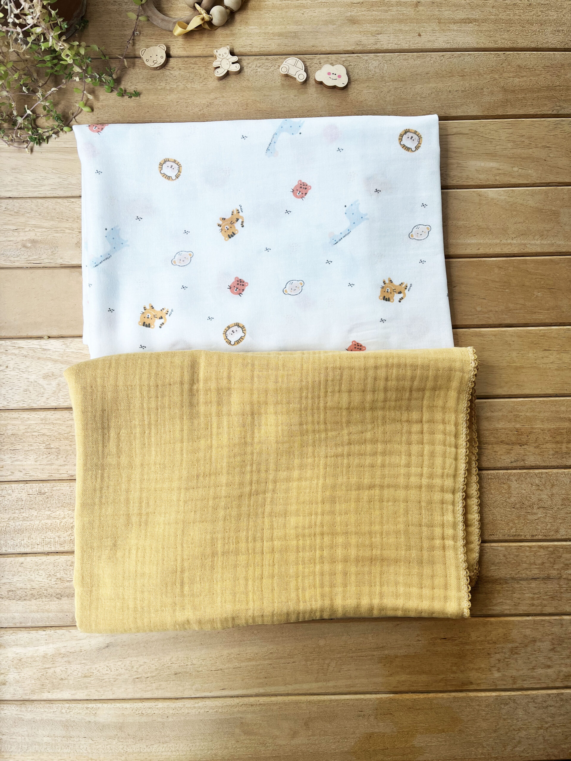 2’li Hayvanlar Alemi Müslin Set Hardal(4 Katlı Hardal Müslin & Tek Katlı Organik Hayvanlar Alemi Müslin)