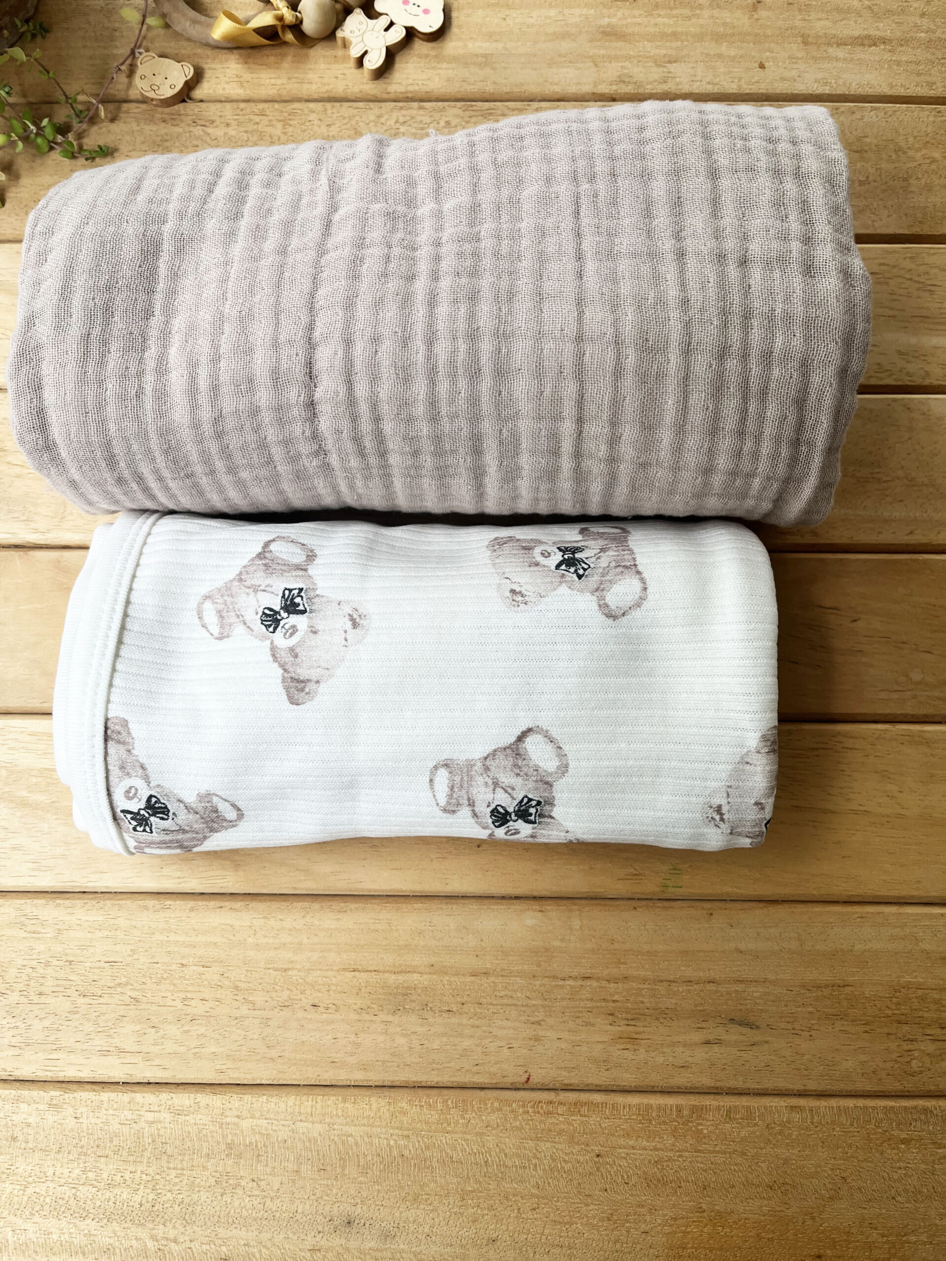 2’li Papyonlu Ayıcık Battaniye Set Bej(Tek Katlı Papyonlu Ayıcık Penye Battaniye &Çift Katlı Bej Müslin)