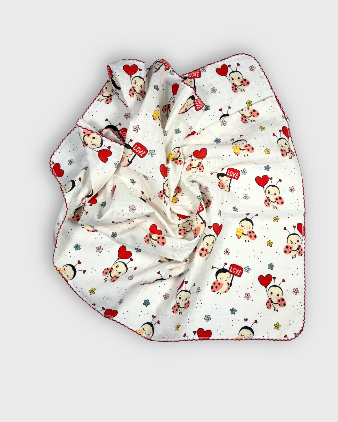 Arı Desenli Tek Kat Müslin Battaniye – 1 Ay / 6 Ay / 12 Ay Unisex Bebek Müslin Battaniyesi