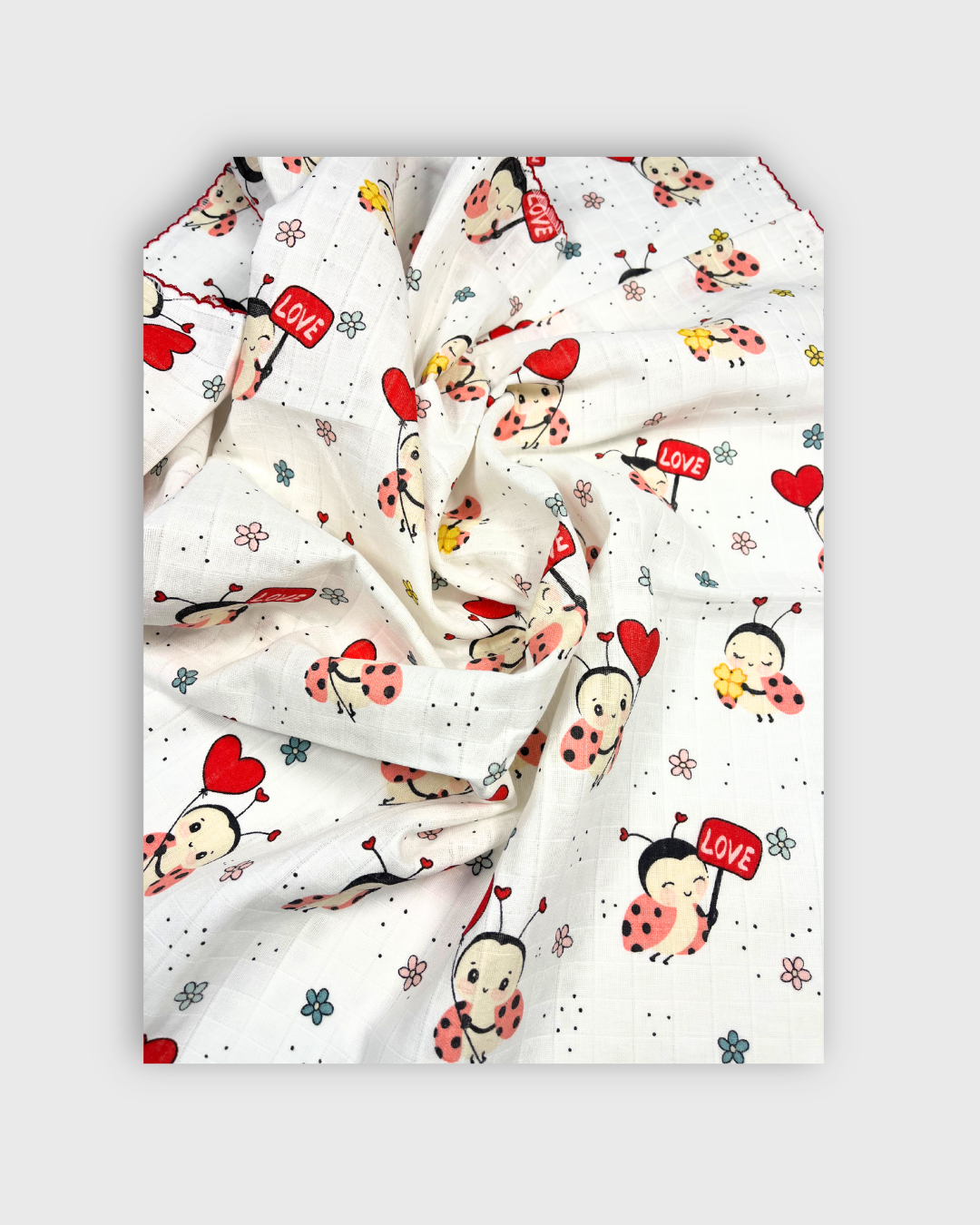 Ari desenli tek kat müslin battaniye, yenidoğan ve 1 ay, 6 ay, 12 ay bebekler için özel üretilmiş %100 pamuklu müslin bebek battaniyesi modelidir. Hafif, nefes alan ve terletmeyen yapısıyla özellikle bahar ve yaz ayları için ideal bir tek kat müslin battaniye seçeneğidir.