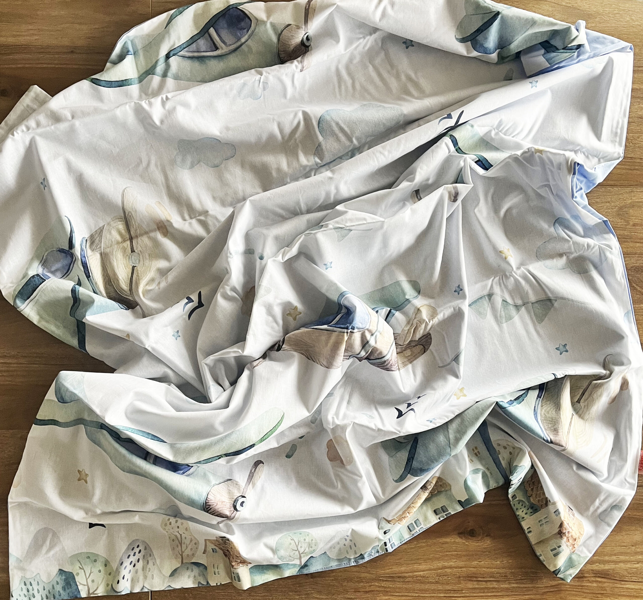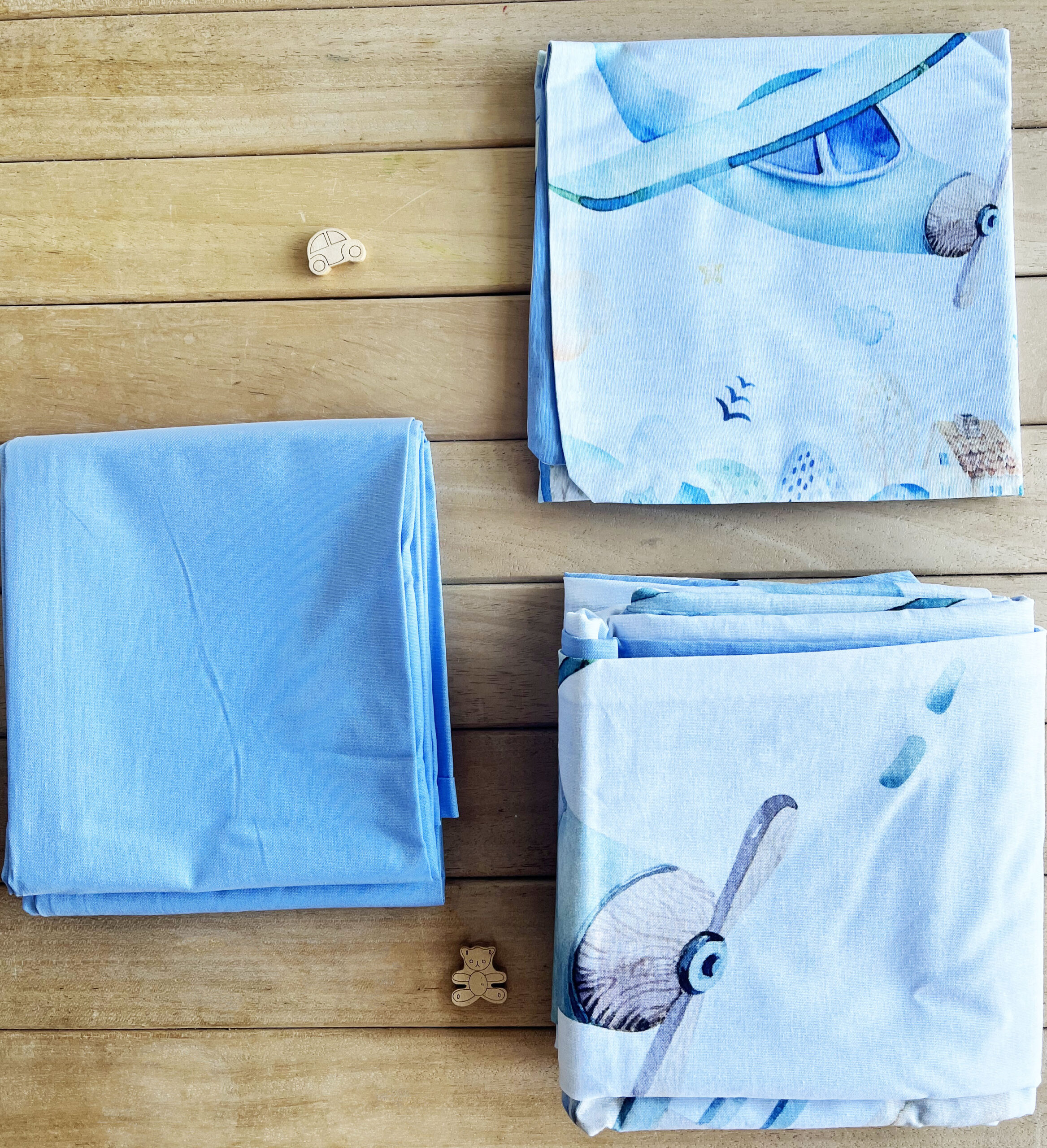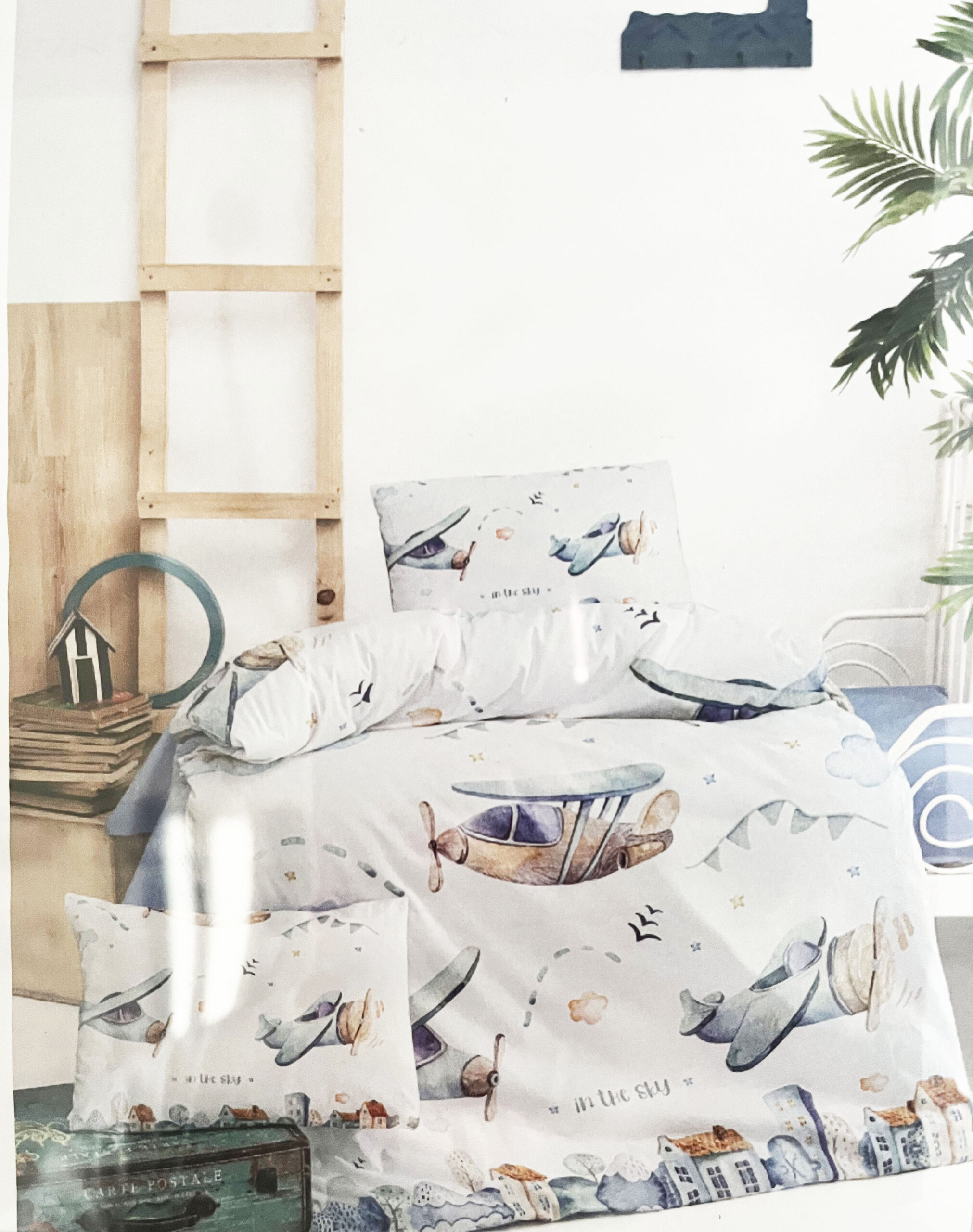 Uçak Desenli %100 Pamuk 3 Parça Bebek Nevresim Seti Minik pilotların tatlı rüyalarına eşlik edecek uçak desenli bebek nevresim seti,