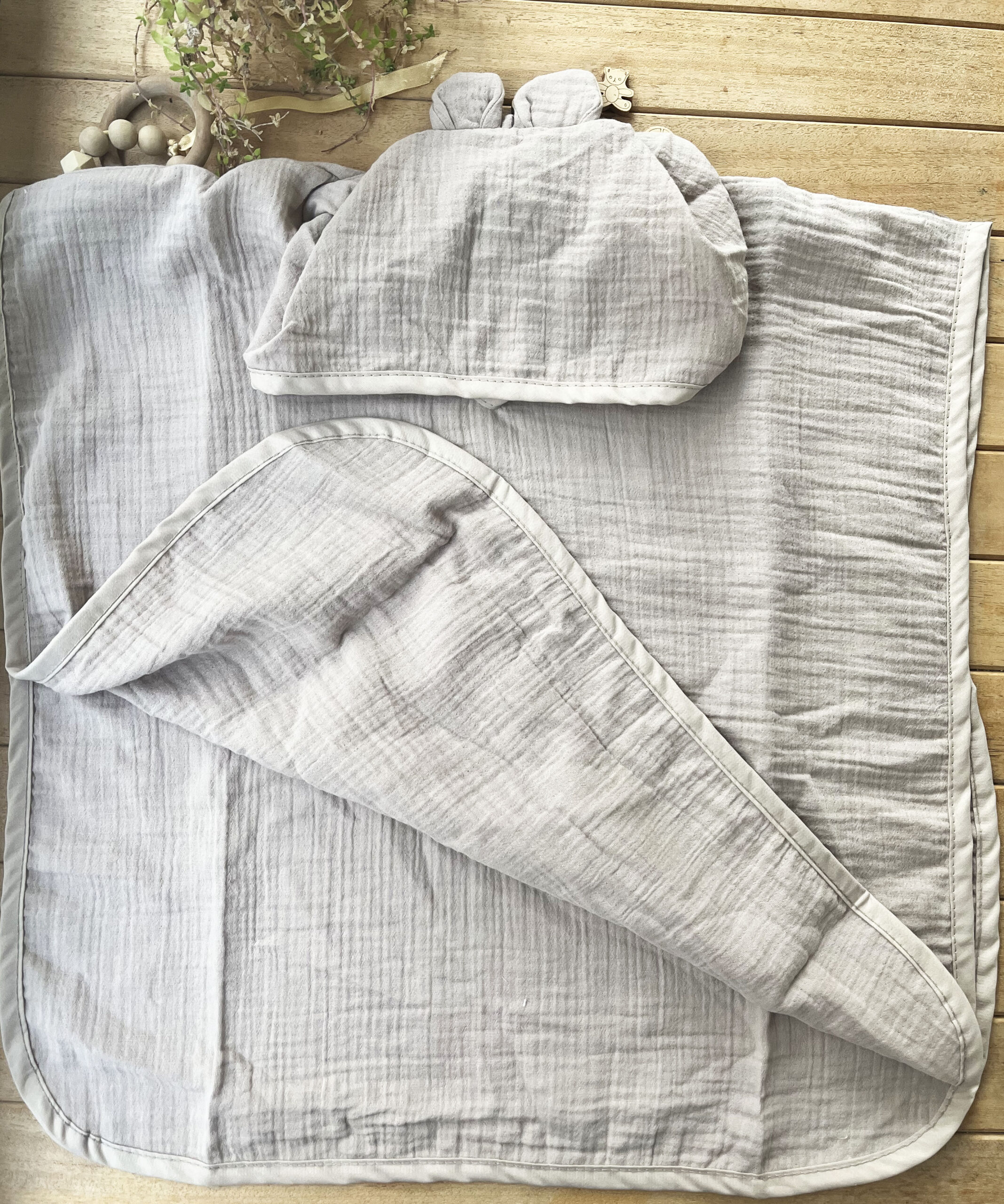 Kapişonlu Çift Katlı Müslin Pelerin – Bej, bebeğinizin her anına yumuşacık bir dokunuş eklemek için hazır! 🌿🤍