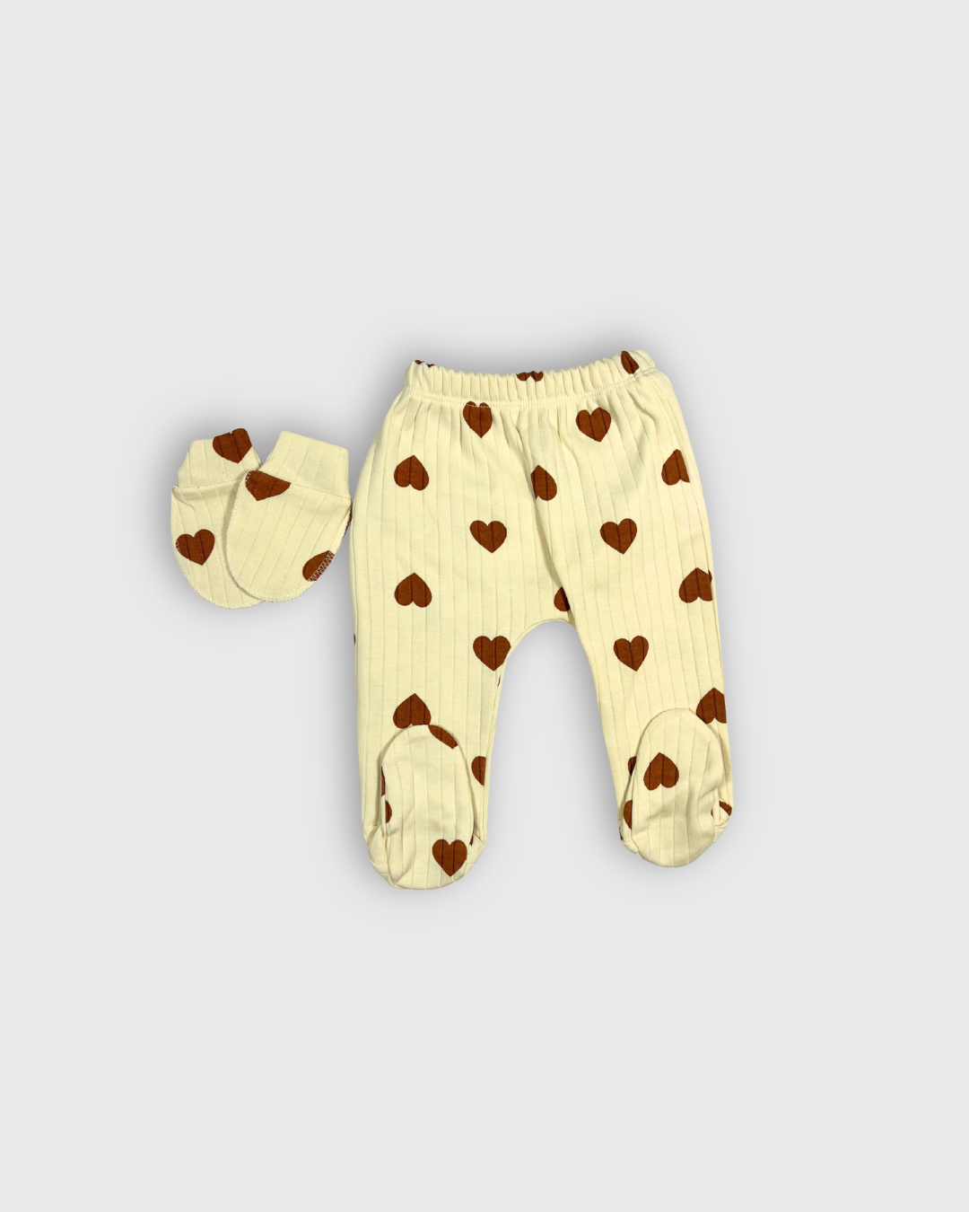 Nazik dokulu, pamuklu kumaşı sayesinde hassas bebek cildiyle uyumludur. Terletmeyen ve nefes alabilen yapısı ile bebeğinizi gün boyu rahat ettirir. Sevimli kalp detayları ise ilk fotoğraflara tatlı bir şıklık katar.