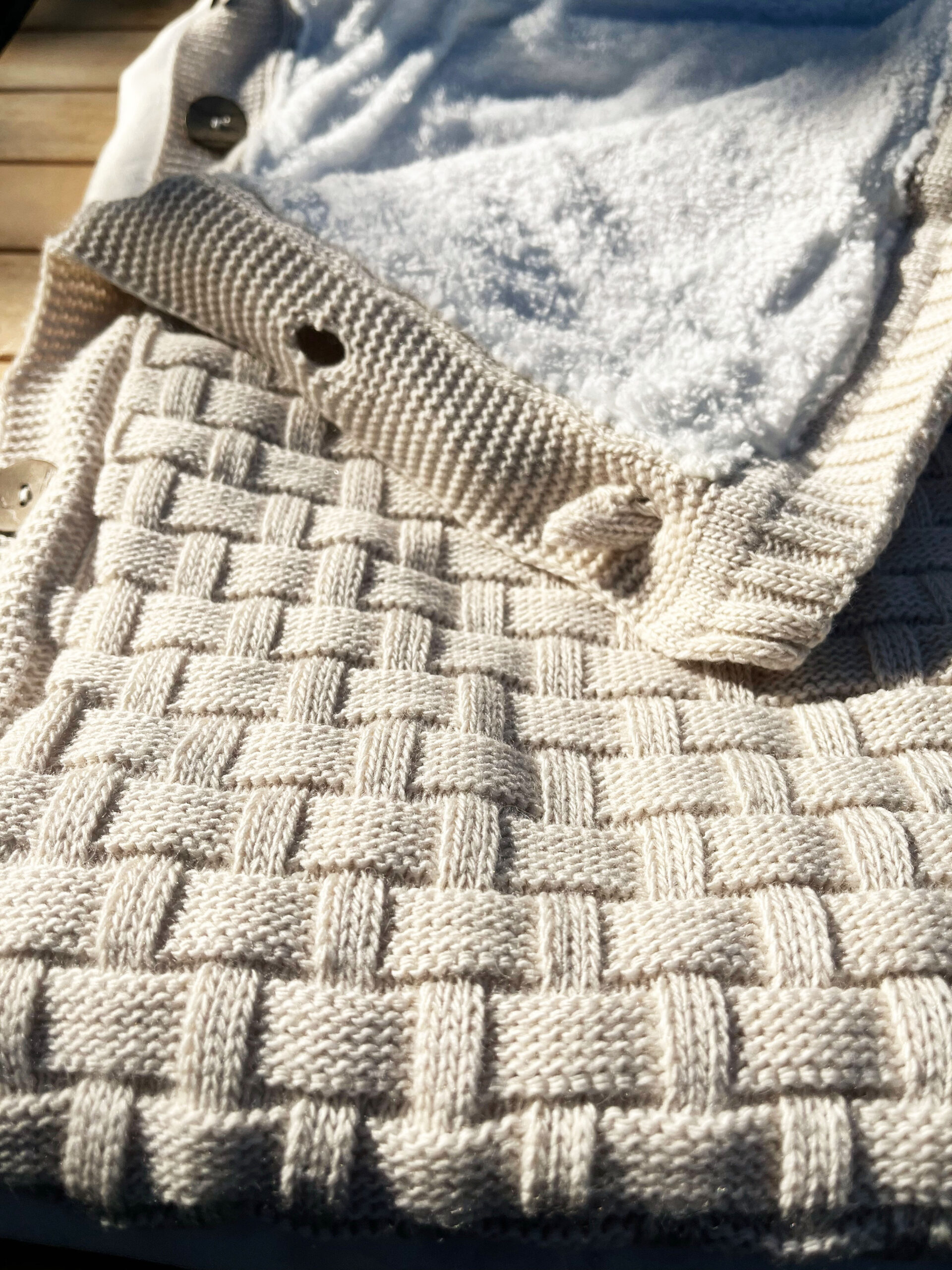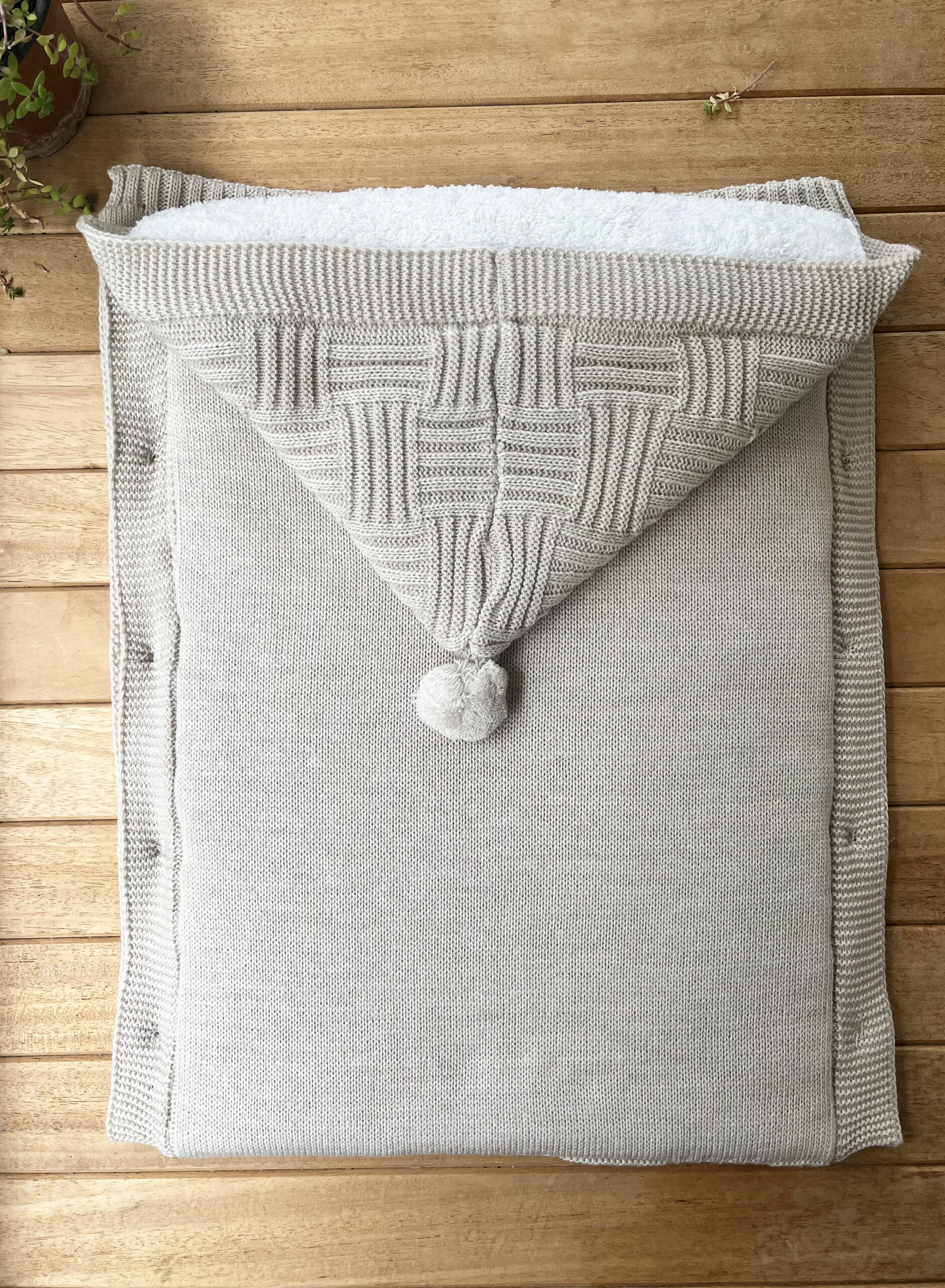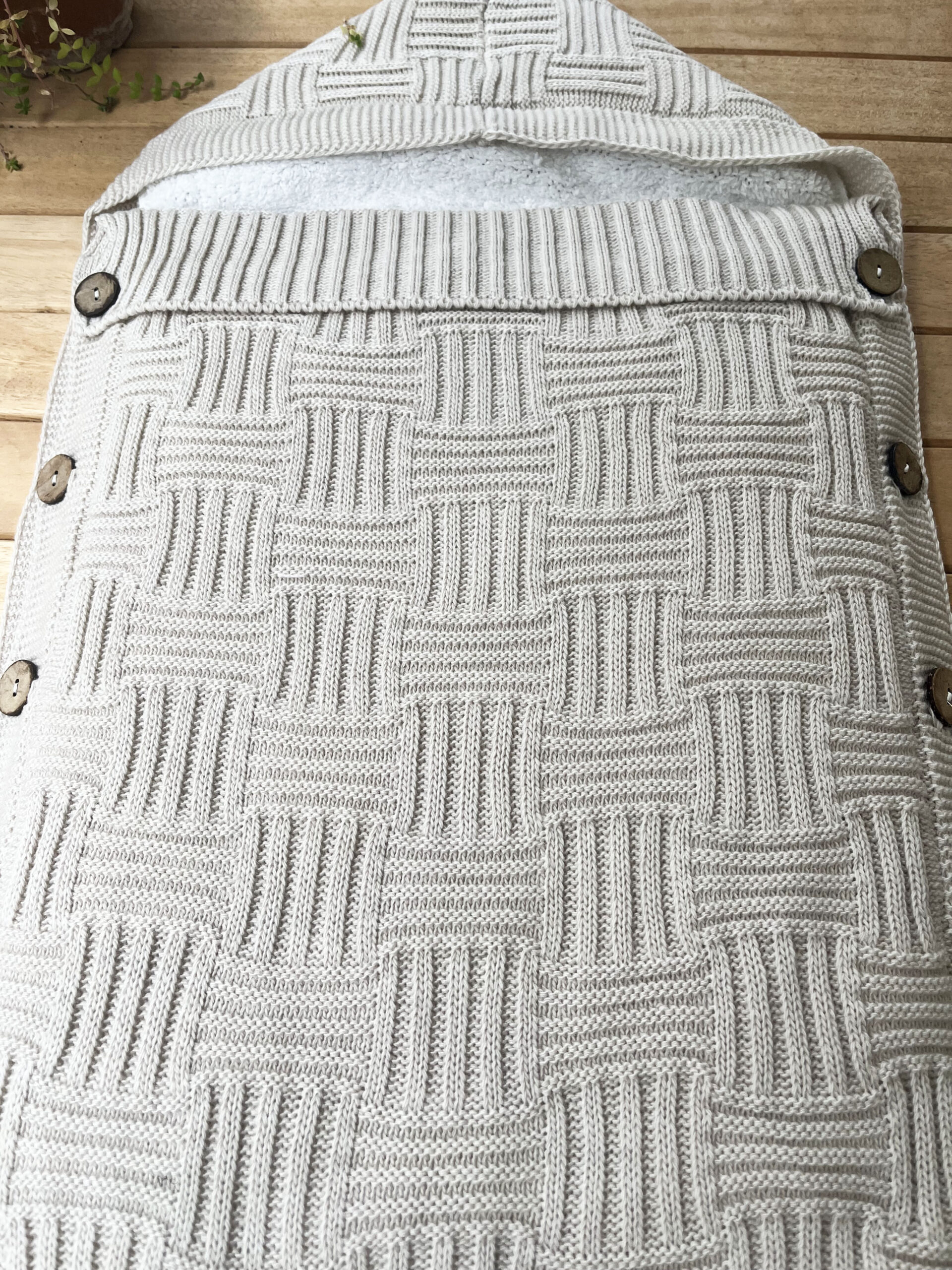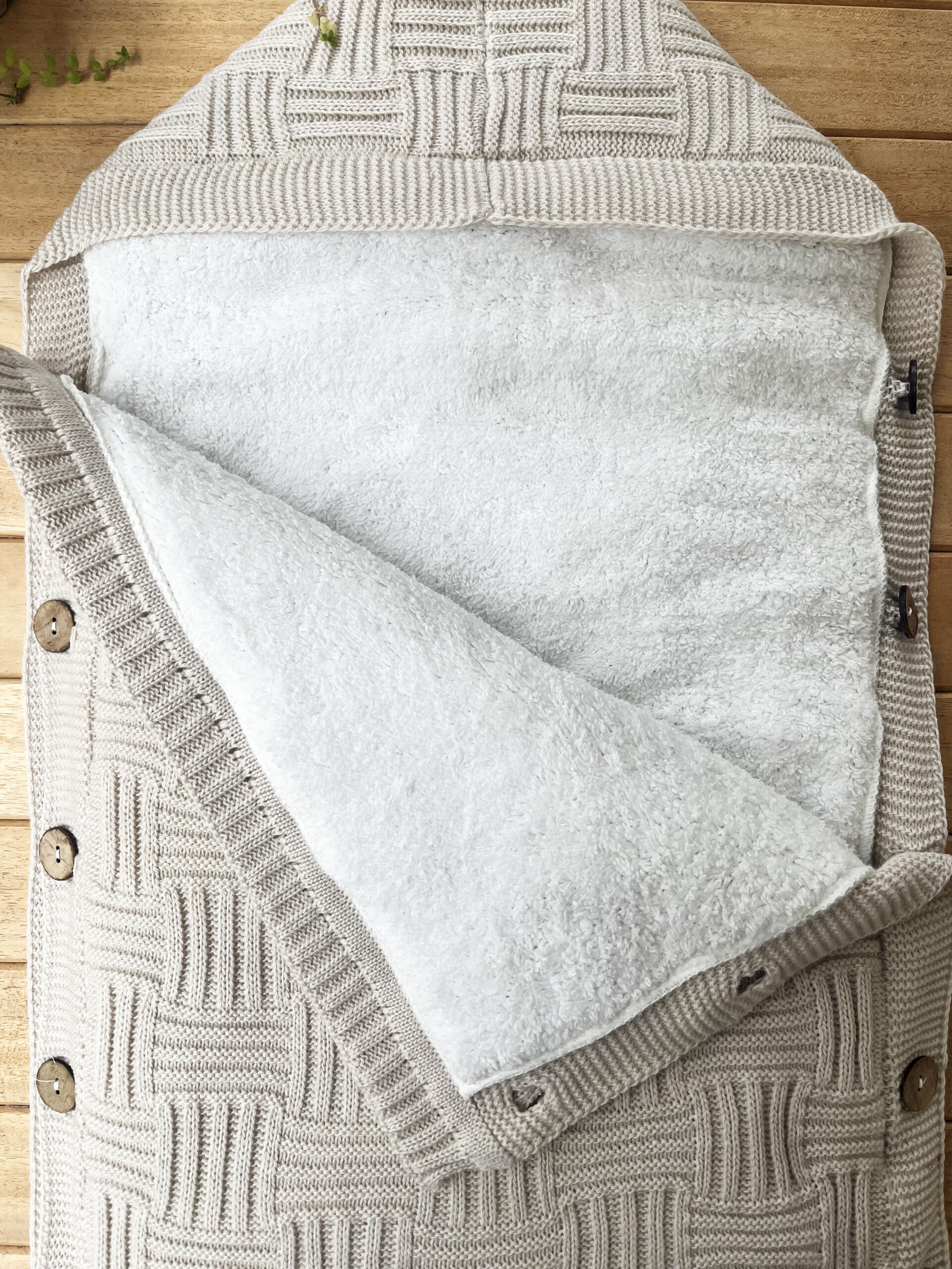 Dışı Triko İçi Wellsoft Yumuşacık Sepet Örgü Desenli Kundak-Bej