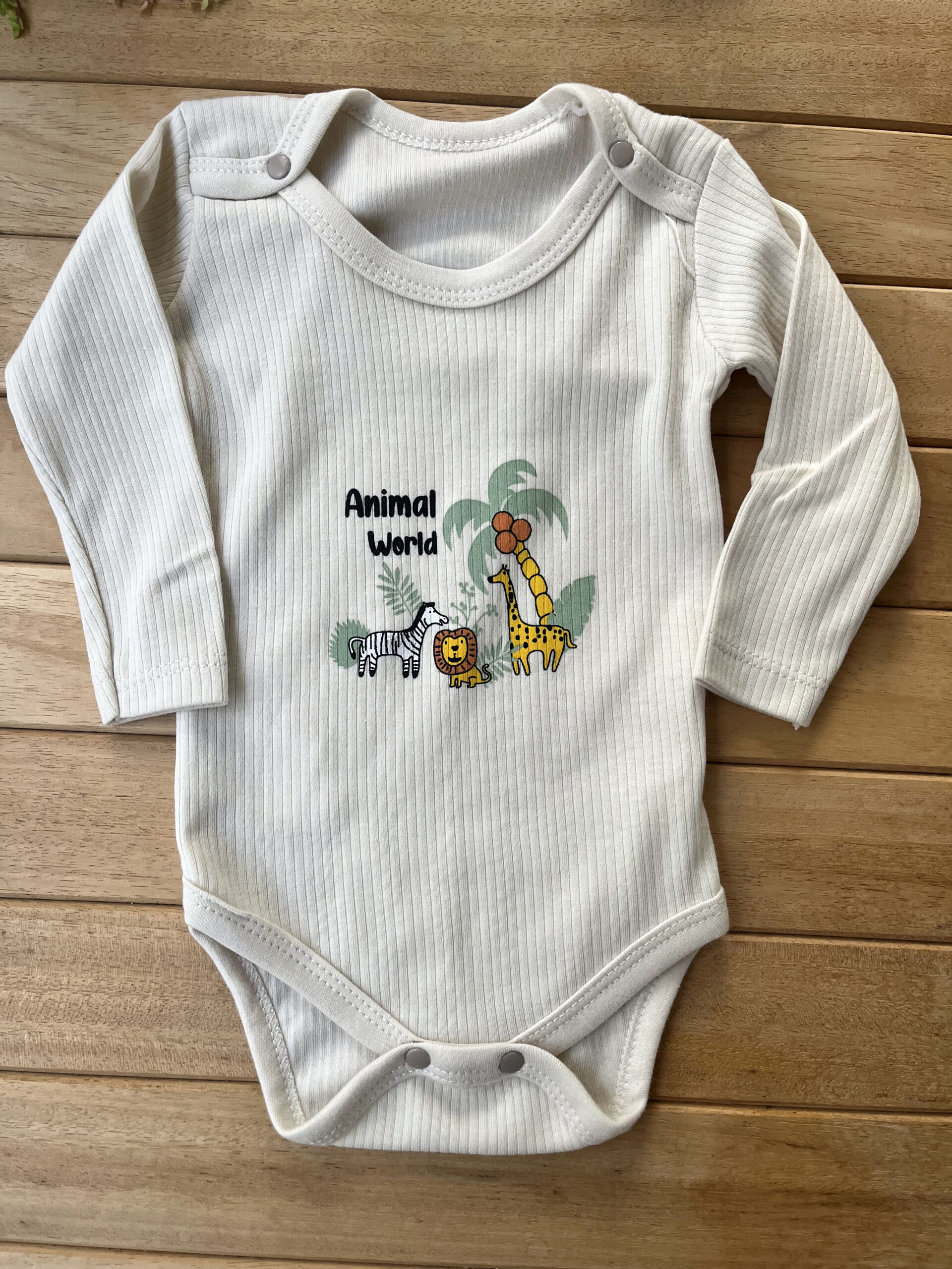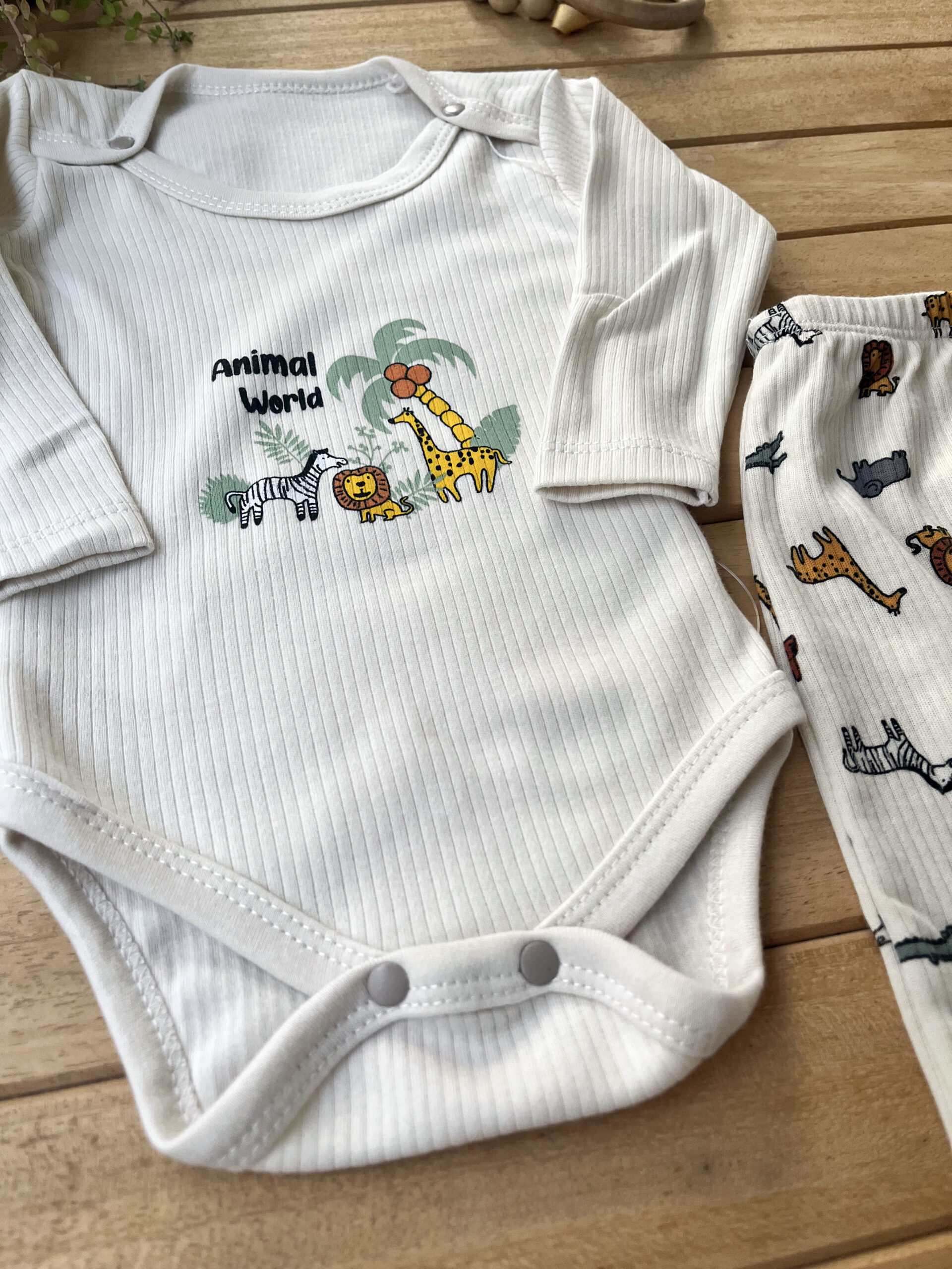Erkek Bebek 2’li Takım Hayvanlar Alemi Baskılı Uzun Kollu Fitilli Kaşkorse Çıtçıtlı Body