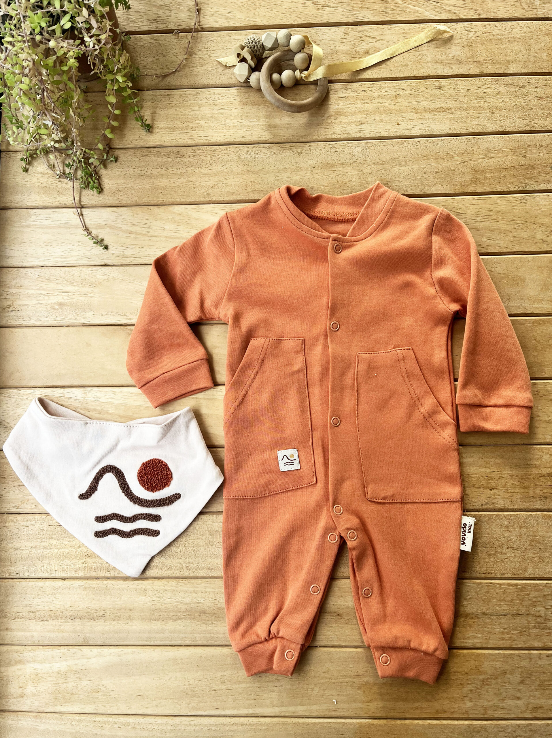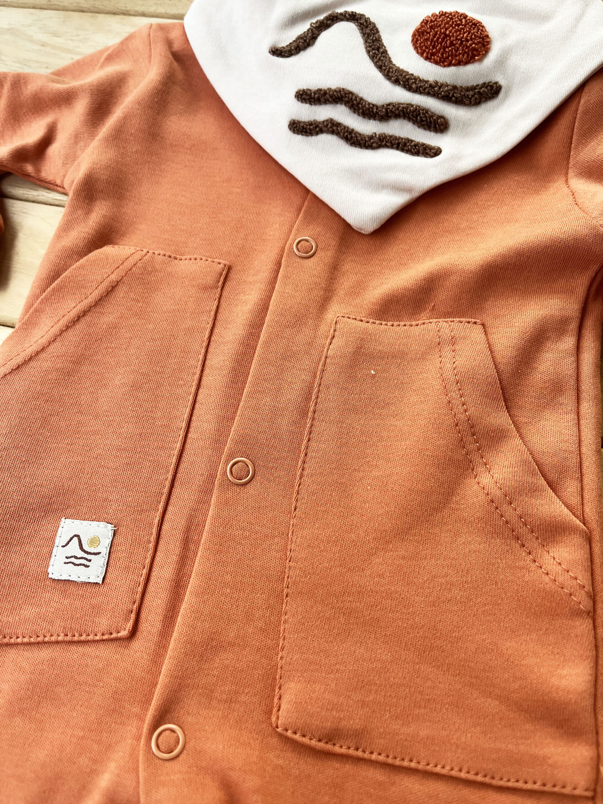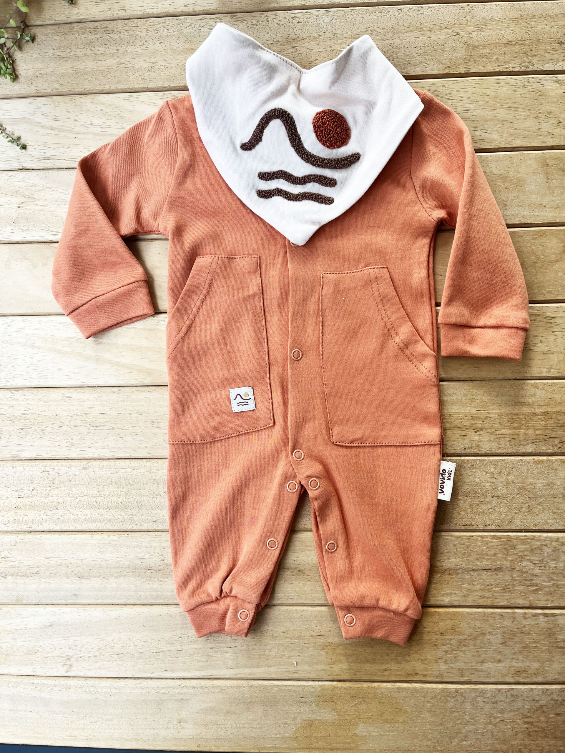 Güneş Nakışlı Turuncu Bebek Tulum Çıtçıtlı %100Pamuk 1-3-6Ay