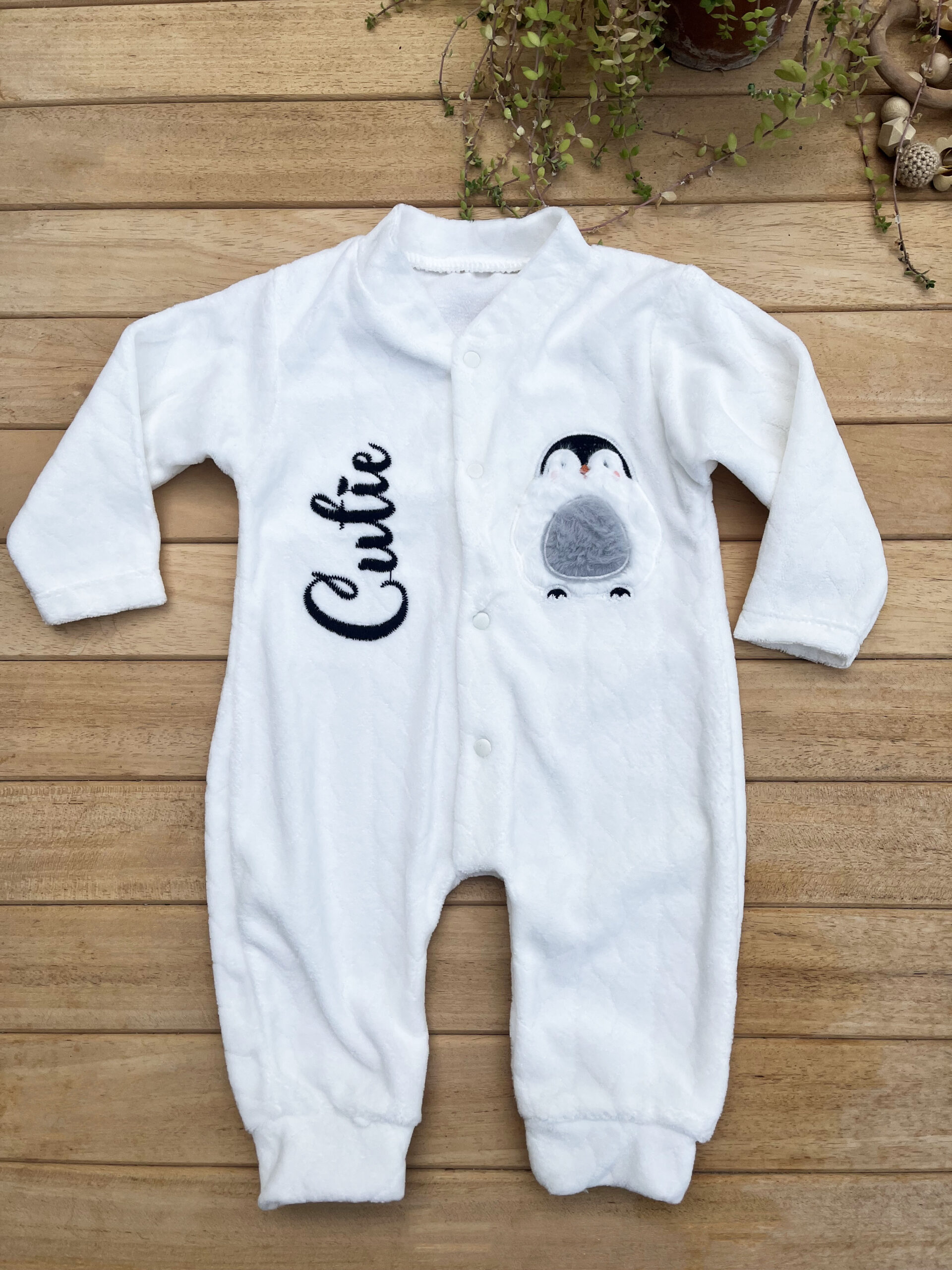 Kadife Patikli Bebek Tulum Kışlık Mevsimlik Penguen