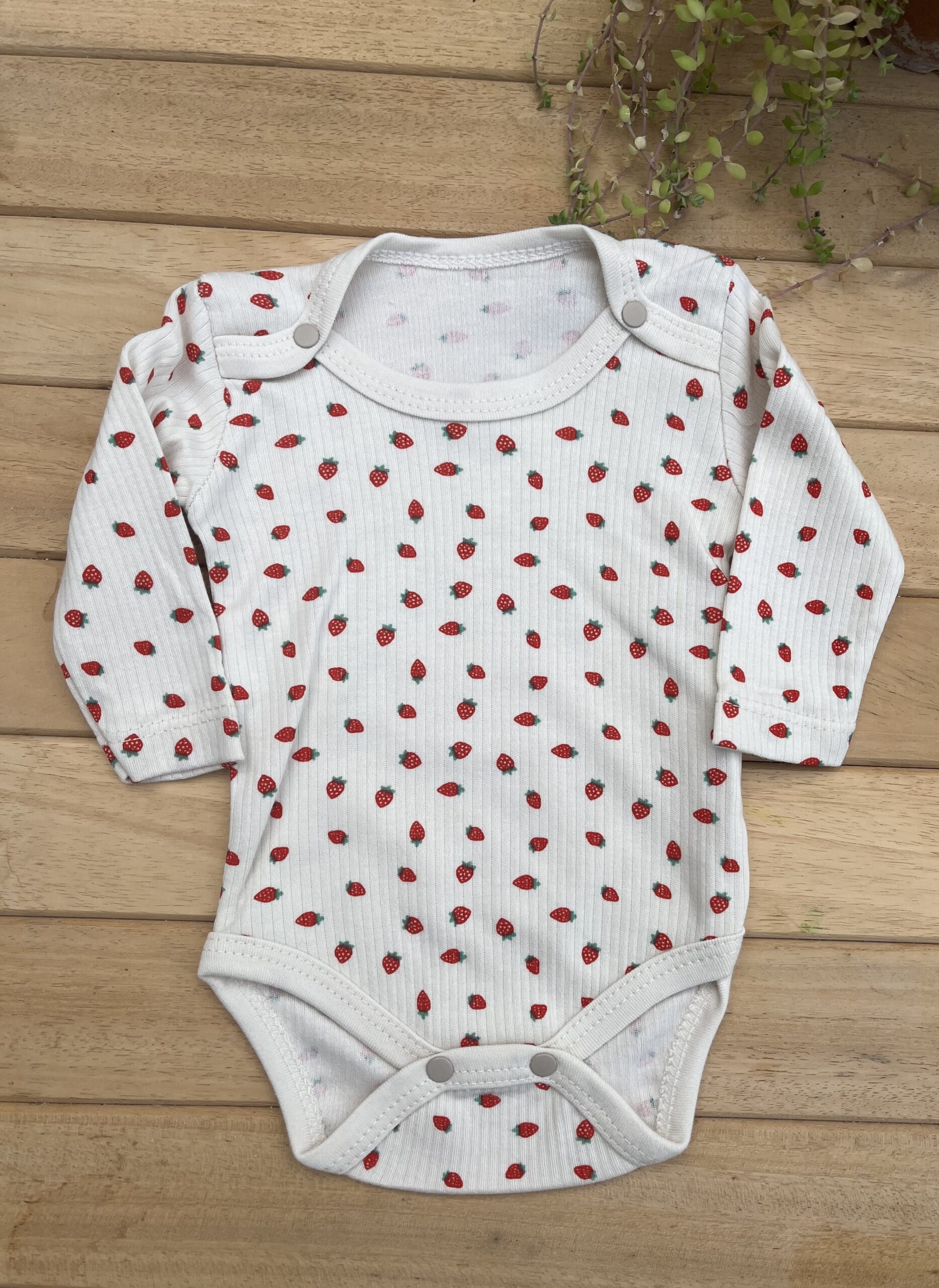 Kız Bebek 2’li Takım Çilek Baskılı Uzun Kollu Fitilli Kaşkorse Çıtçıtlı Body