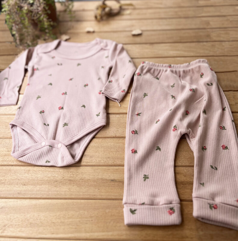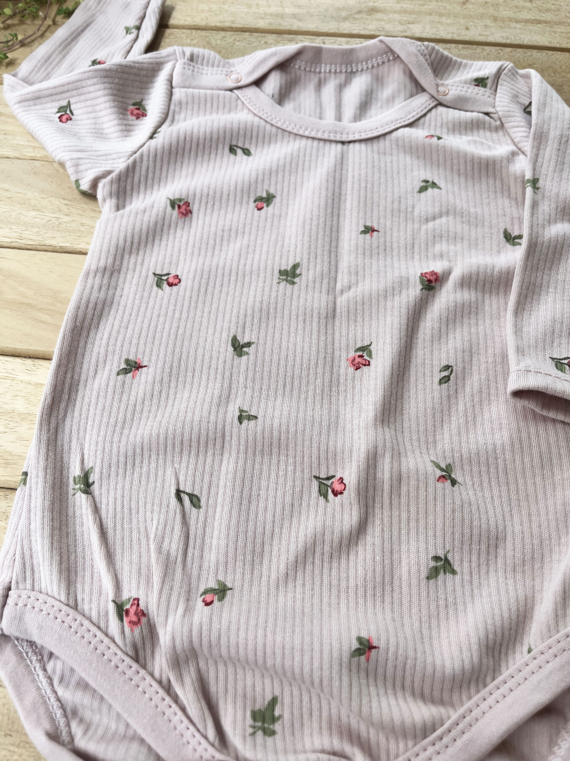 %100 Pamuk Ribana Dokulu Uzun Kollu Fitilli Lale Desenli Çıtçıtlı Body