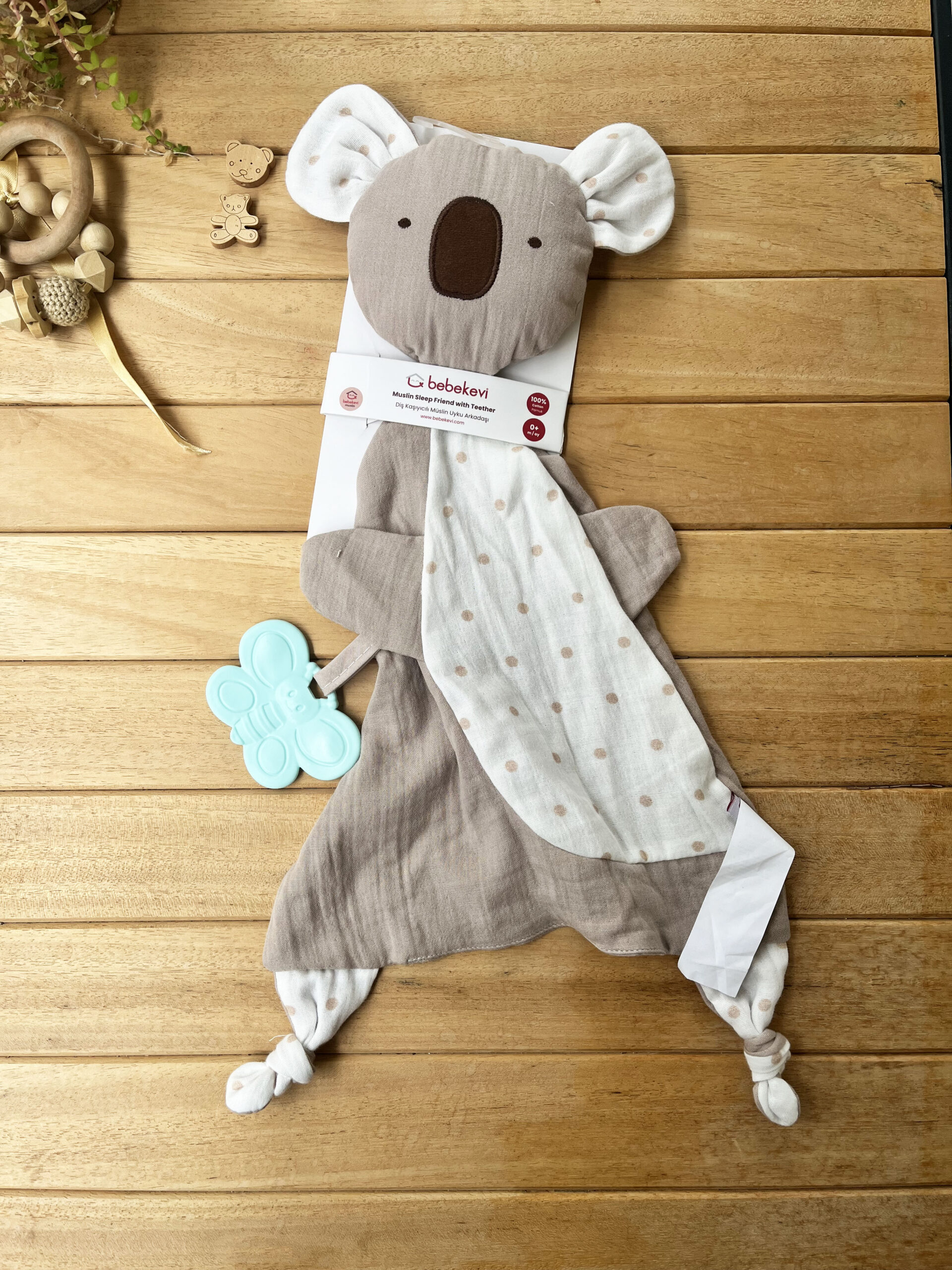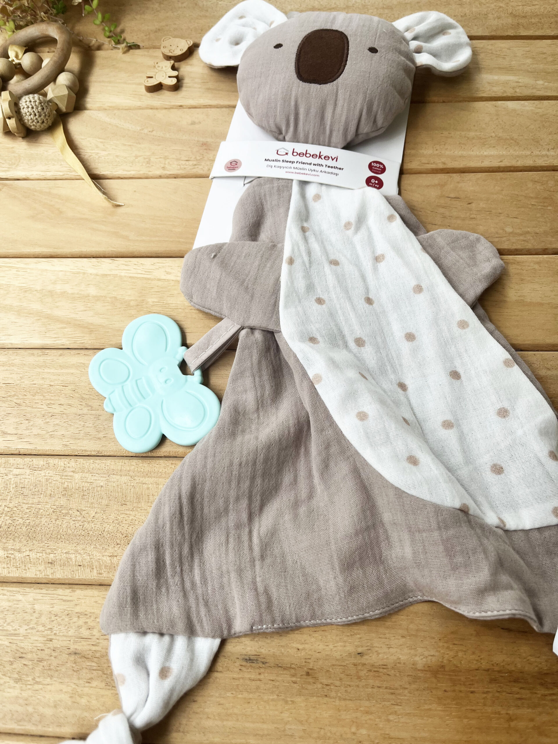 Mammaso Kelebek Diş Kaşıyıcılı Sevimli Koala %100 Pamuklu Müslin Uyku Arkadaşı -Bej