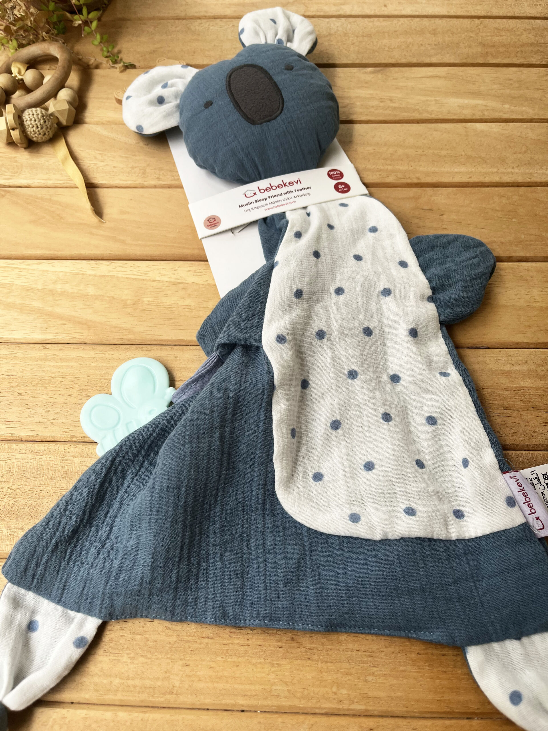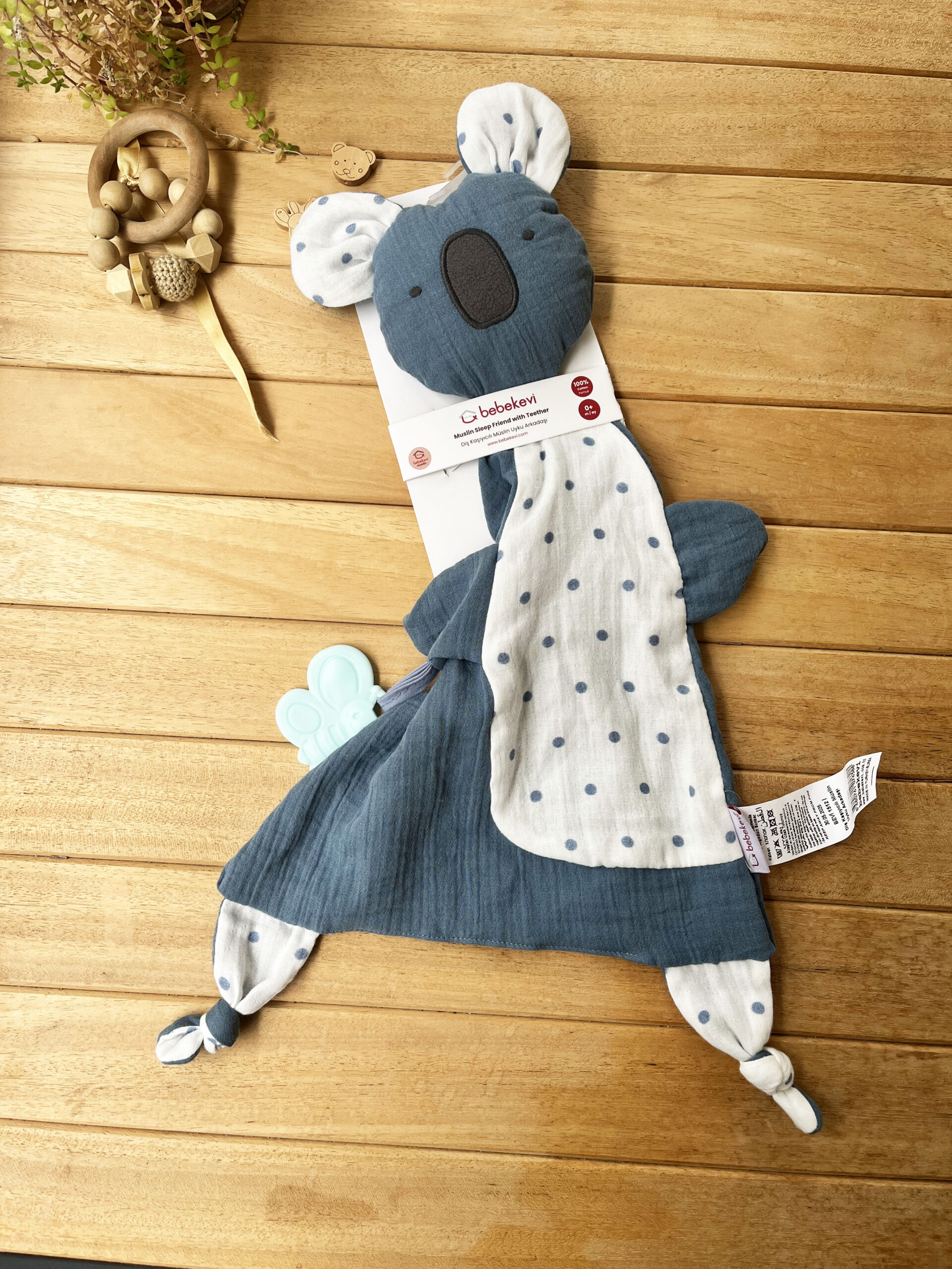 Sevimli Kelebek Diş Kaşıyıcılı Koala %100 Pamuklu Müslin Uyku Arkadaşı – İndigo