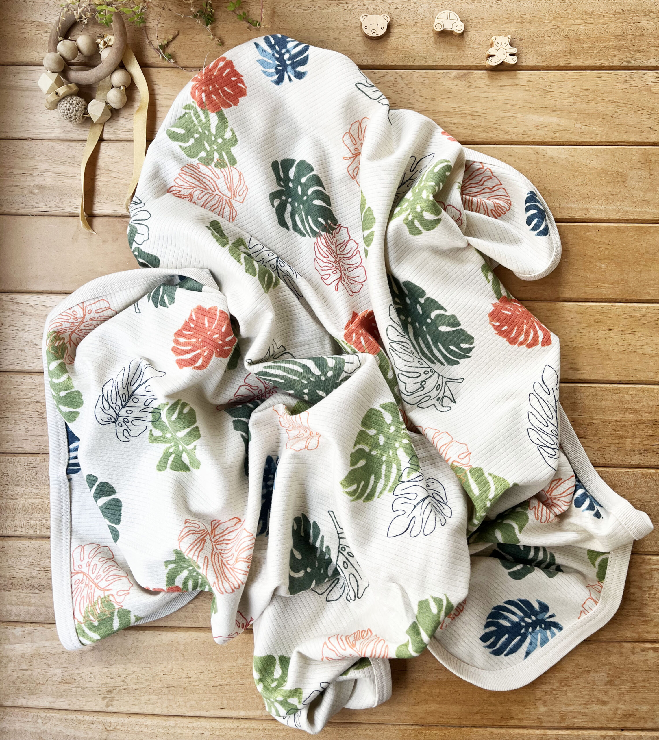Miniworld Yaprak Desenli Pamuklu 80×90 cm Tek Kat Penye Bebek Battaniye