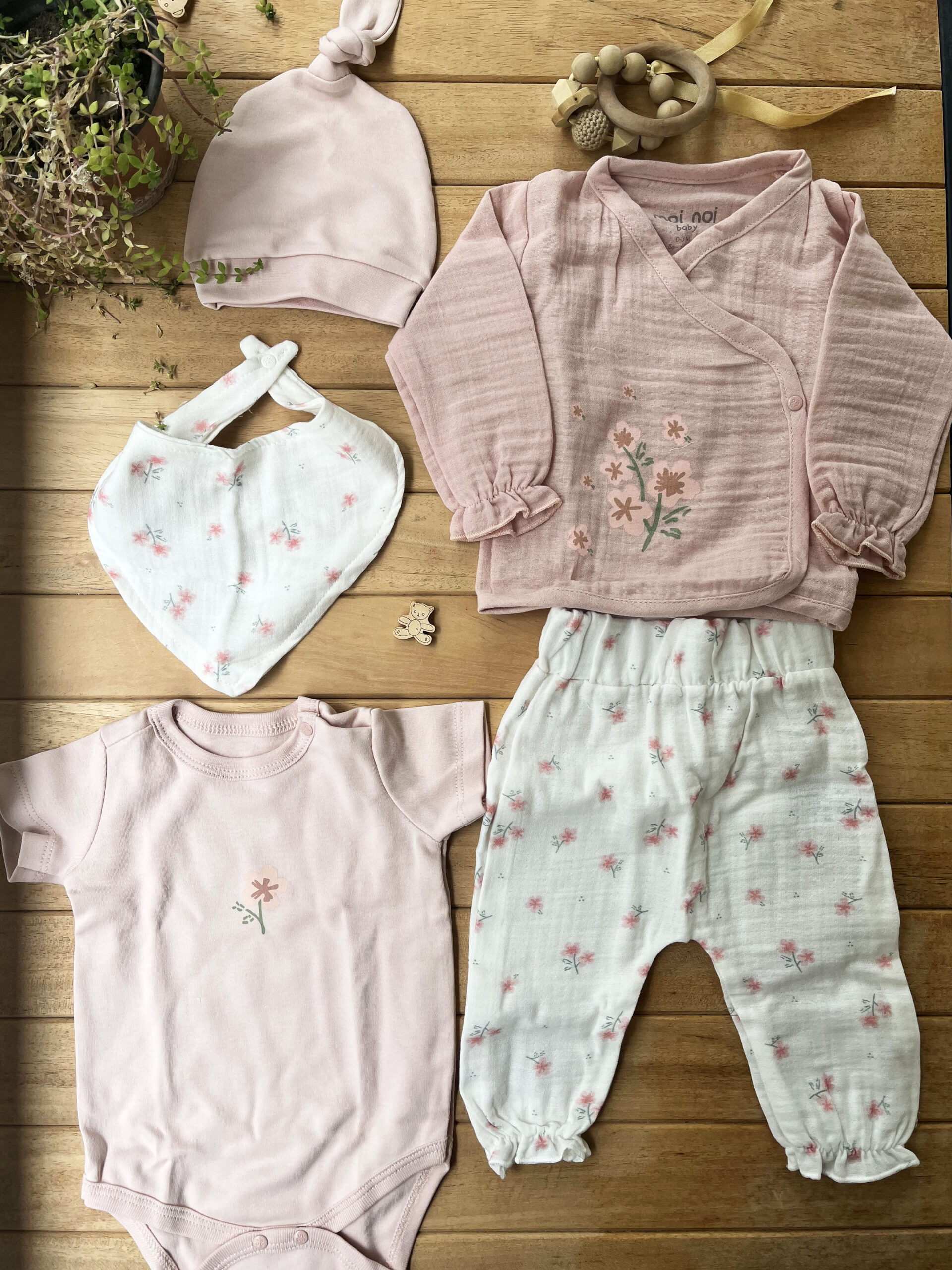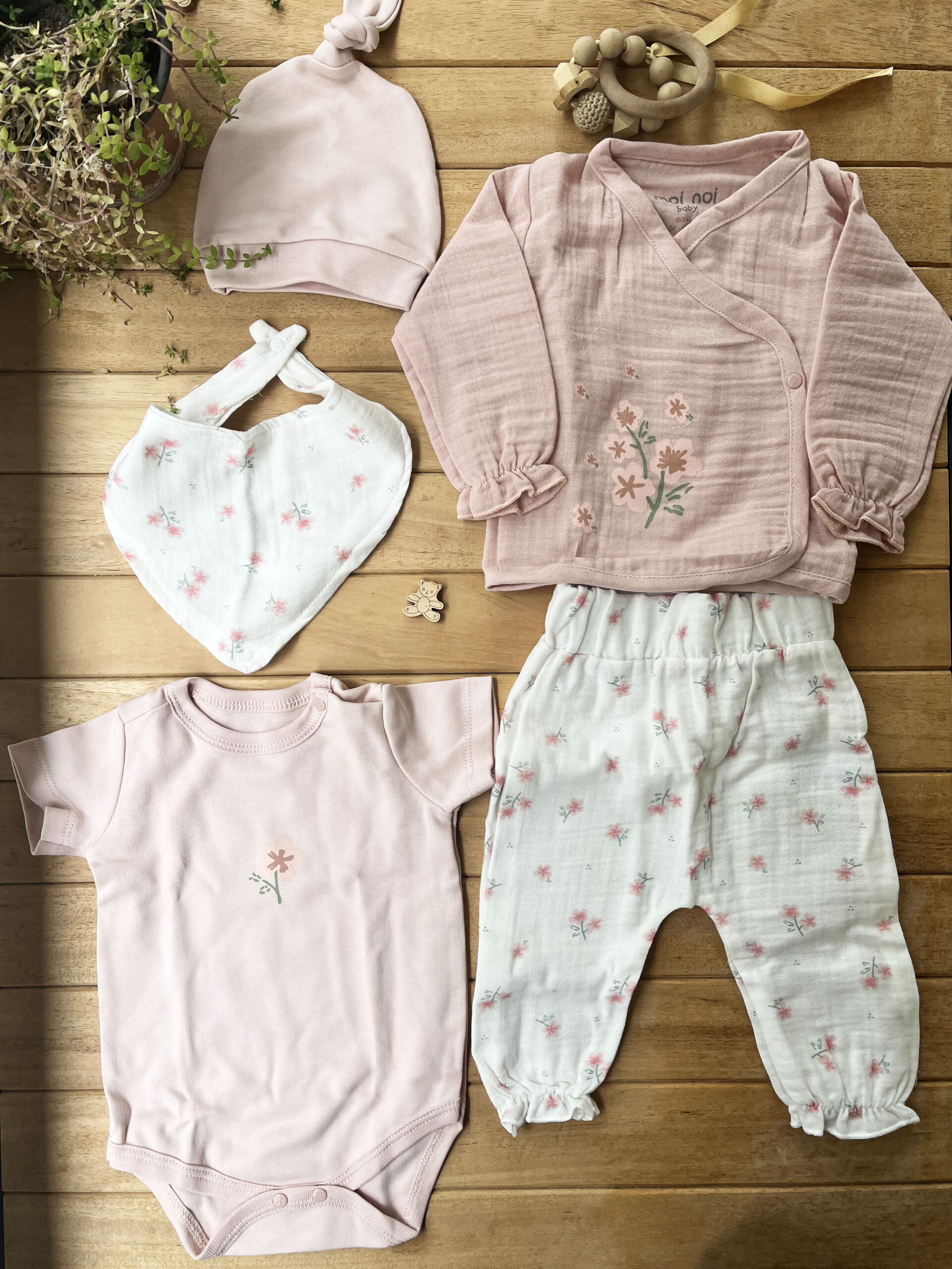 MoiNoi %100 Pamuk Müslin 5’li Hastane Çıkışı – Pembe | Yumuşak, Nefes Alan Doğal Yenidoğan Seti