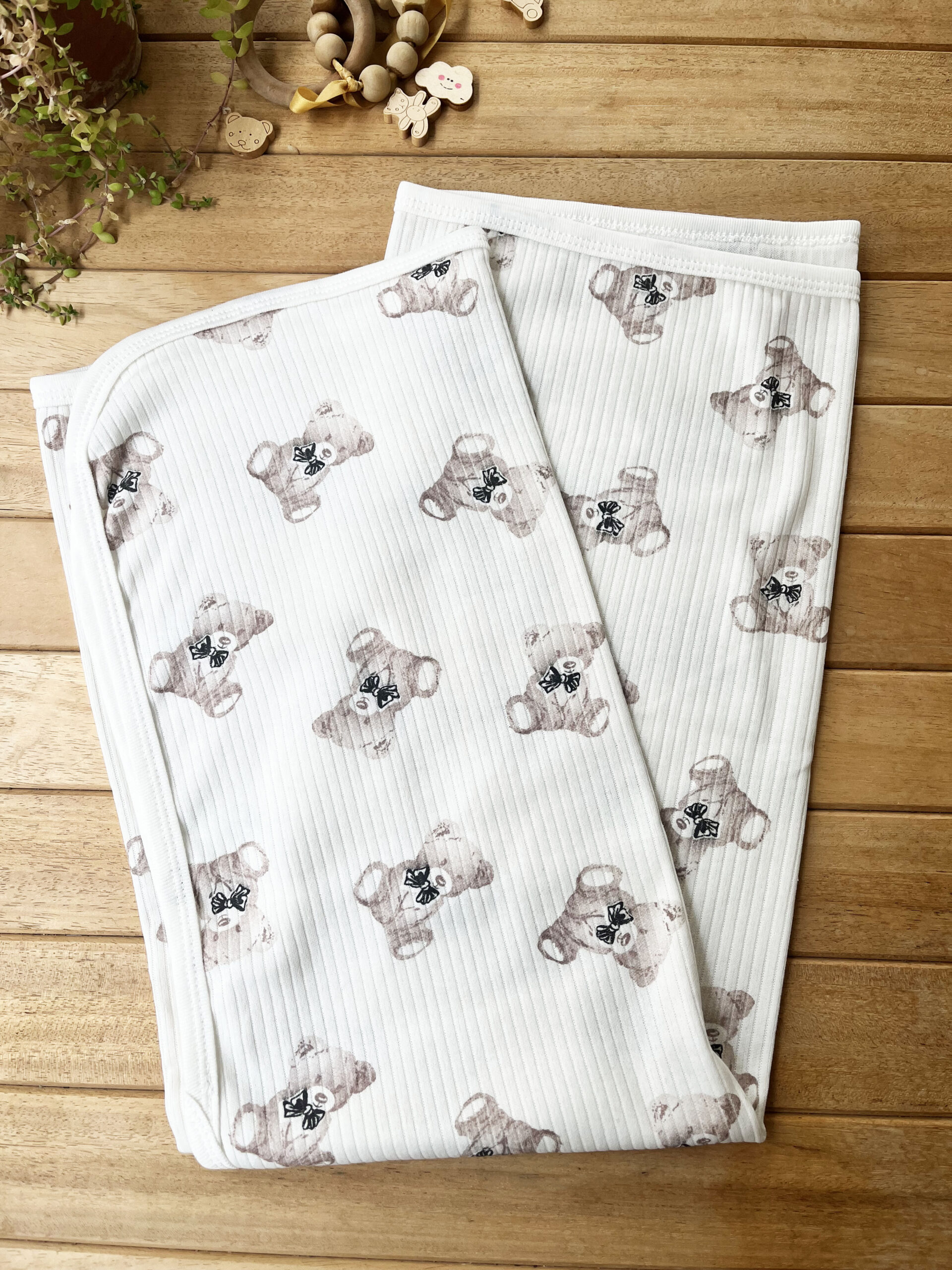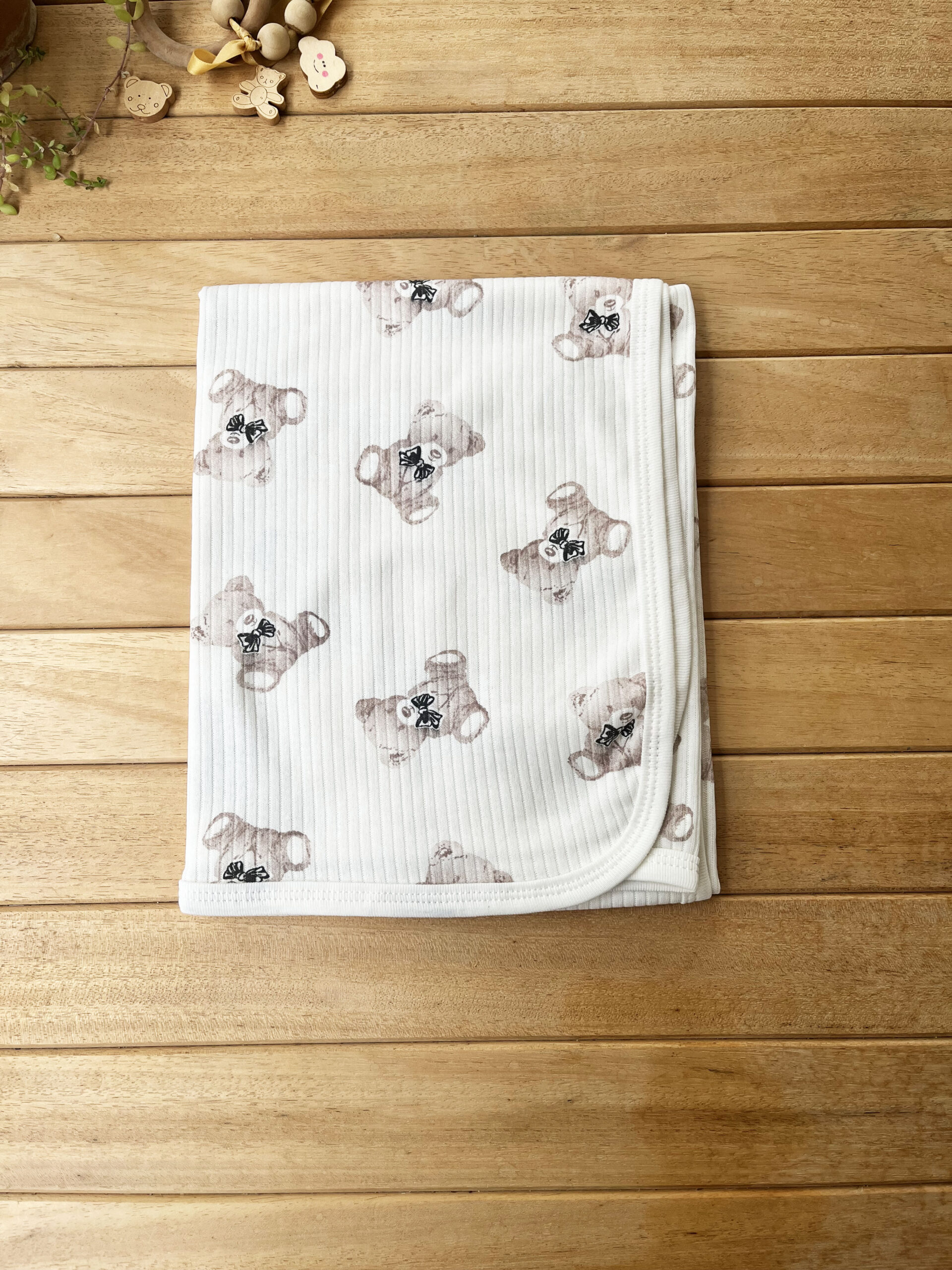 Naturel Ayıcık Pamuklu 80×90 cm Tek Kat Penye Bebek Battaniye