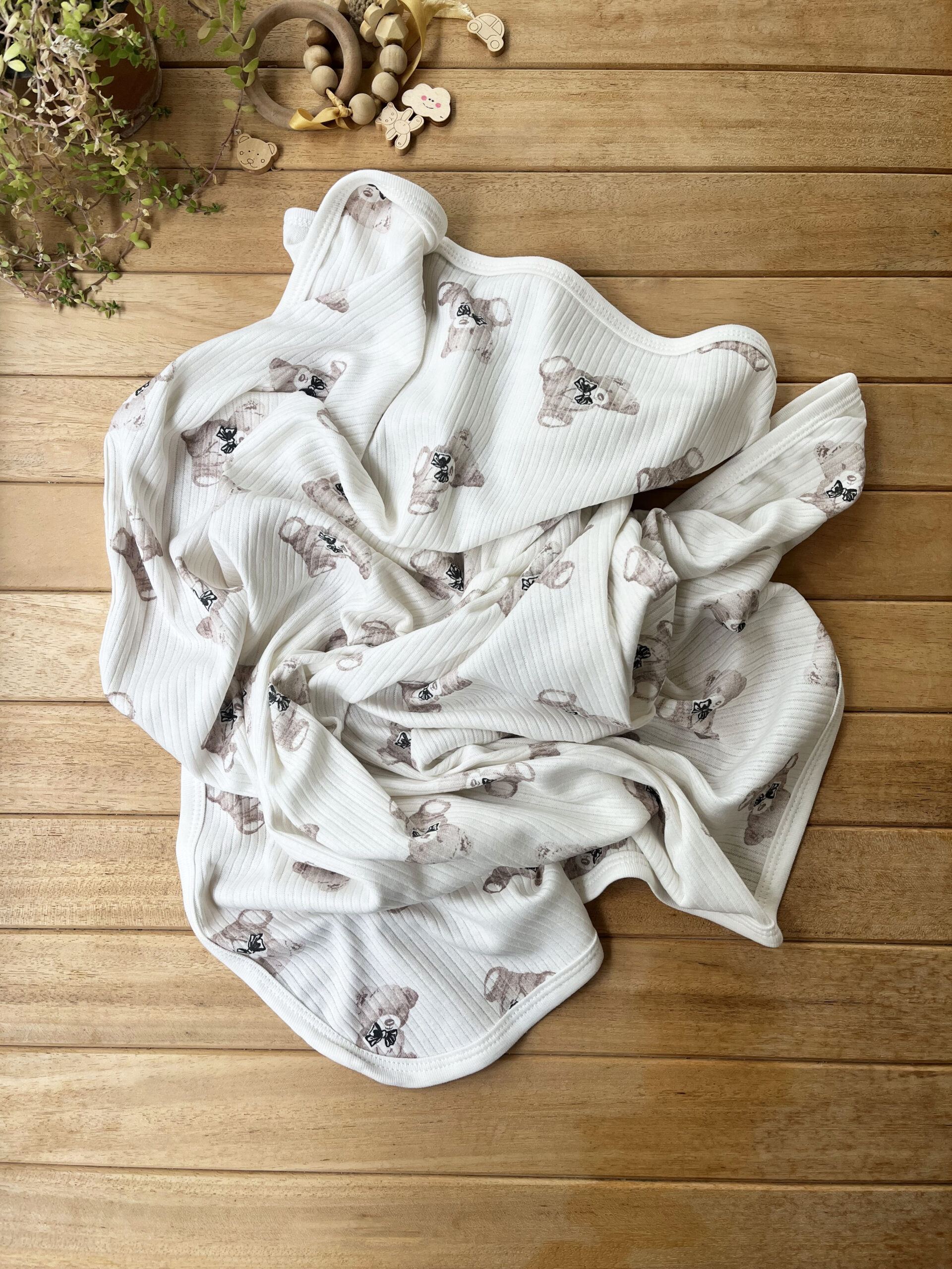 Naturel Ayıcık Penye Bebek Battaniyesi – Yumuşacık, Nefes Alan, Duyarlı Kumaş