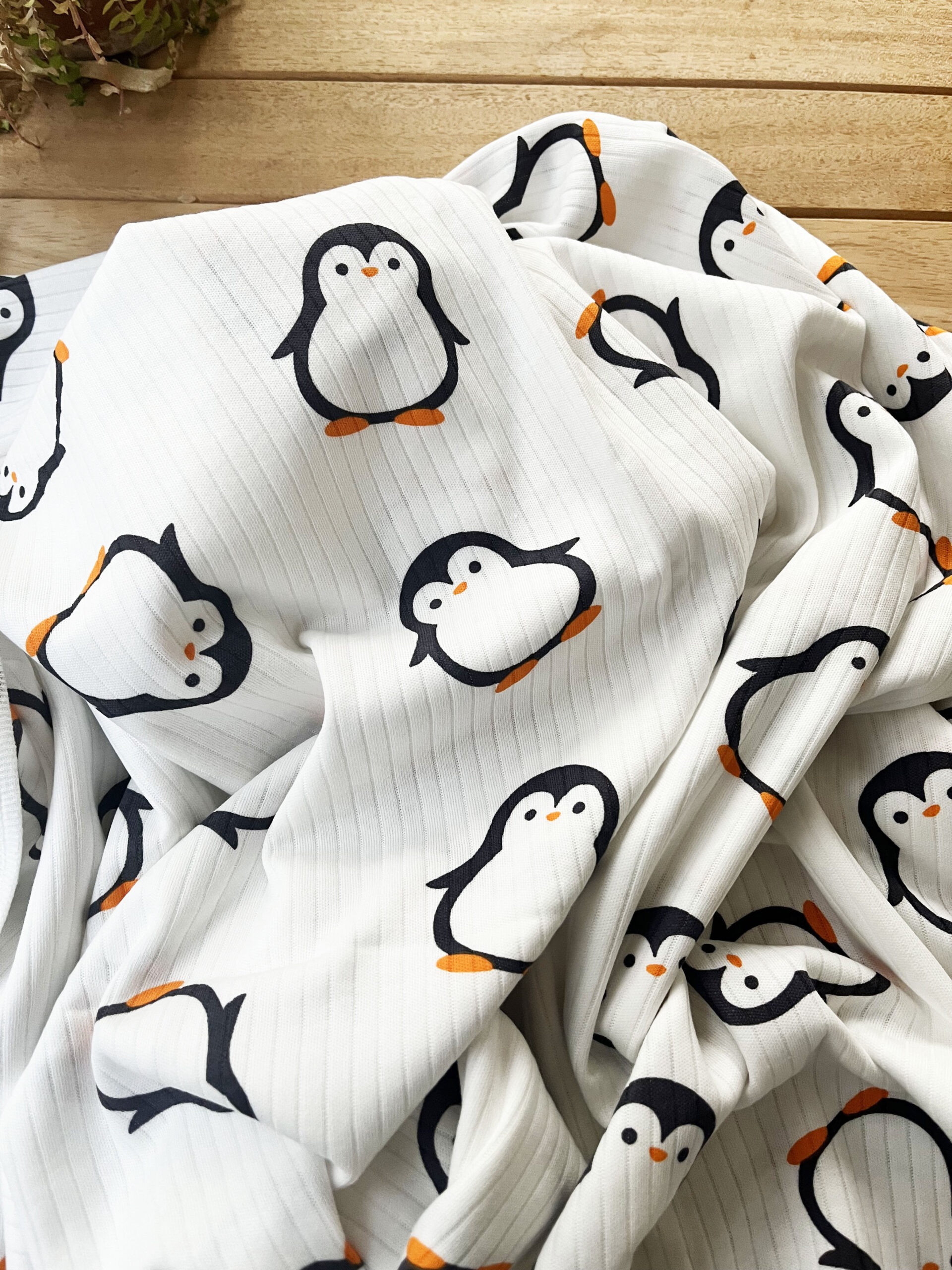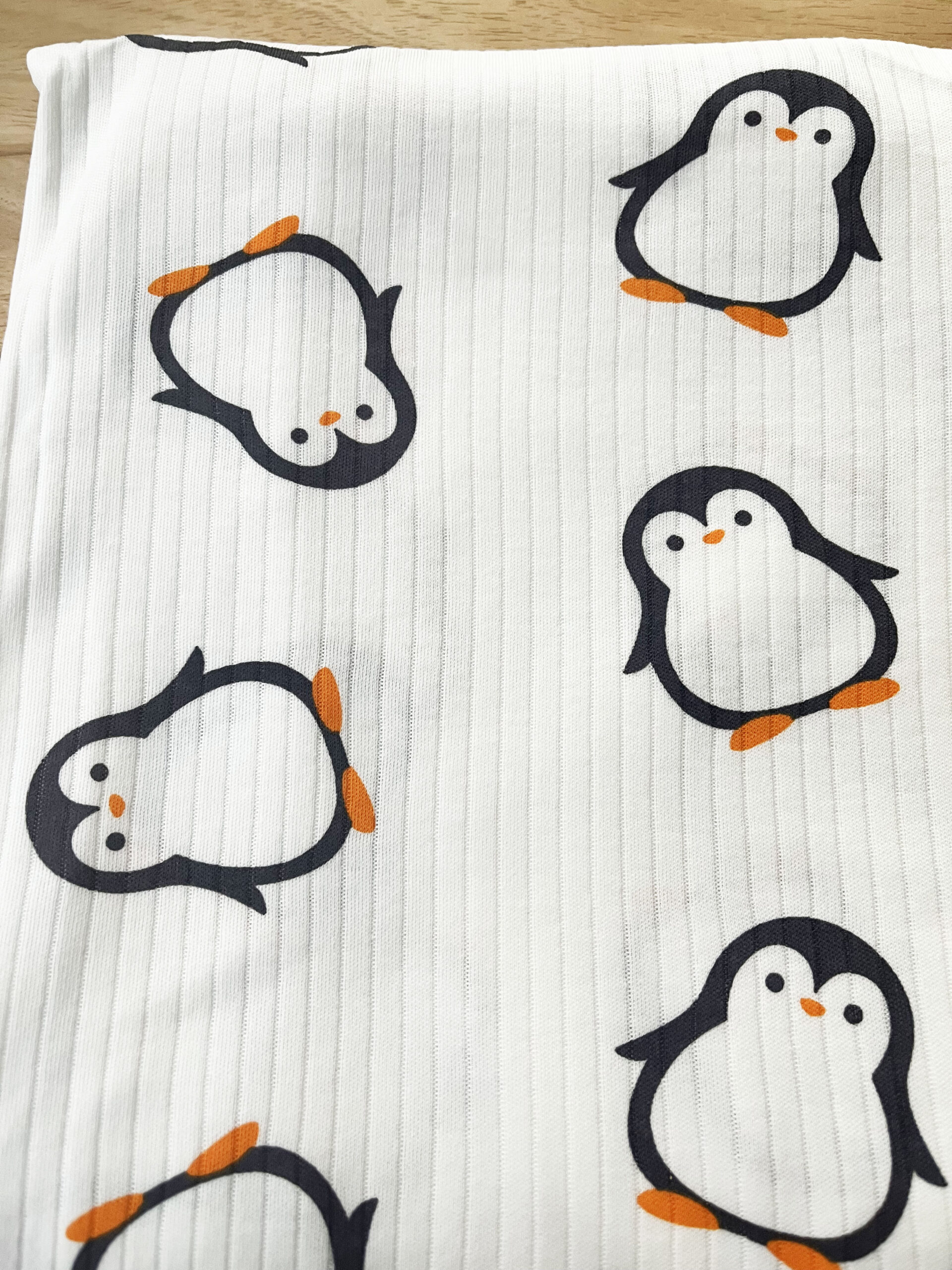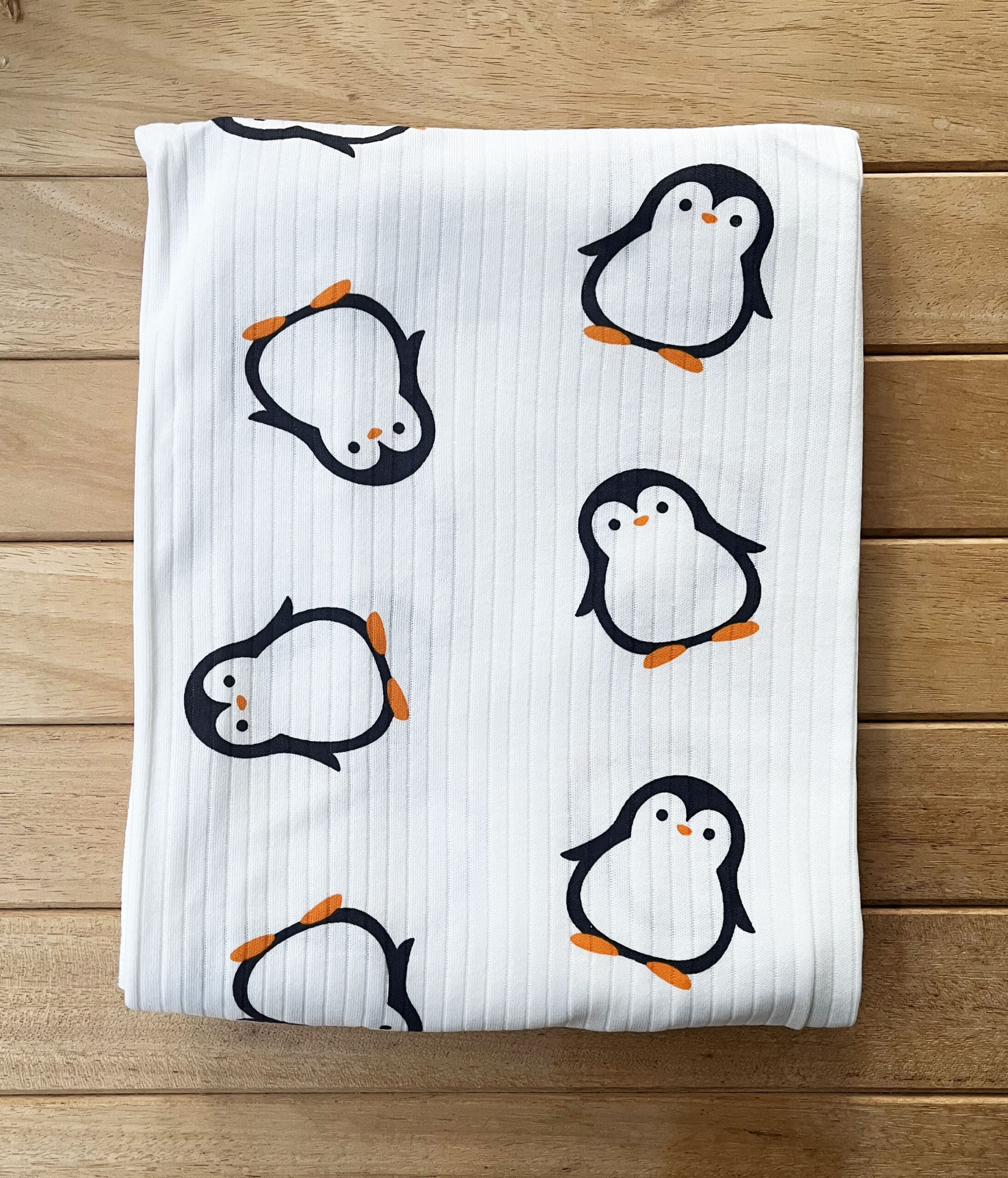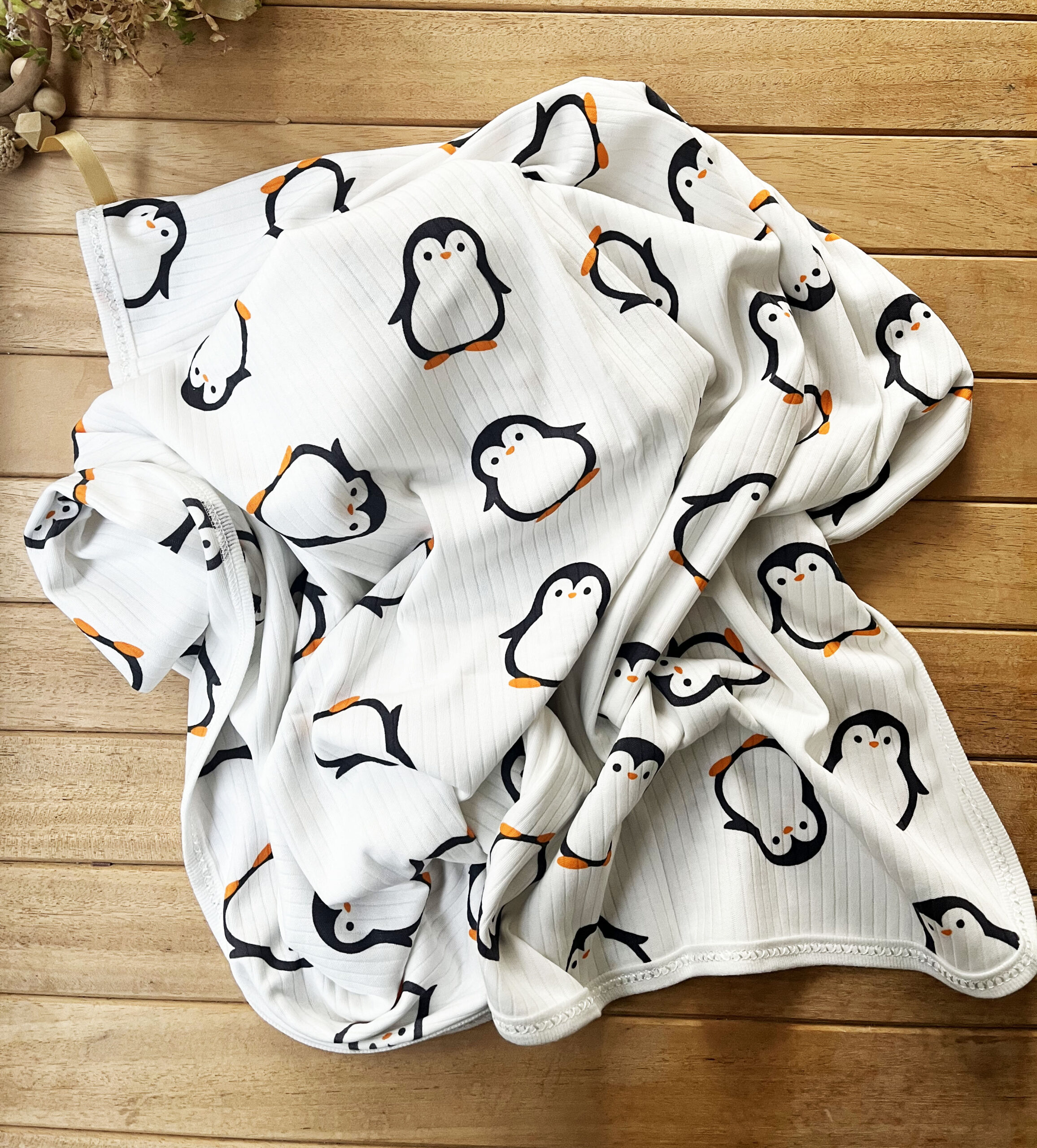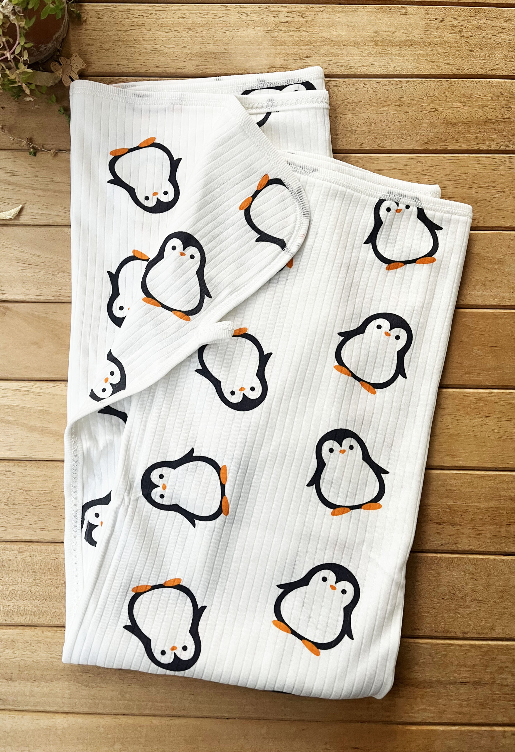 Naturel Penguen Desenli Pamuklu 80×90 cm Çift Kat Penye Bebek Battaniye