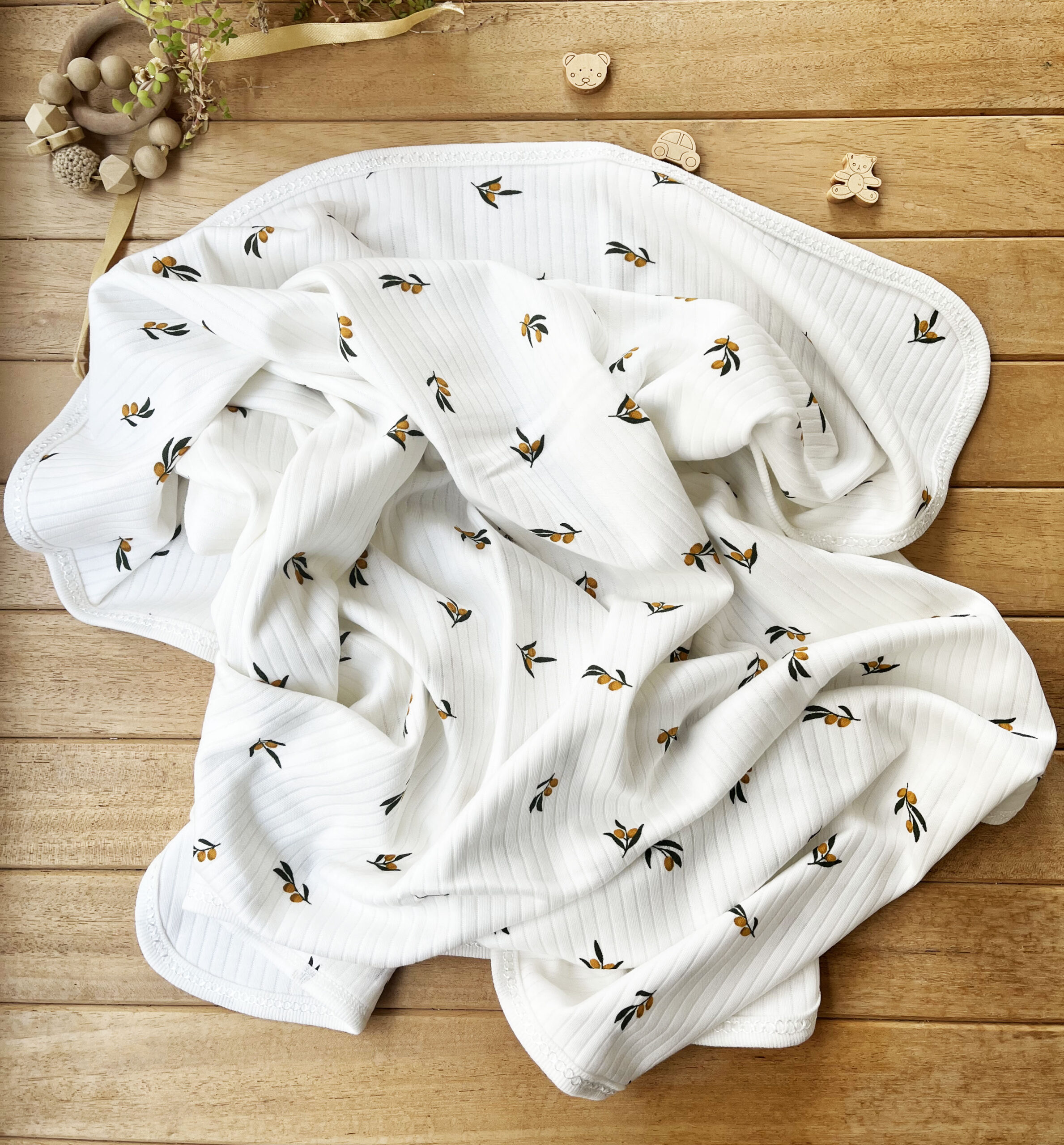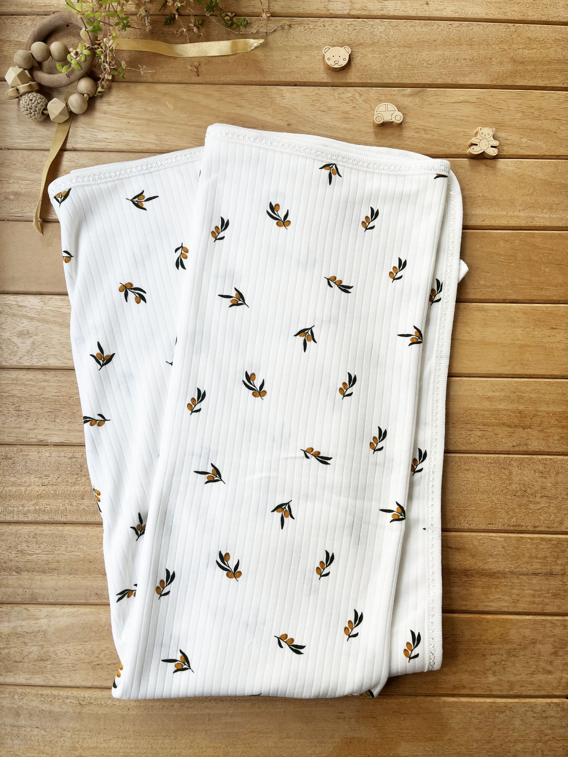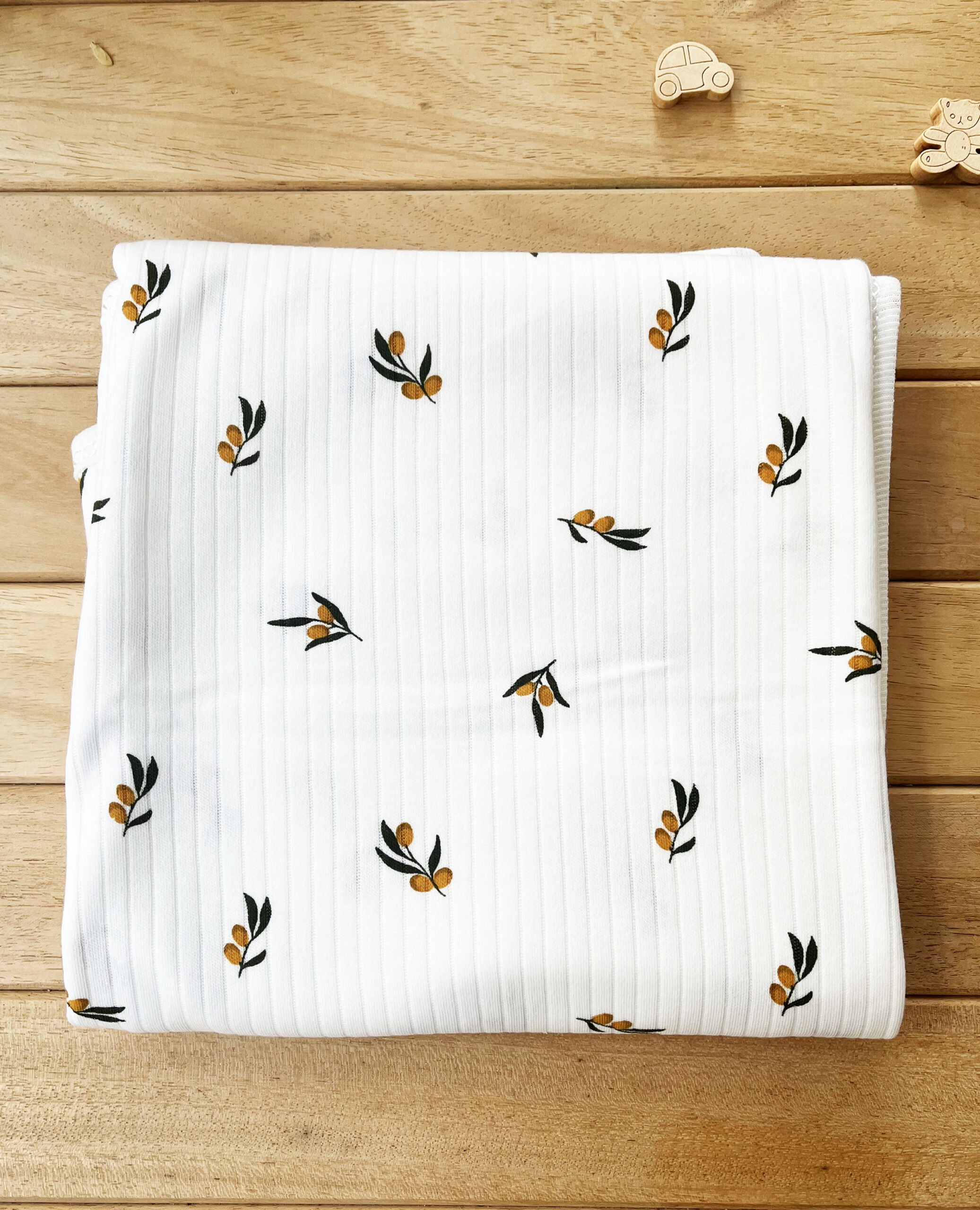 Naturel Zeytin Desenli Pamuklu 80×90 cm Çift Kat Penye Bebek Battaniye