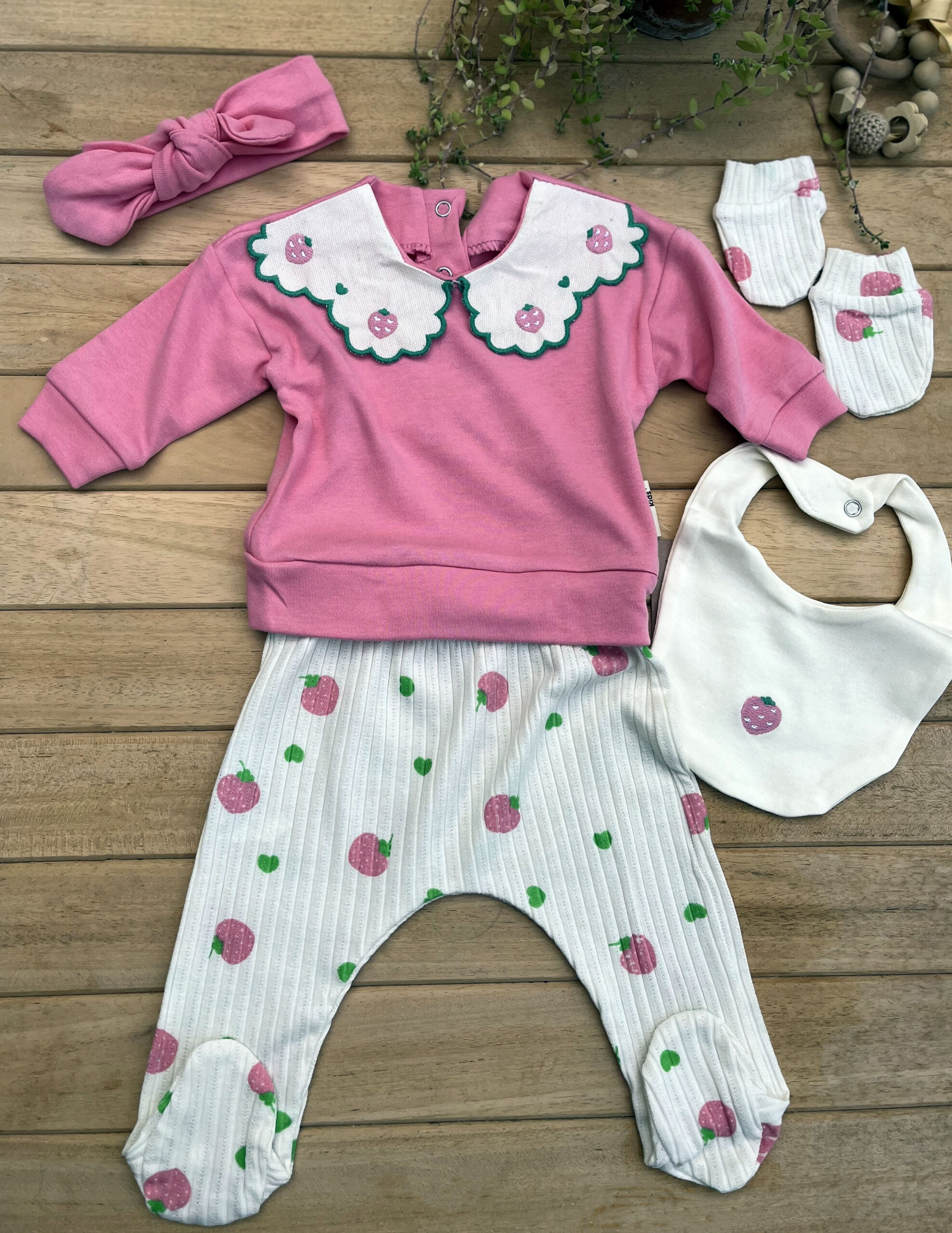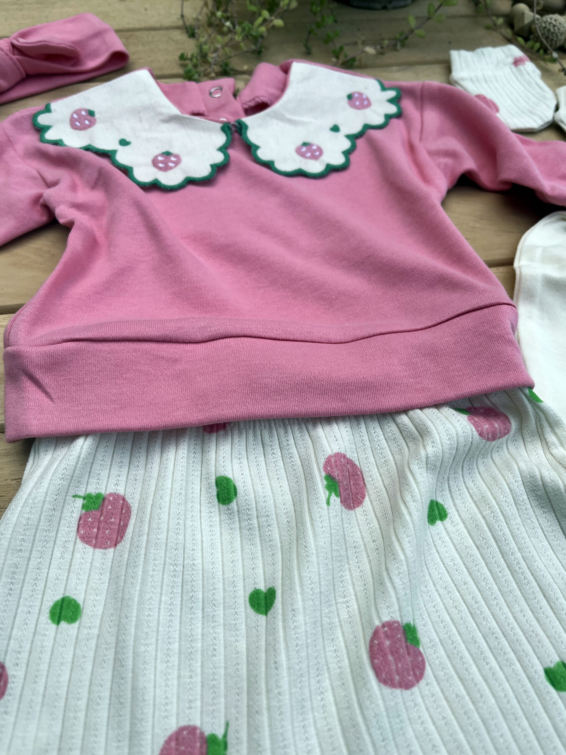 Oekotex Sertifikalı Organik %100 Pamuk Çilekli 2’li Kız Çocuk Takım