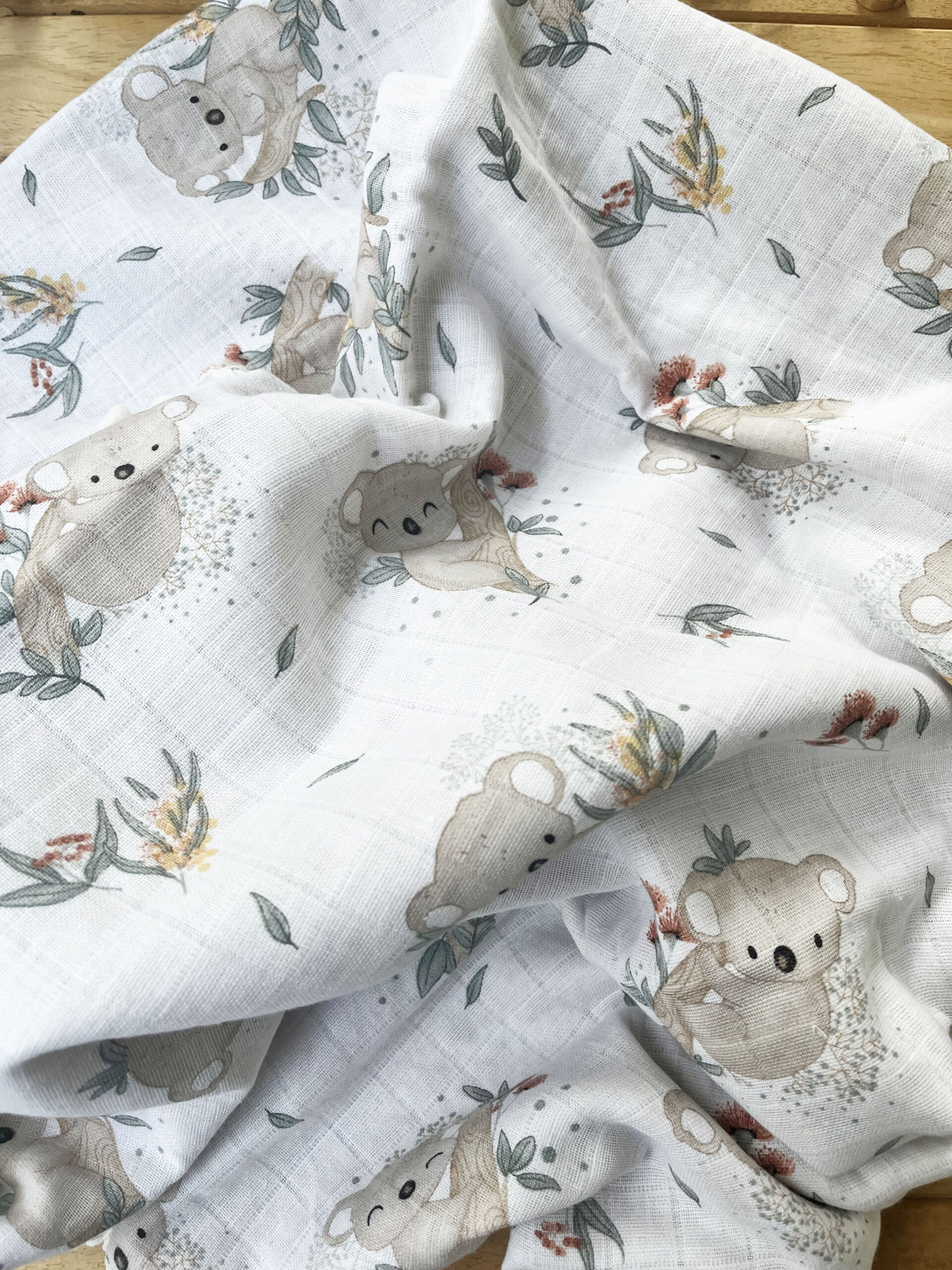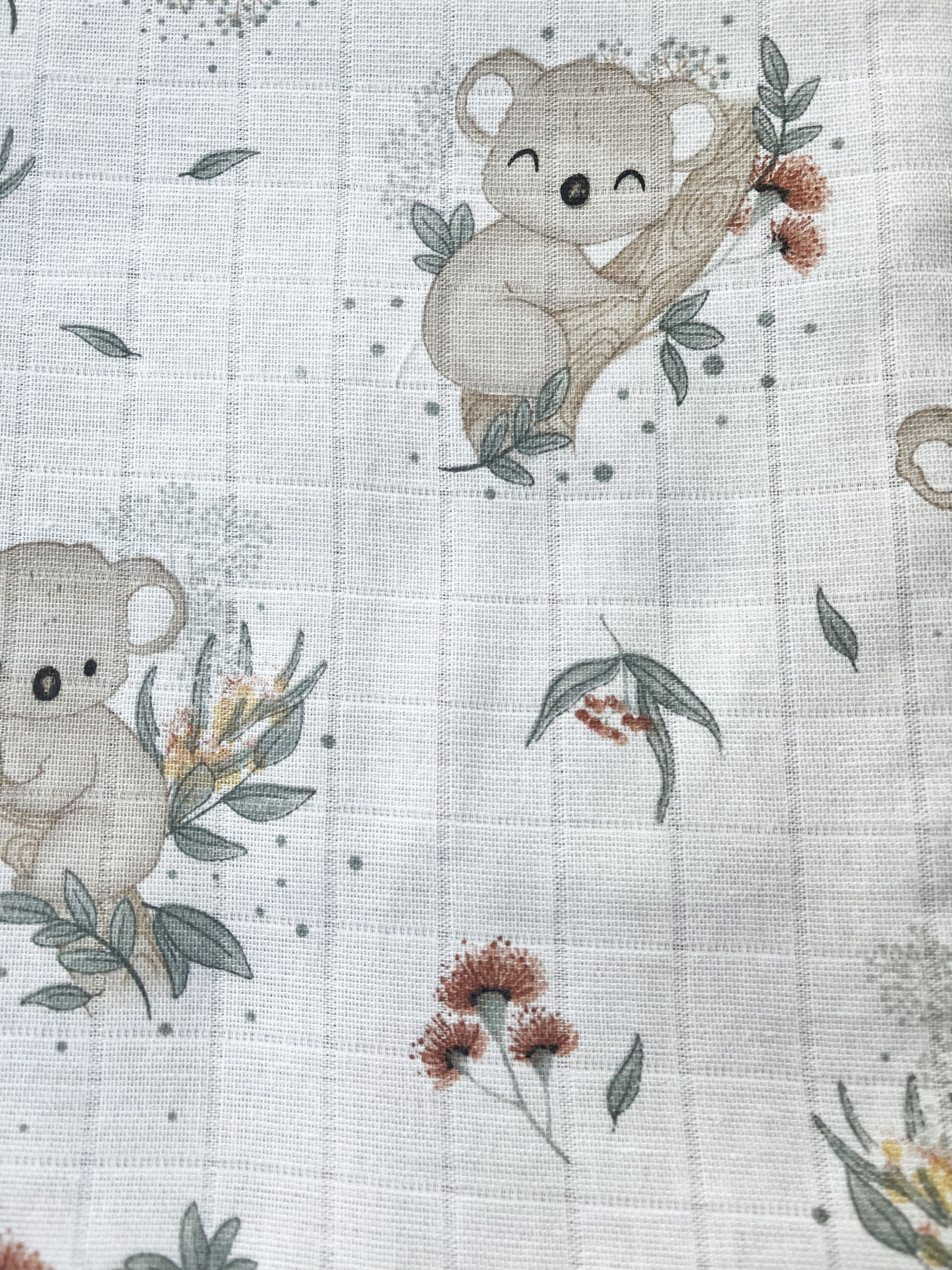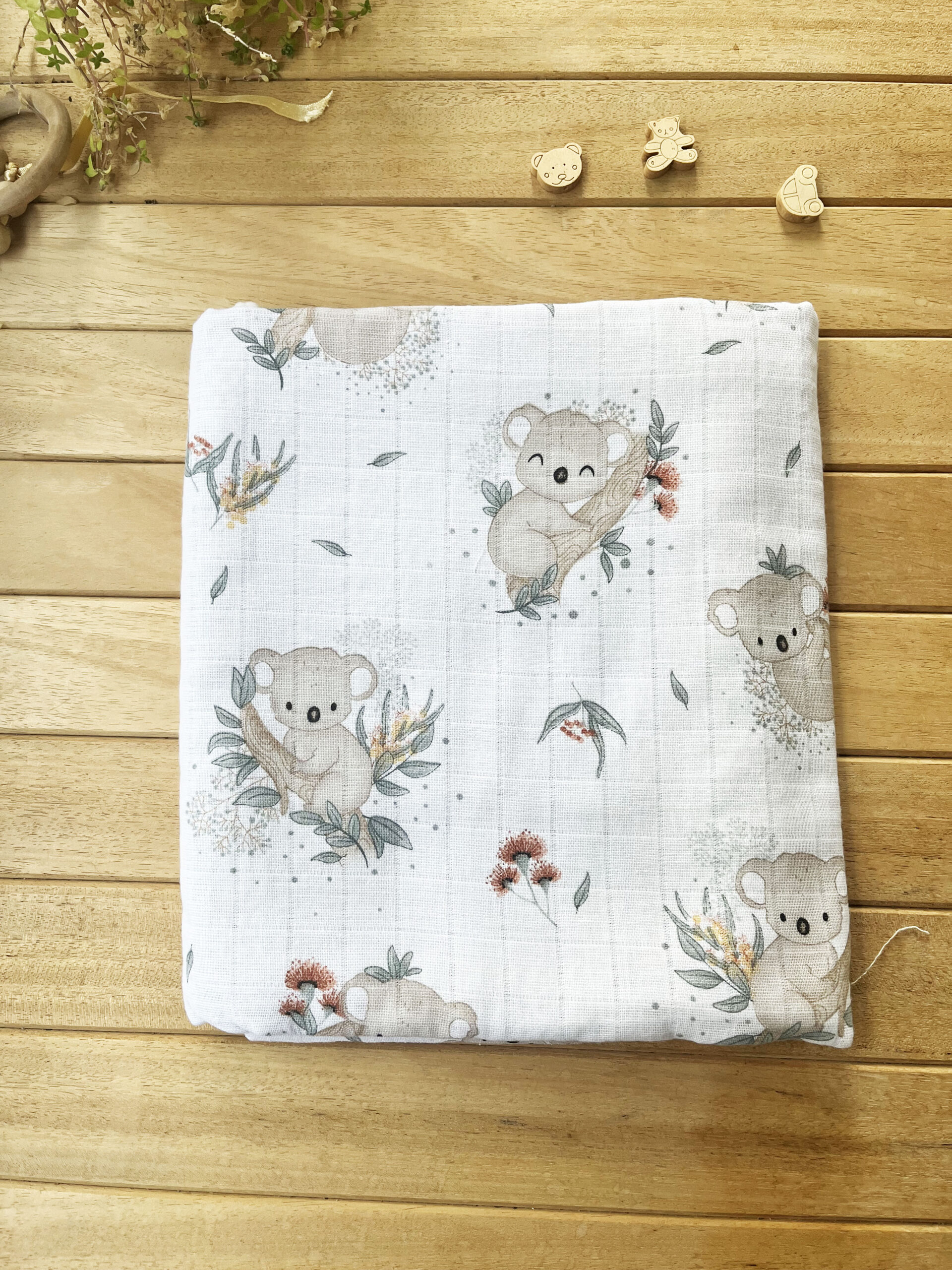 Önü nefes alan %100 pamuk müslin, arkası ekstra yumuşak vafıl kumaş ile hazırlanan bu çift katlı koala desenli battaniye, miniklere hem konforu hem de sıcaklığı aynı anda sunuyor. 🐻✨
