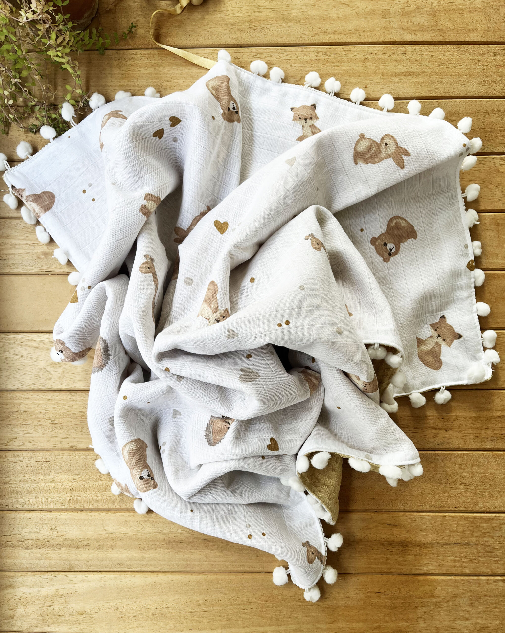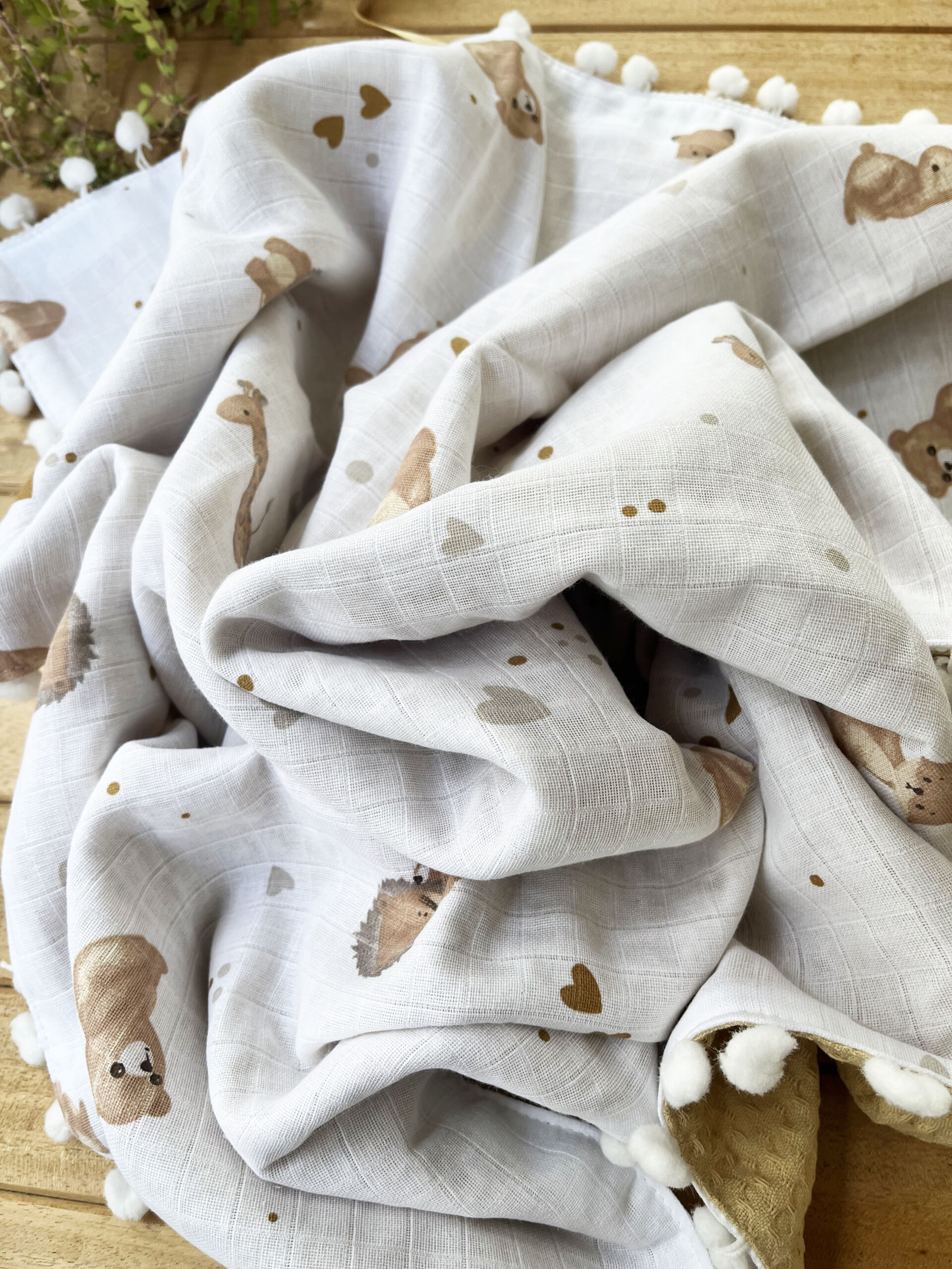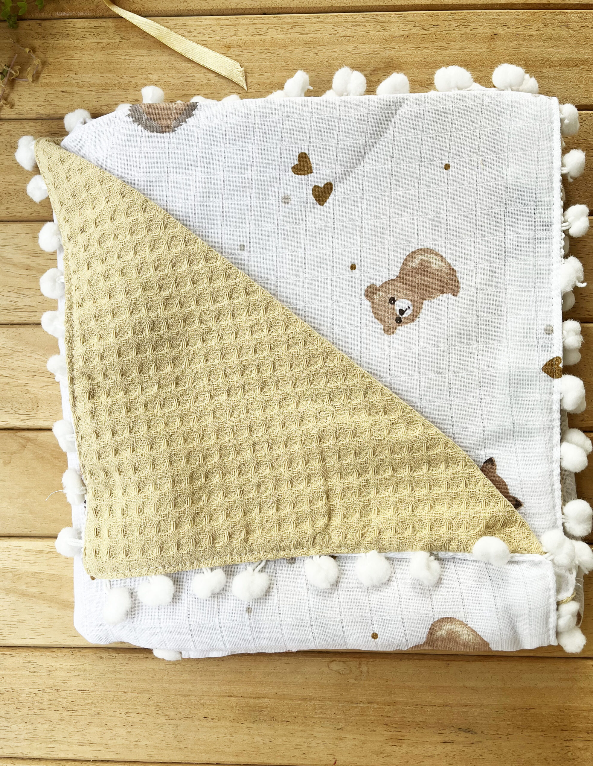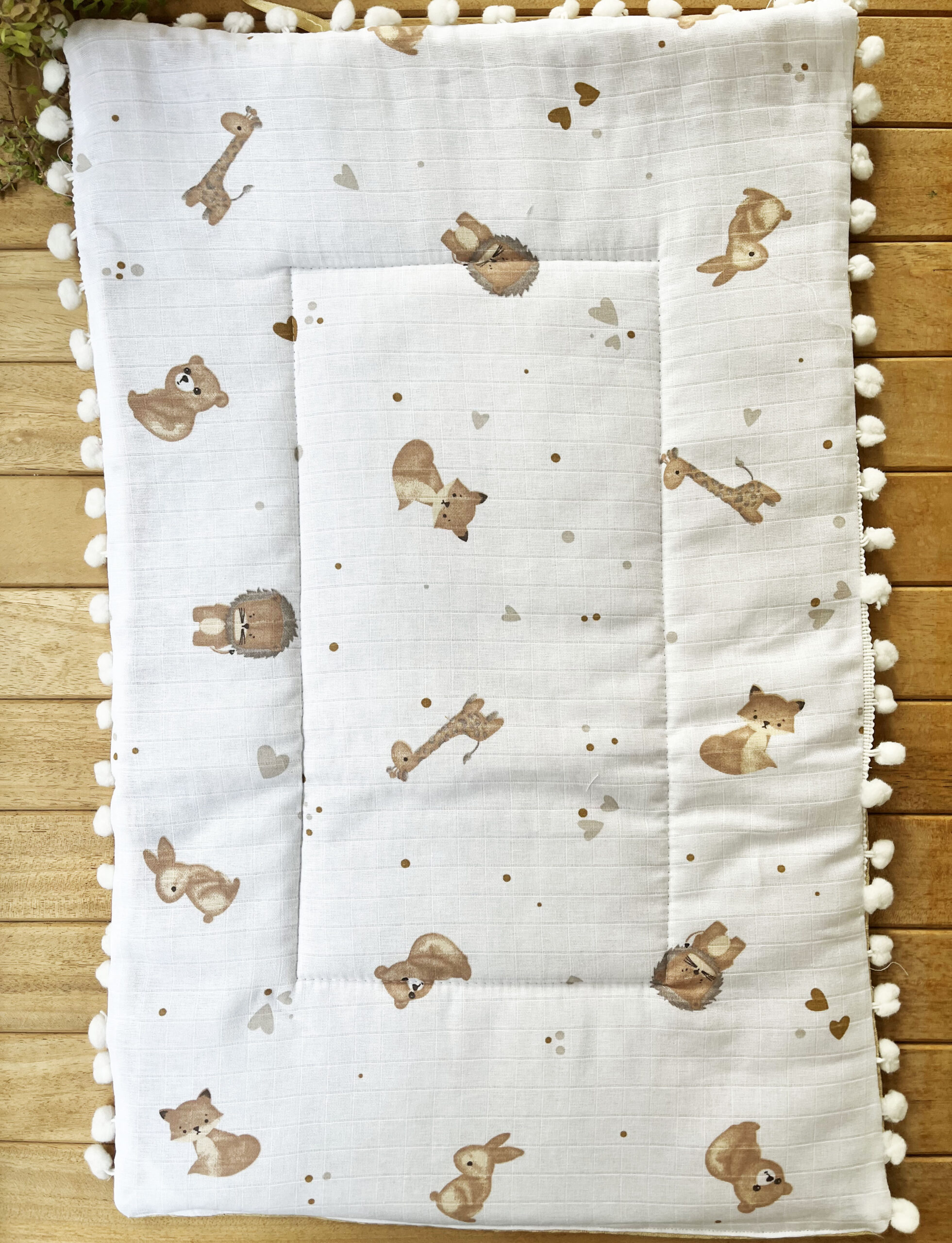 Tavşan Desenli Çift Katlı Müslin ve Waffle Kumaş Alt Açma , Yastık ve Battaniye 3’lü Set 40 x 70 Tek Ebat