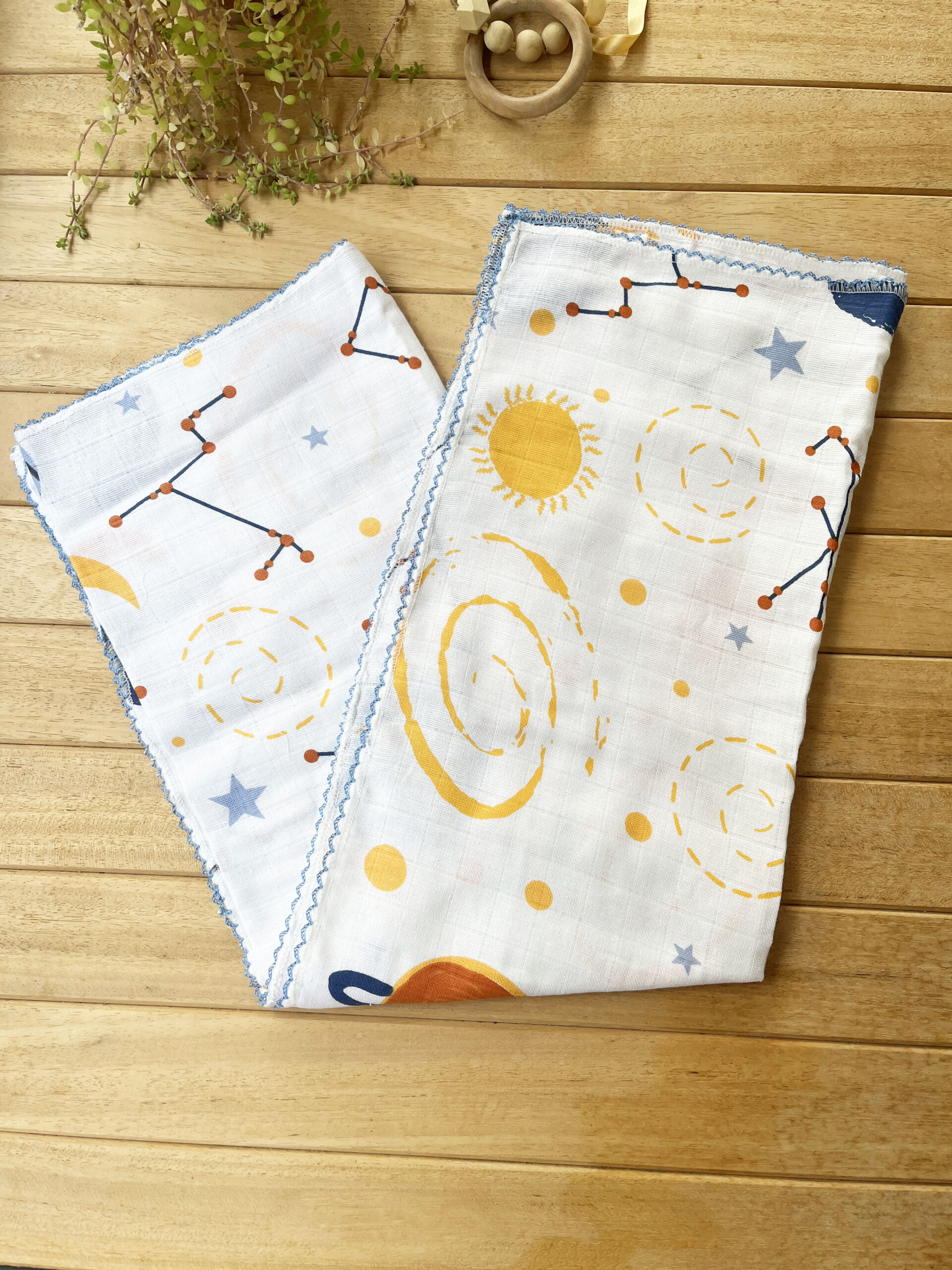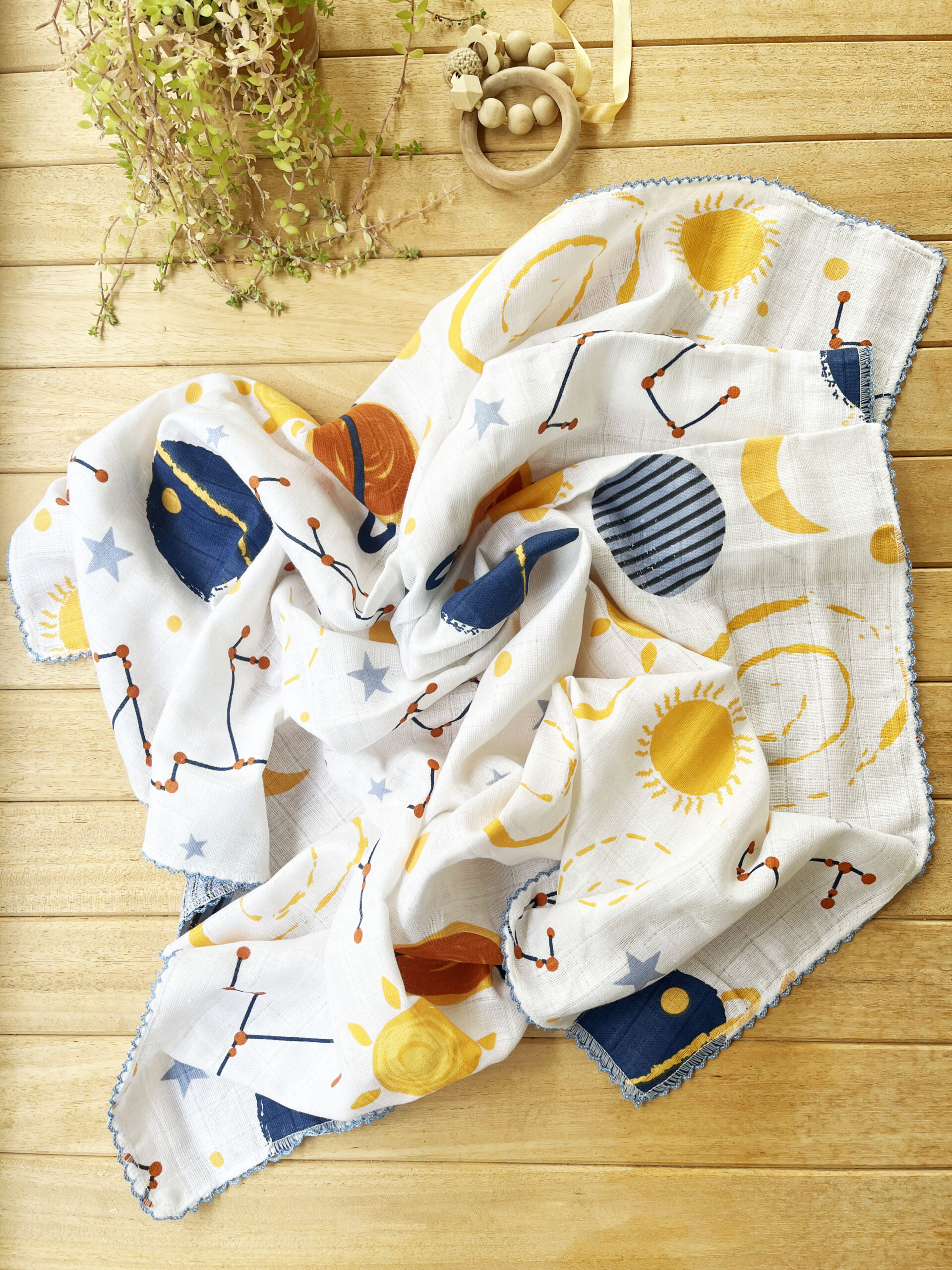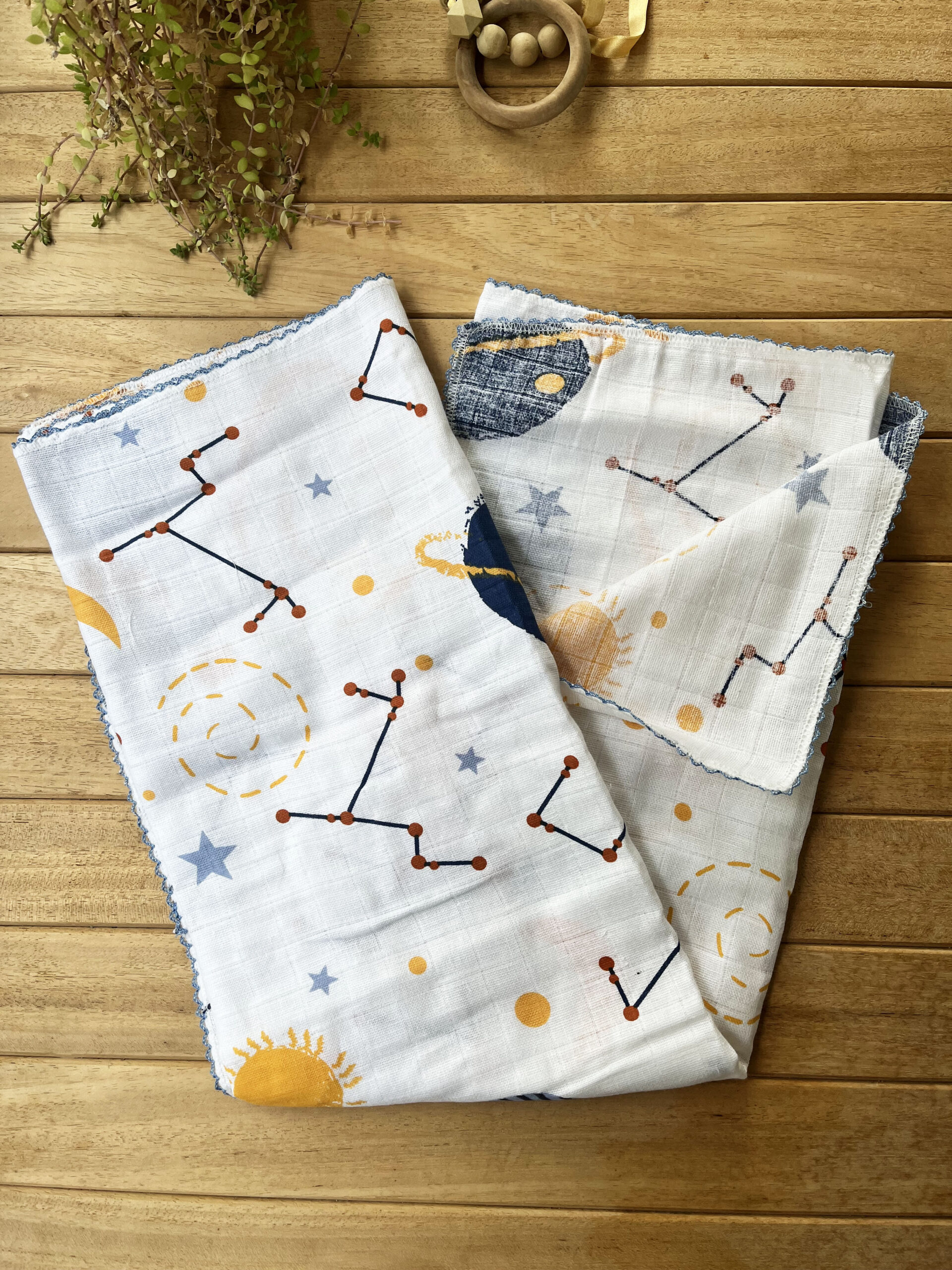 Tek Kat Gezegen Desenli %100 Pamuk Müslin Battaniye ve Örtü 80X80 CM