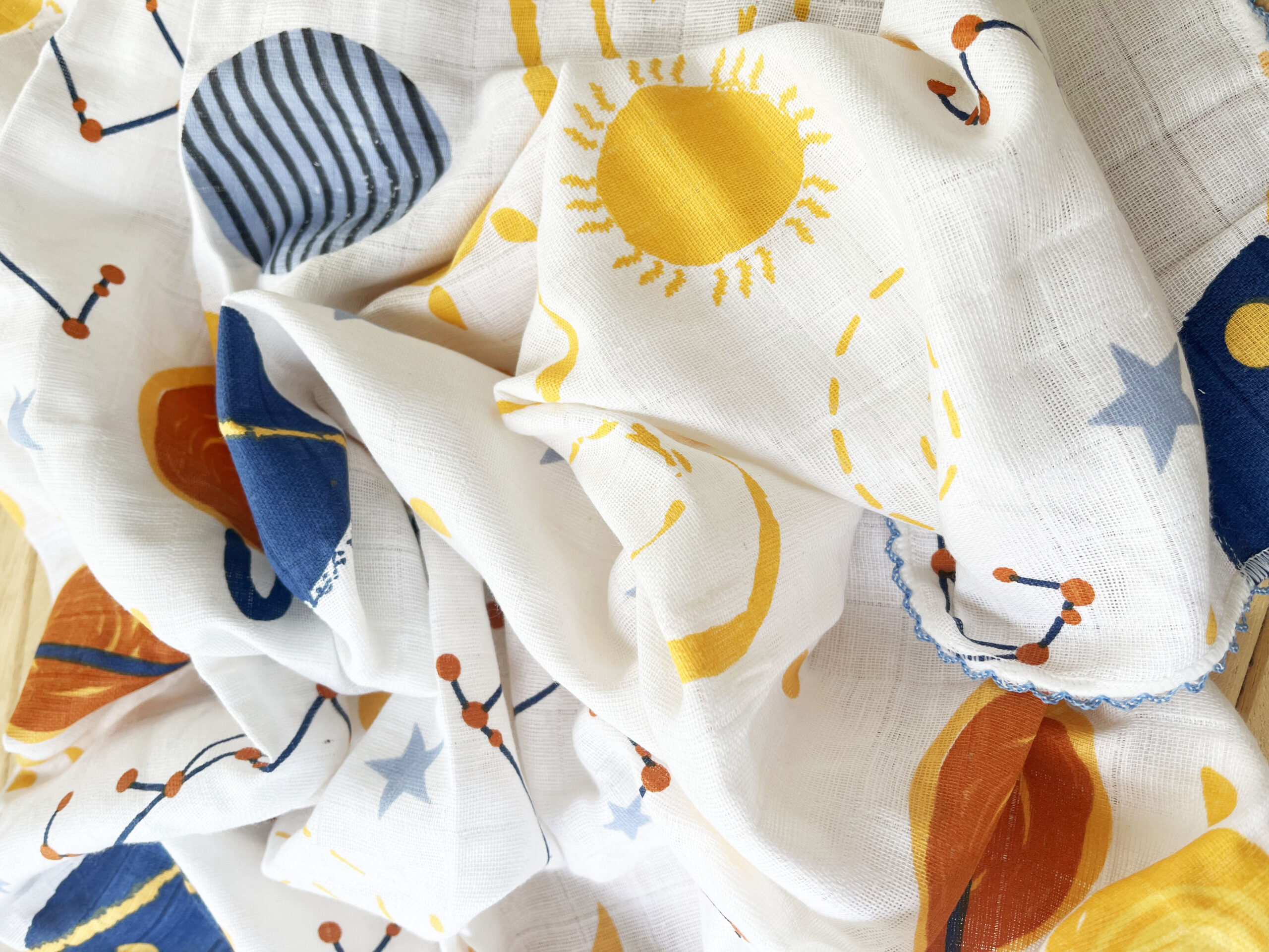 Tek Kat Gezegen Desenli %100 Pamuk Müslin Battaniye ve Örtü 85X80 CM