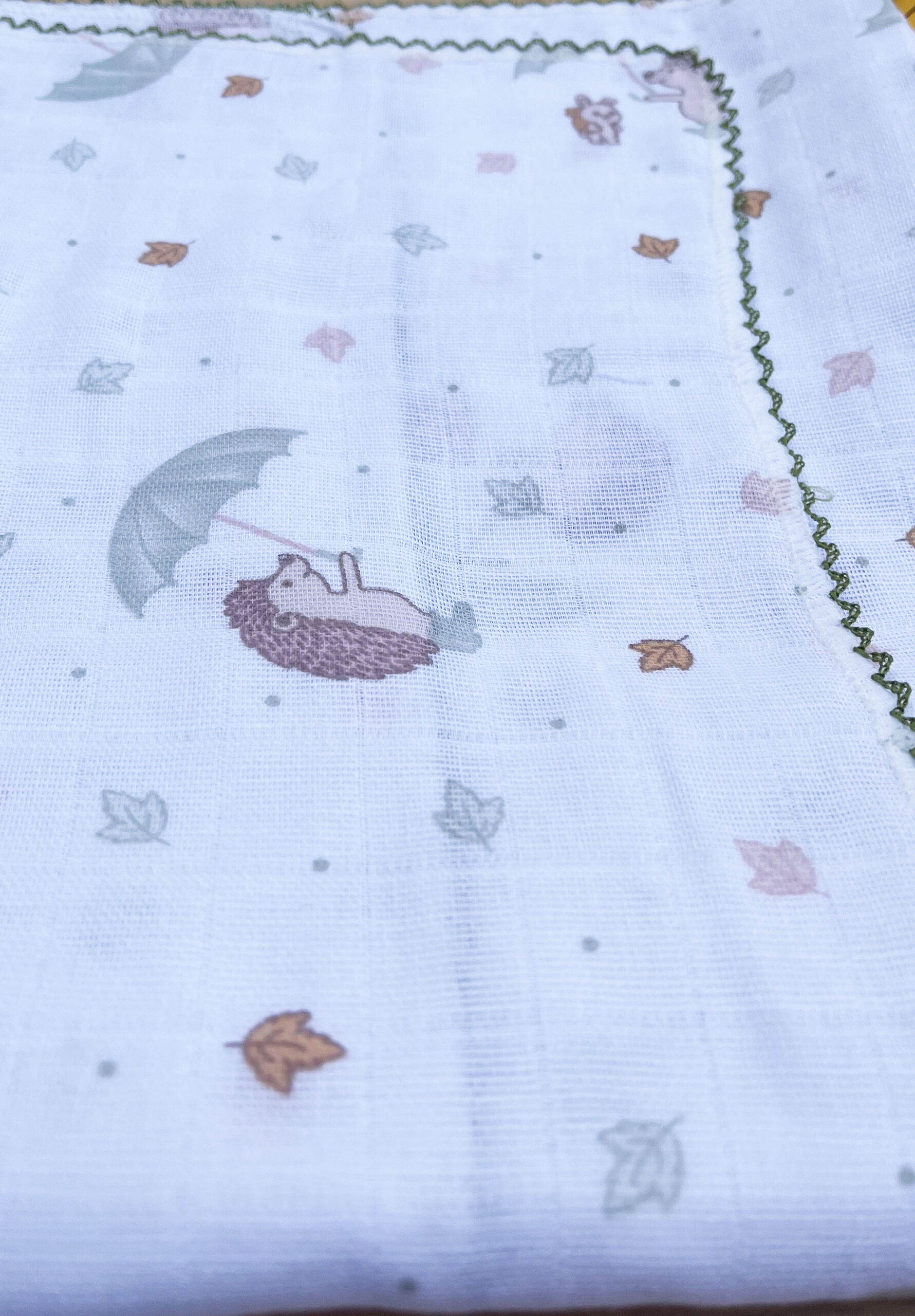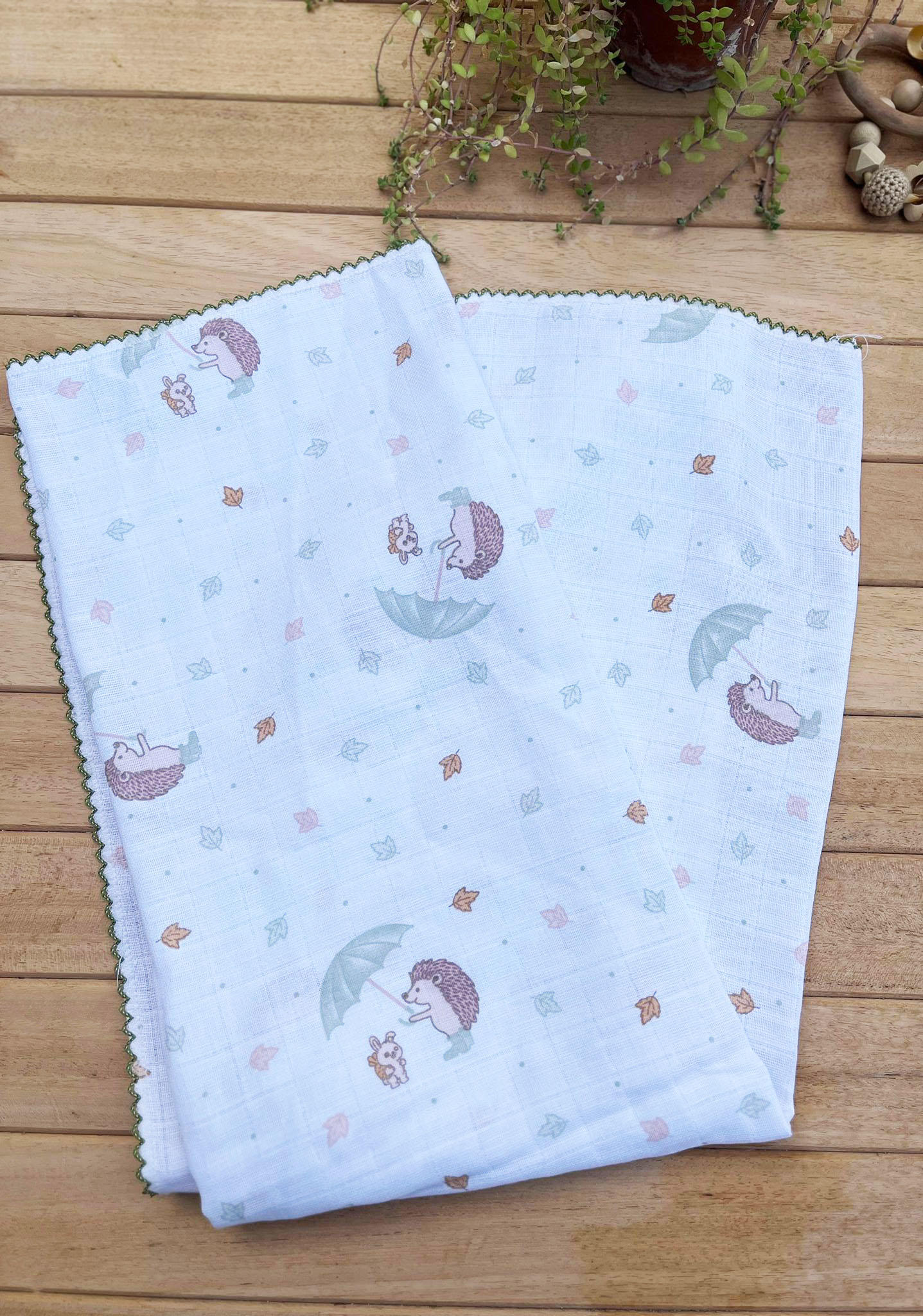 Tek Kat Kirpi Desenli %100 Pamuk Müslin Battaniye ve Örtü 85X80 CM