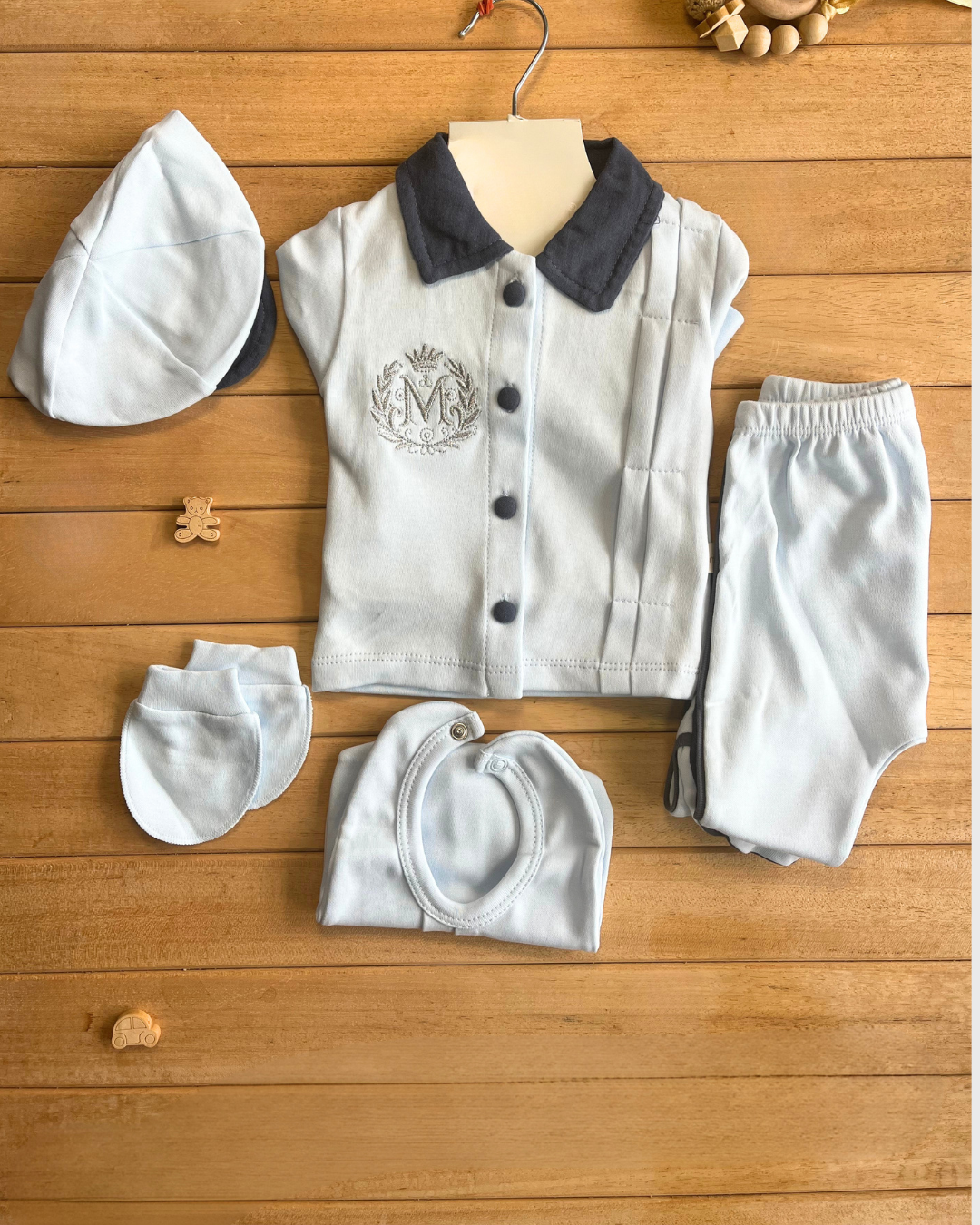 Thomas Erkek Bebek 5’li Hastane Çıkışı Seti – %100 Pamuk Yenidoğan Bebek Seti
