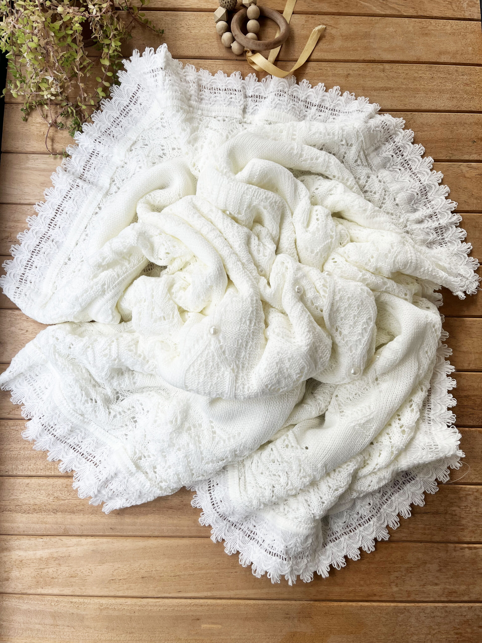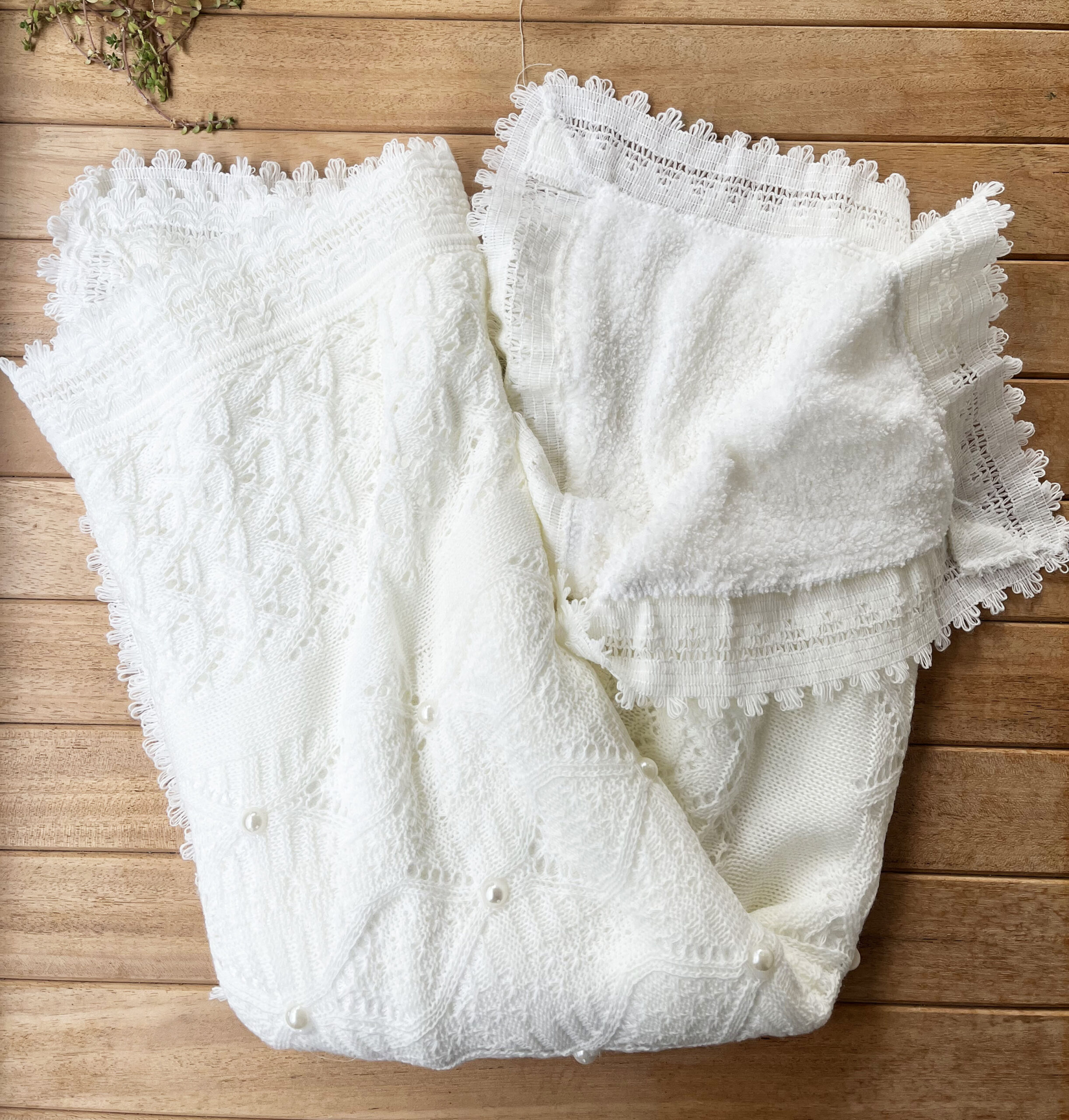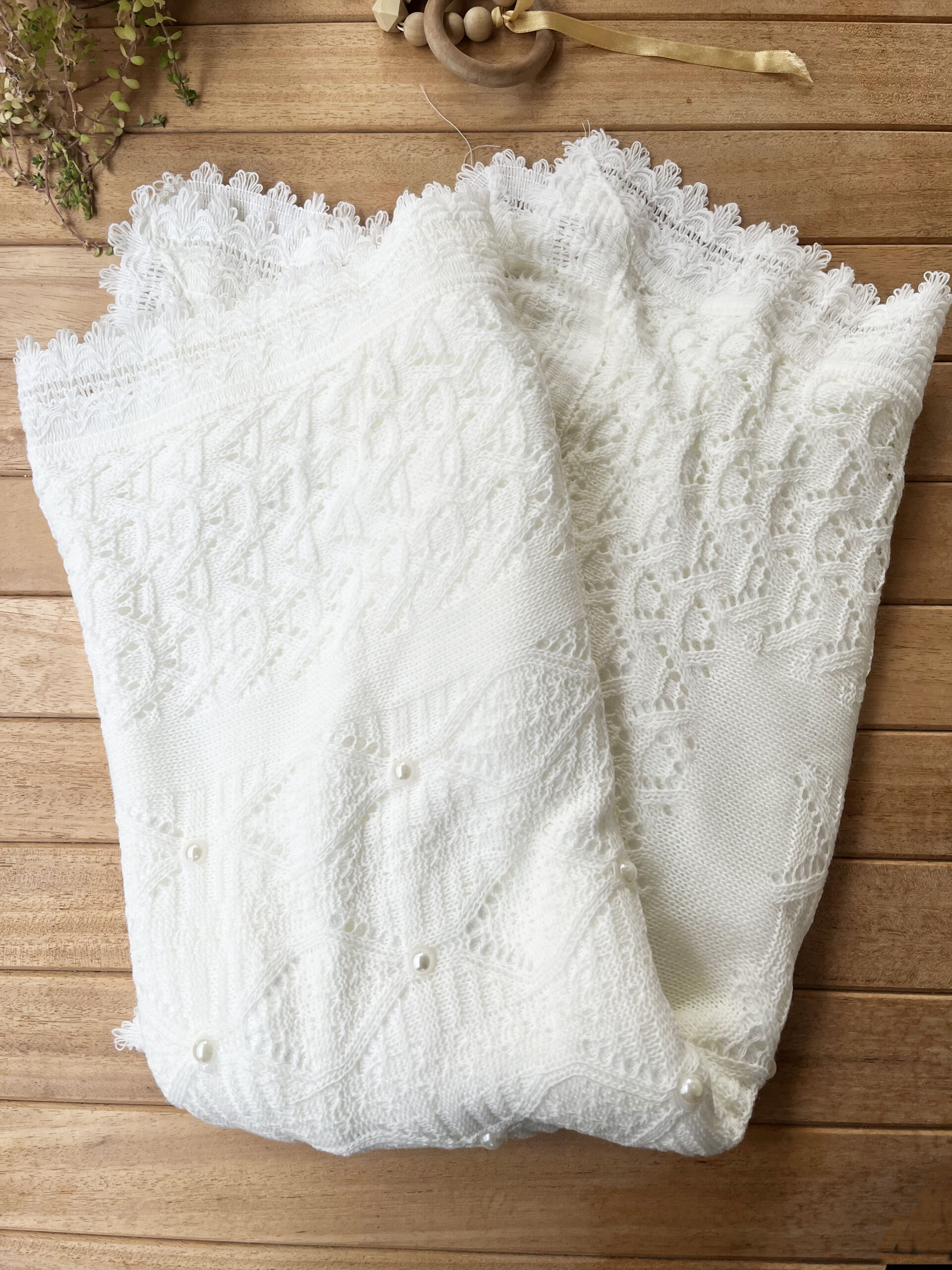 Triko Örgülü Wellsoft Döşemeli İncili 100 x 100 cm Bebek battaniyesi