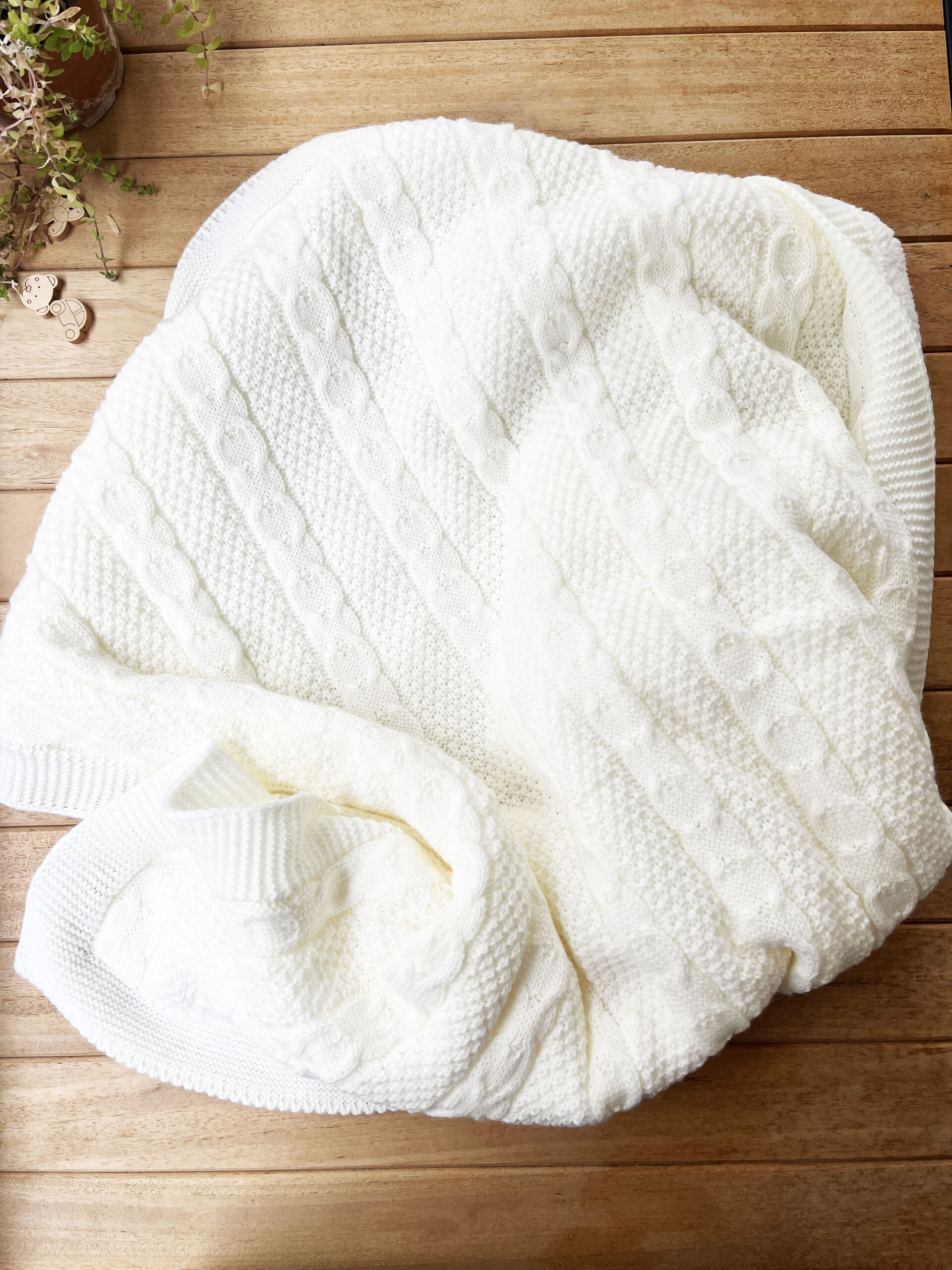 Triko Zincir Saç Örgülü Wellsoft Döşemeli 80 x 100cm cm Bebek battaniyesi